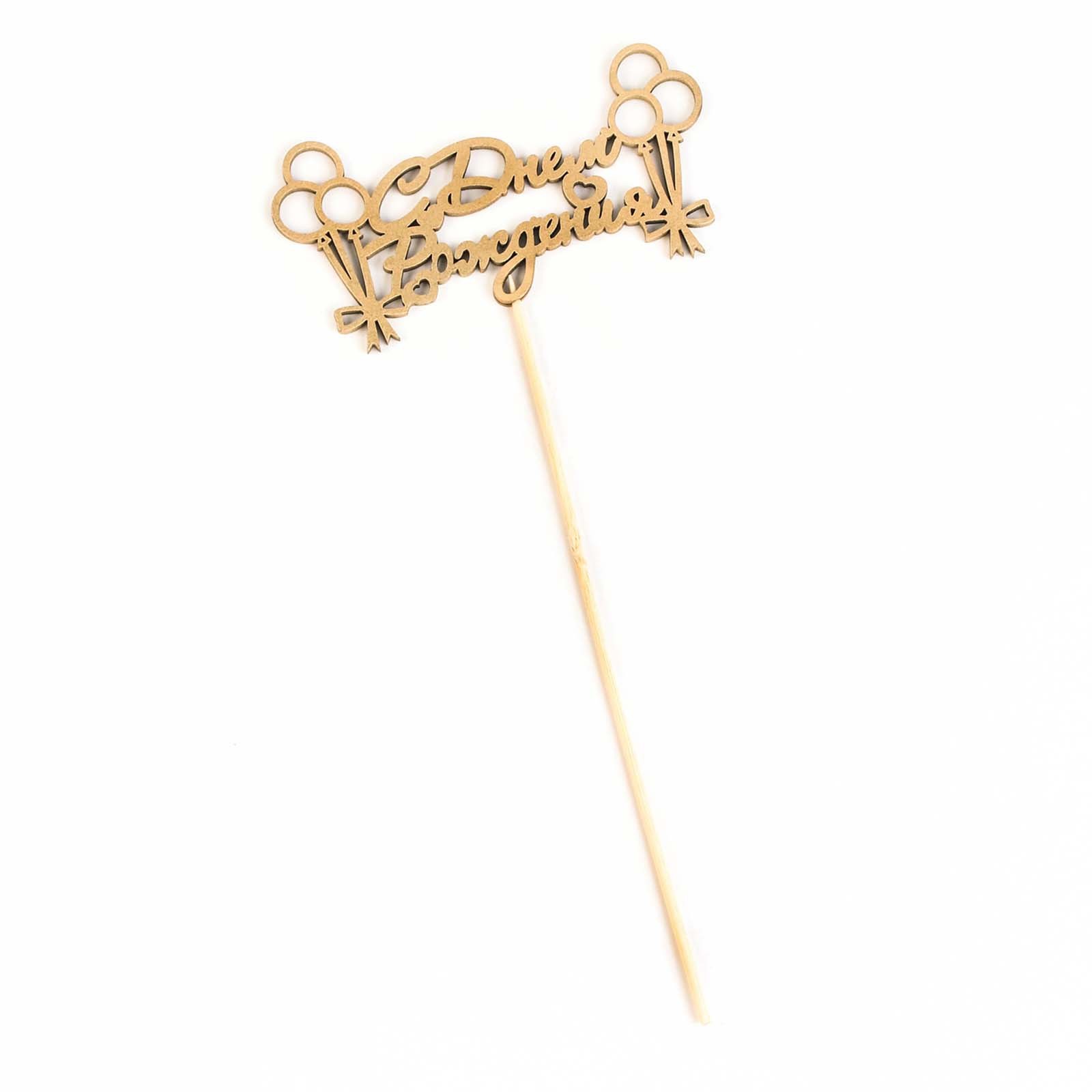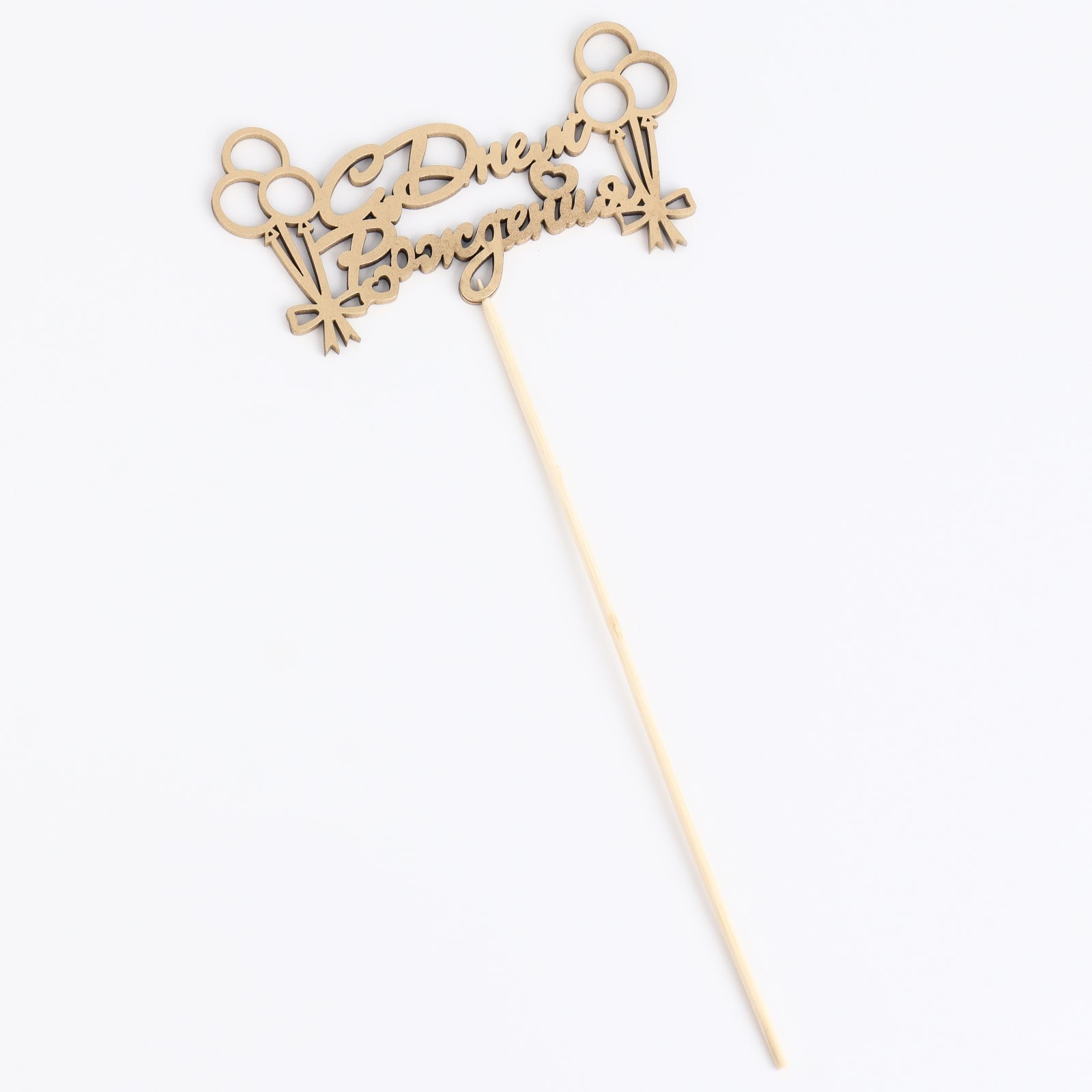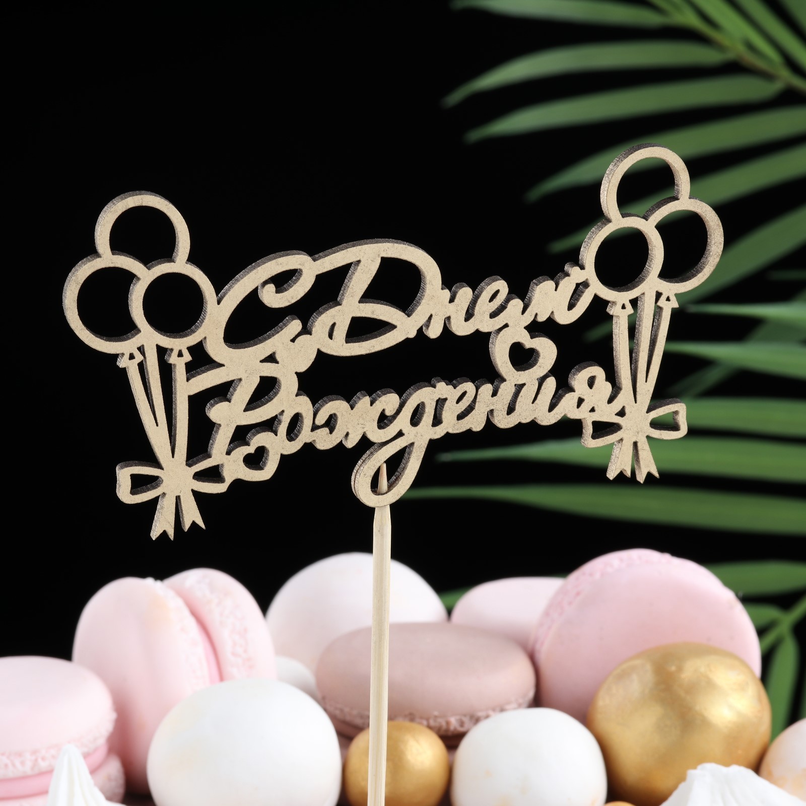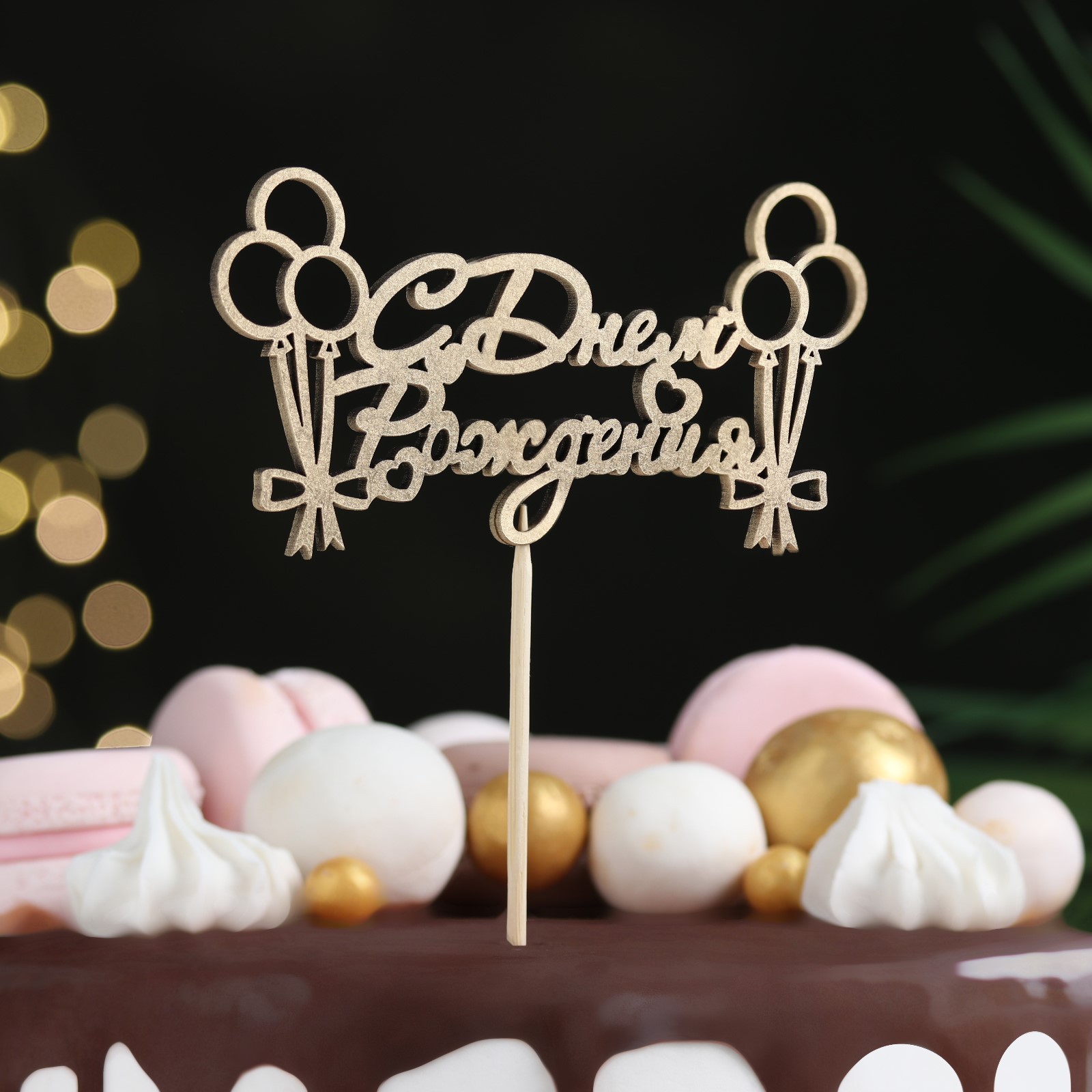 Топпер "с днём рождения, с шариками и бантиками" на подвесе, золотой дарим красиво