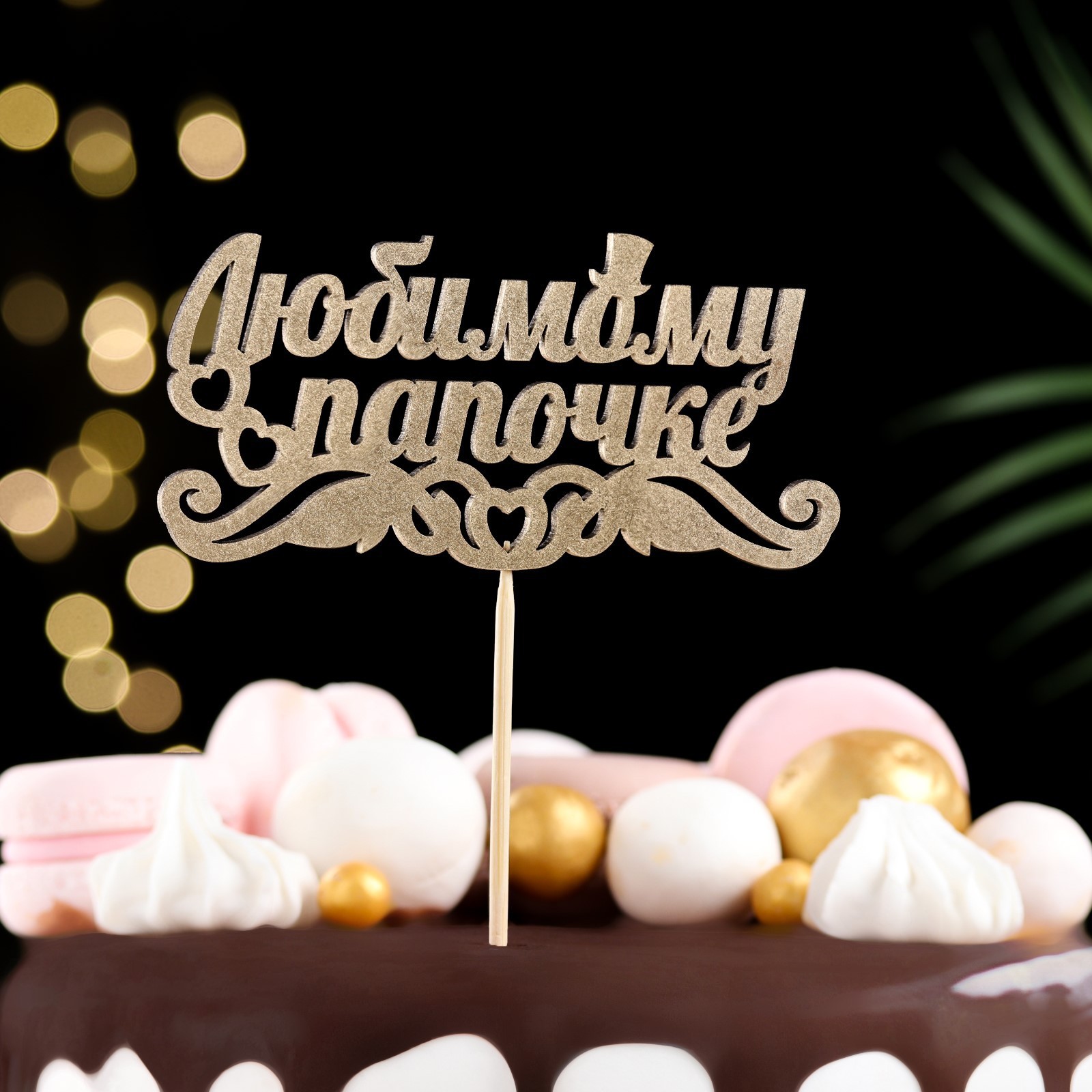 Топпер "любимому папочке" на подвесе, золотой дарим красиво