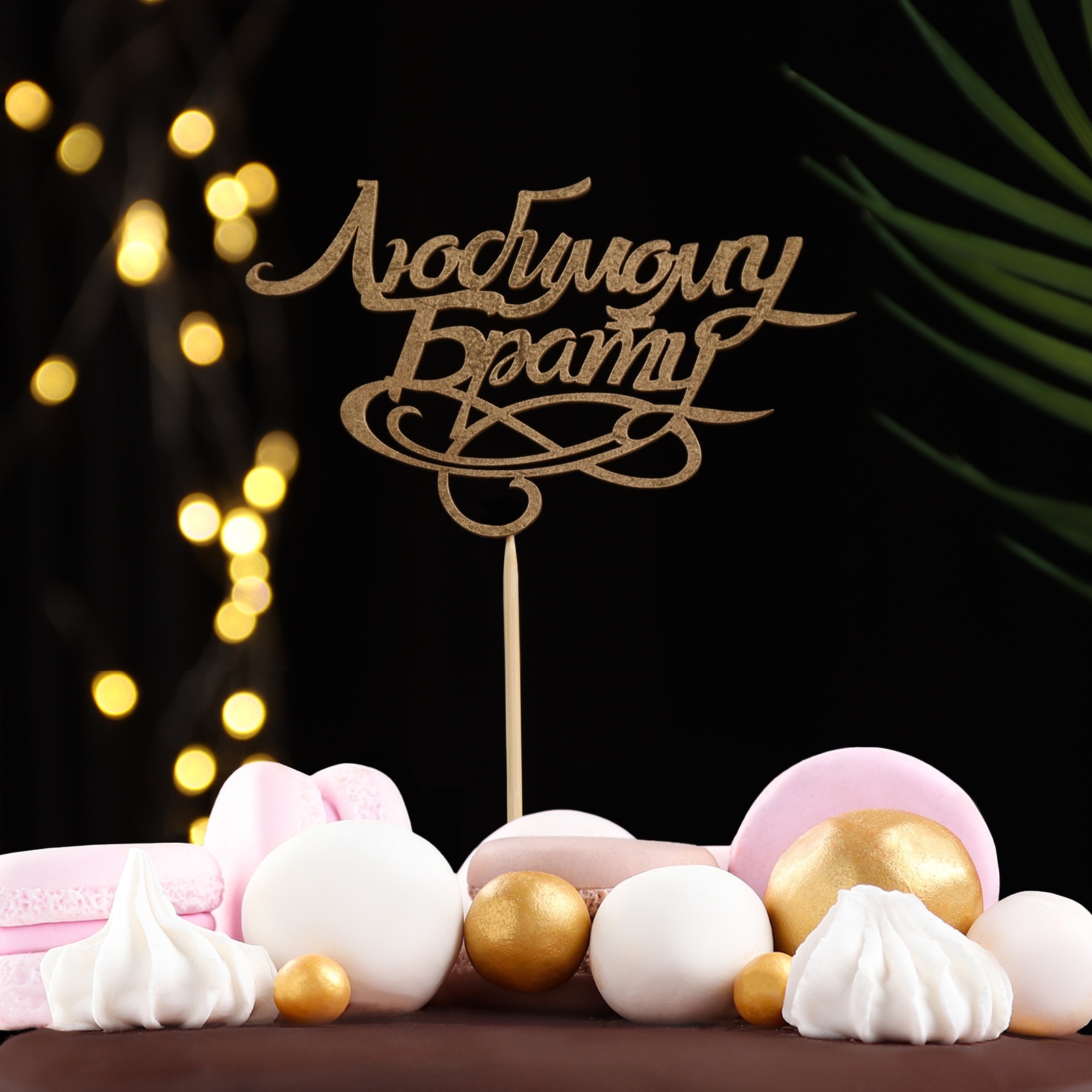 Топпер "любимому брату" на подвесе, золотой дарим красиво