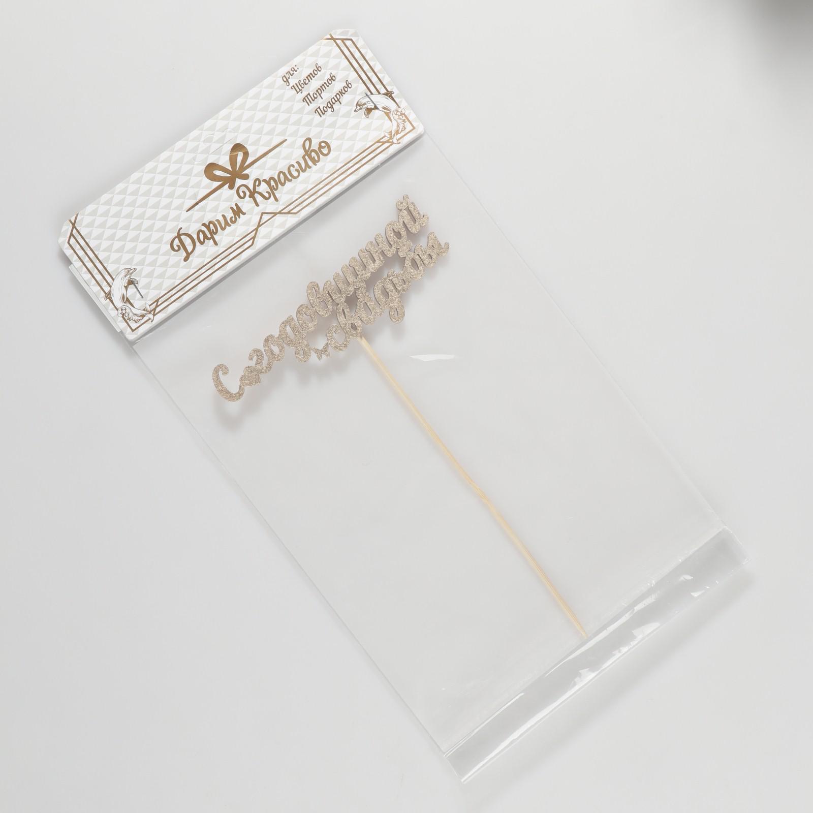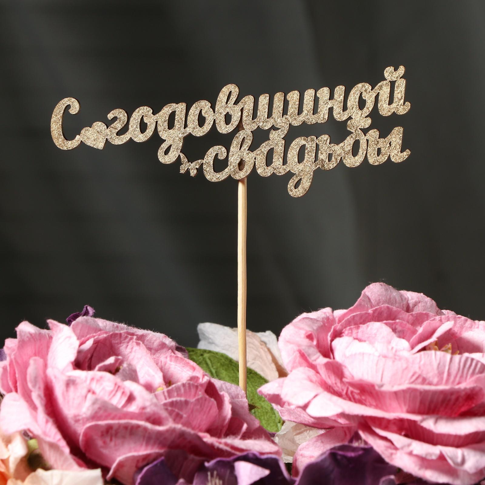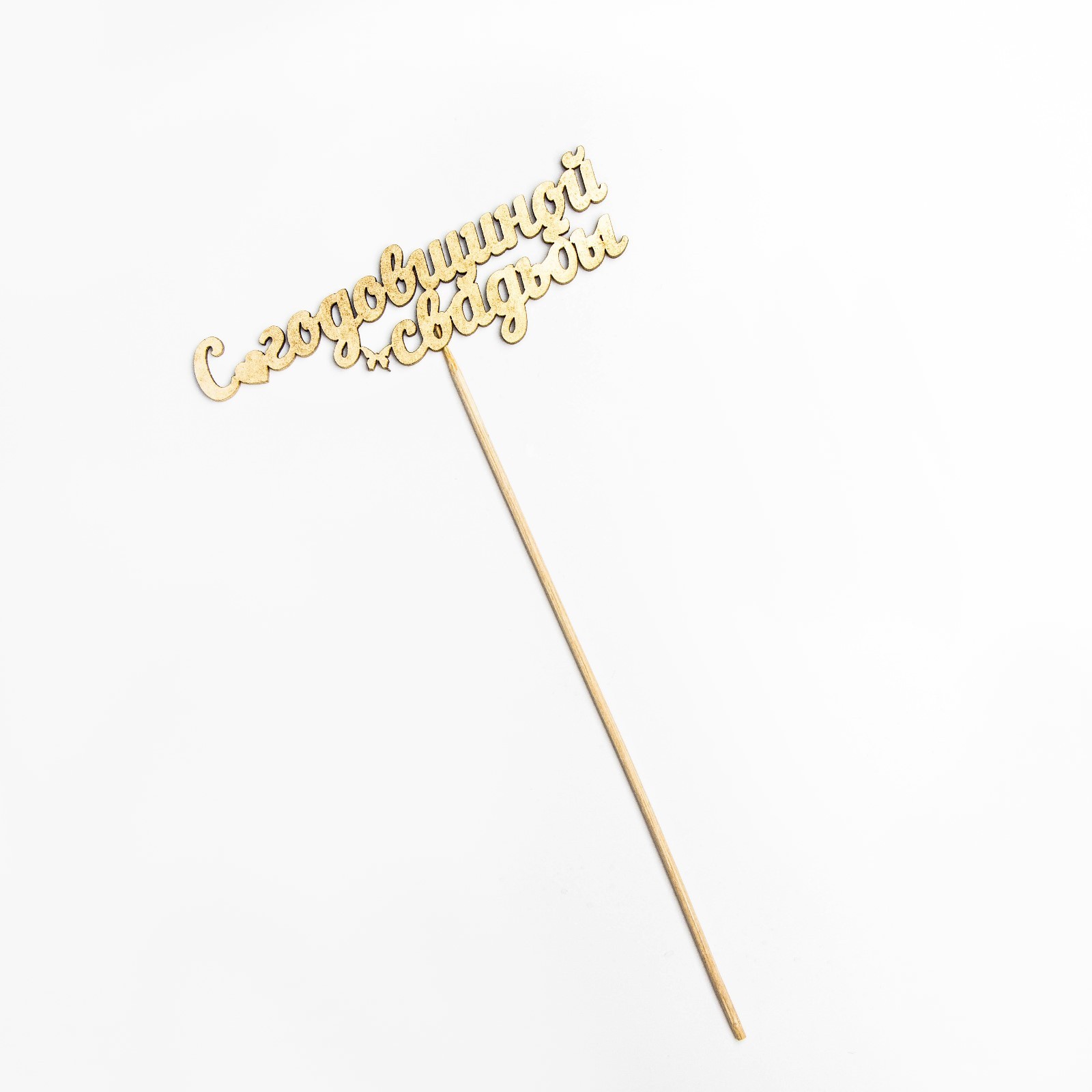 Топпер "с годовщиной свадьбы" на подвесе, золотой дарим красиво