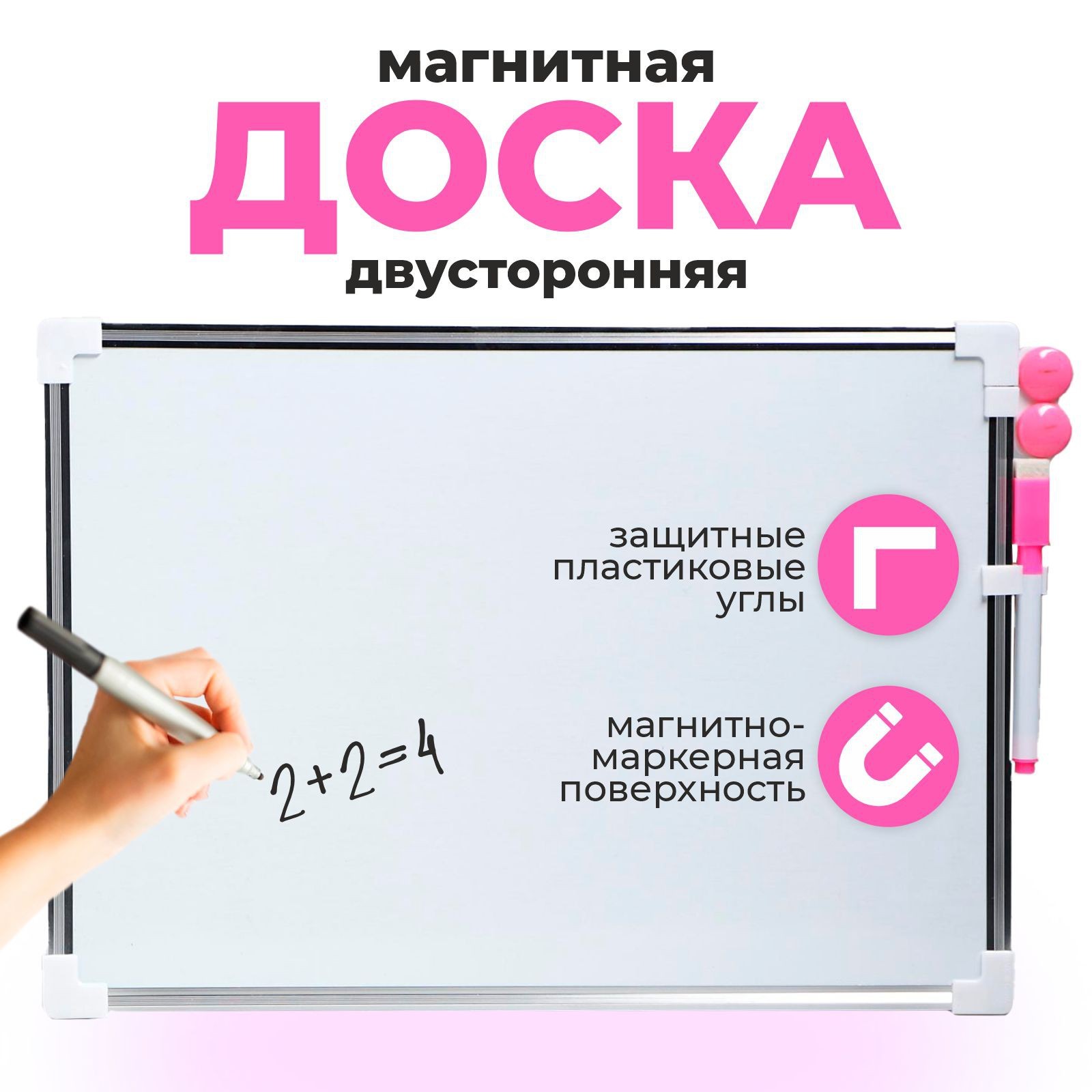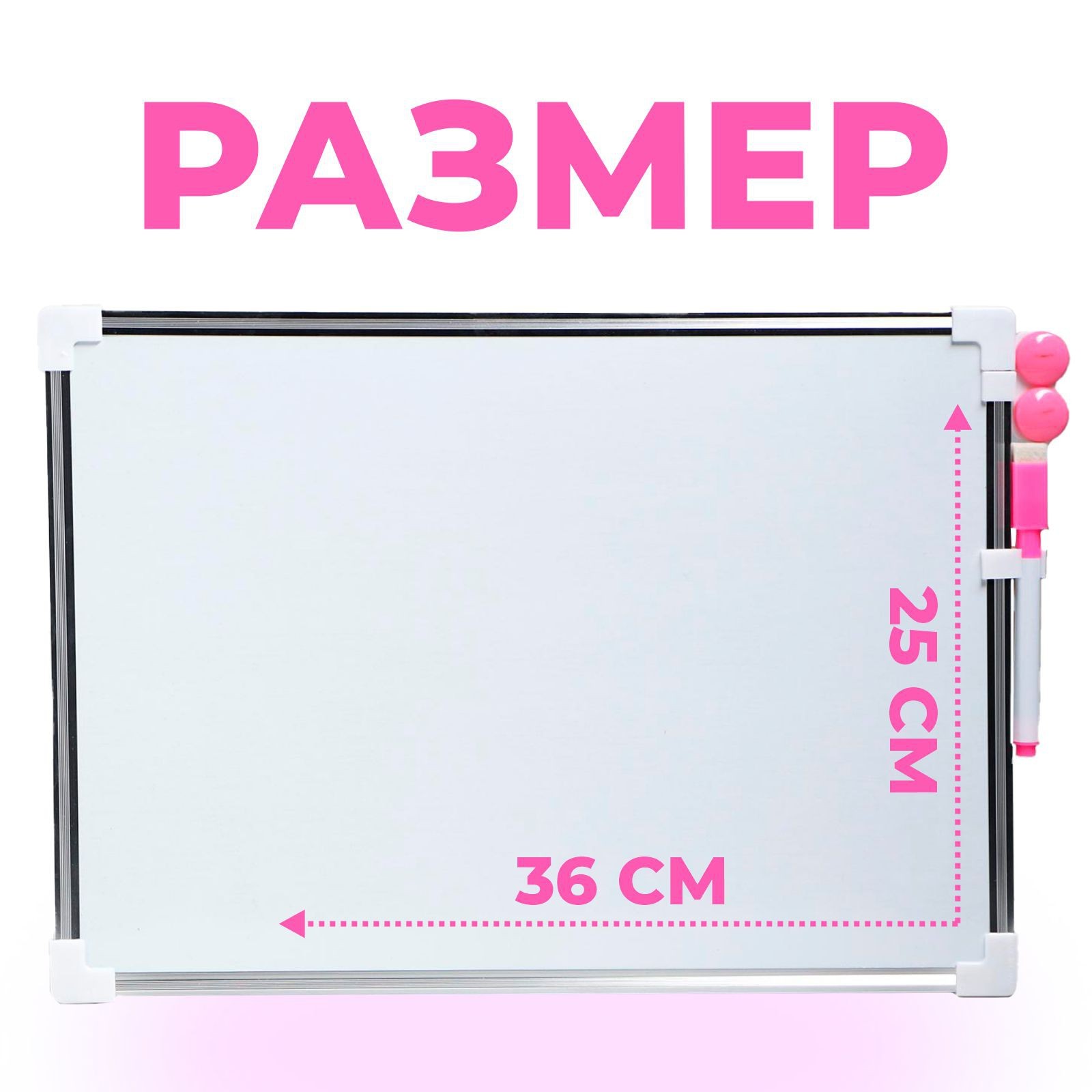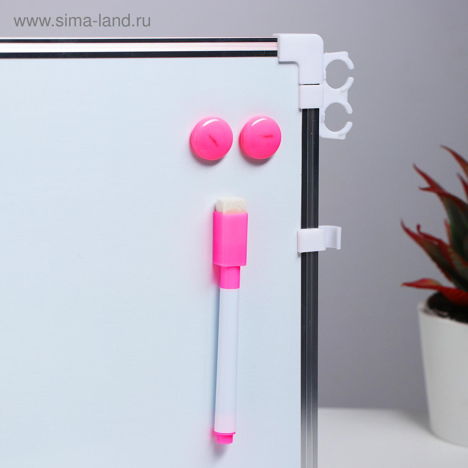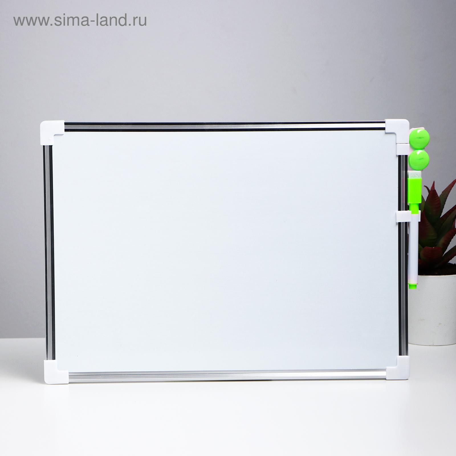 Доска магнитная двусторонняя, 36 25 см, маркер и магниты в наборе, без креплений, микс. Магнитная доска — это незаменимый атрибут для проведения собраний, презентаций и обучений. На гладкой поверхности удобно писать маркером и легко вносить поправки в материал. Можно крепить печатные иллюстрации с помощью магнитов. В комплекте есть: маркер, магниты. Цвет:Белый|Ширина, см:36|Высота, см:25|Поворотная:Нет|Вид доски:Магнитно-маркерная|Особенности:Без особенностей|Вид установки:Подвесной|В комплекте:Магнит|В комплекте:Маркер|Линовка доски:Без линовки|Страна:Китай  развернуть описание ▼