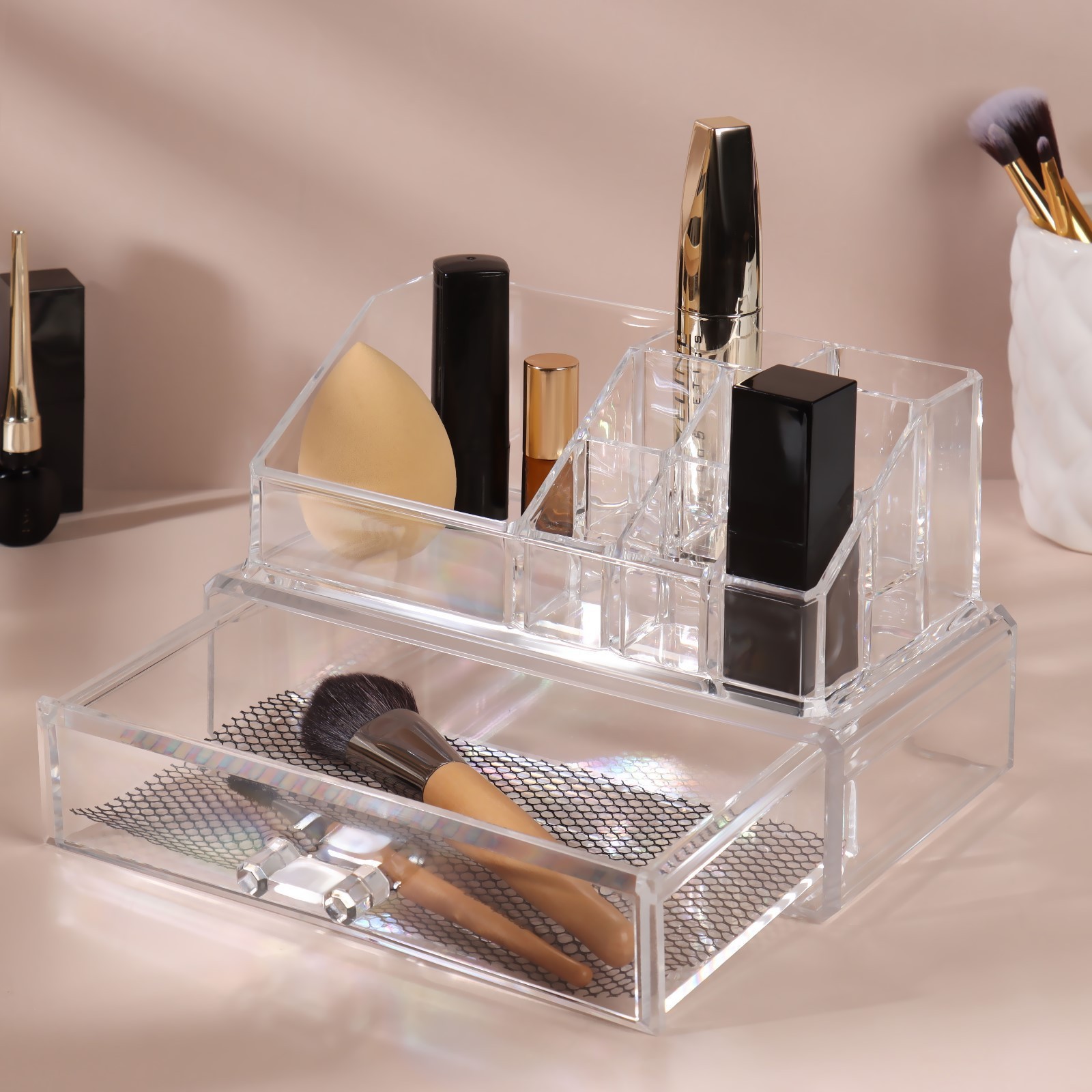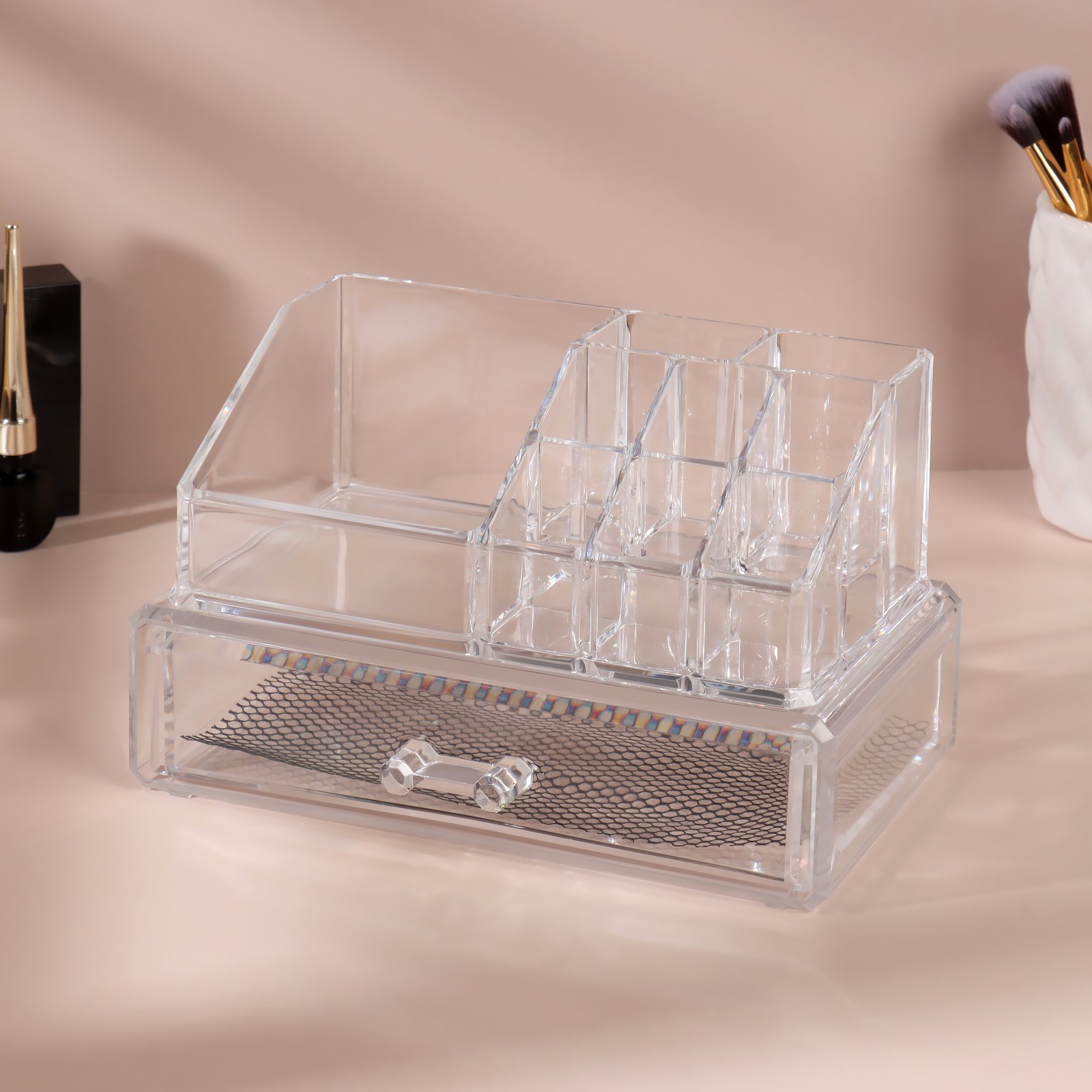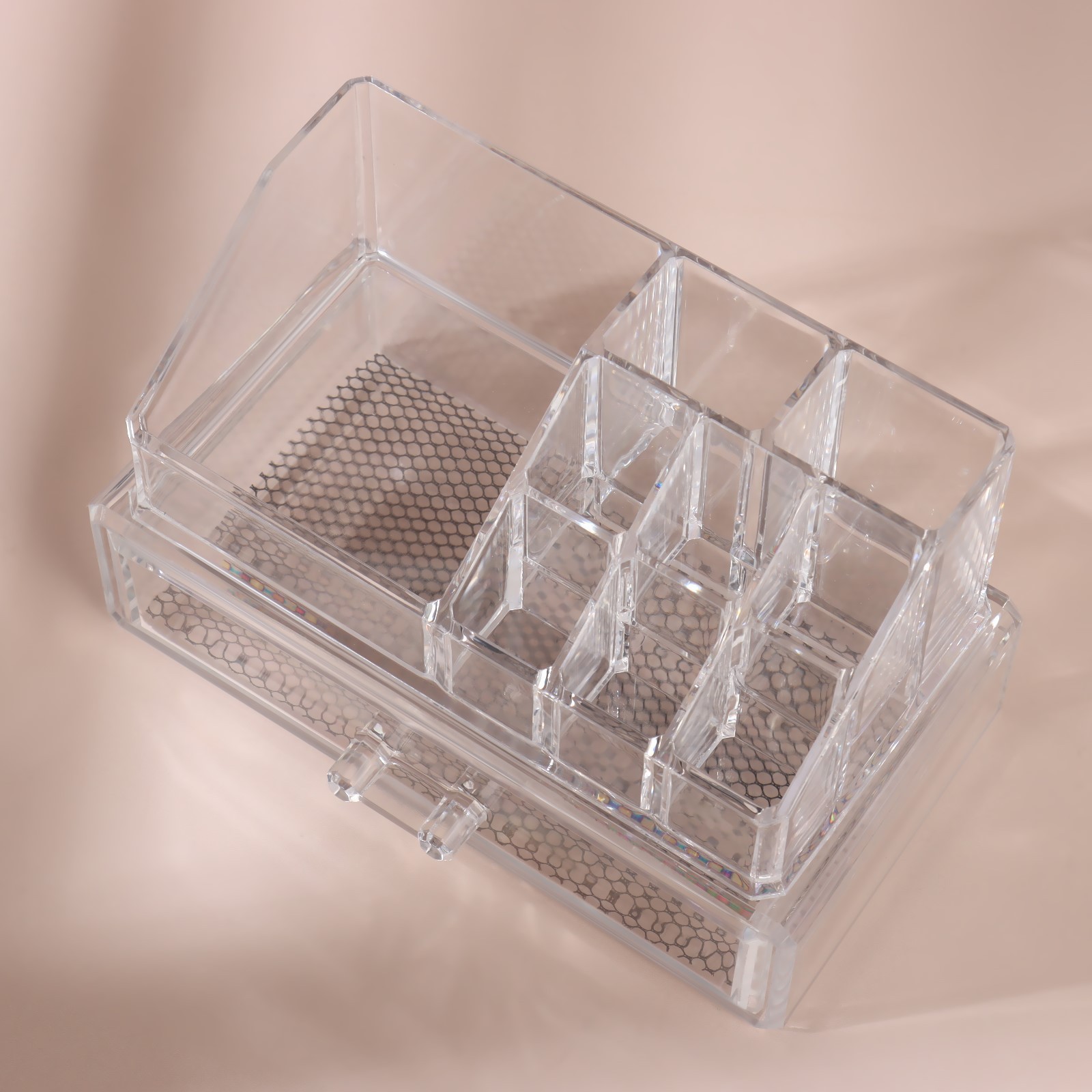 Органайзер для хранения, 9 секций, с выдвижным ящиком, 18,5 X 10 X 11,5 см, в картонной коробке, цвет прозрачный