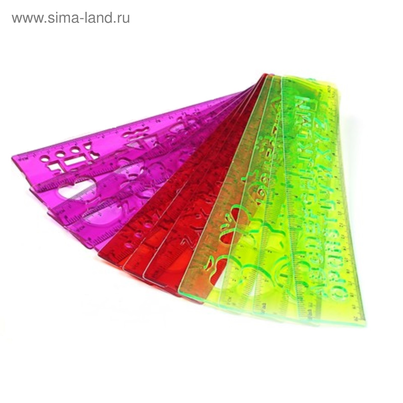 Линейка с трафаретом Calligrata 20 см, гибкая, силикон, микс