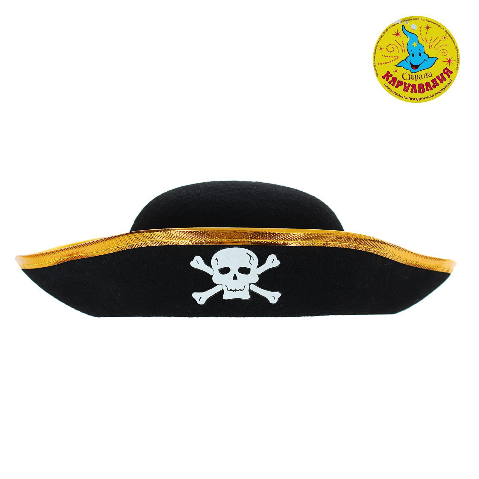 Шляпа пиратская, детская, золотистая каемка, р-р. 50
