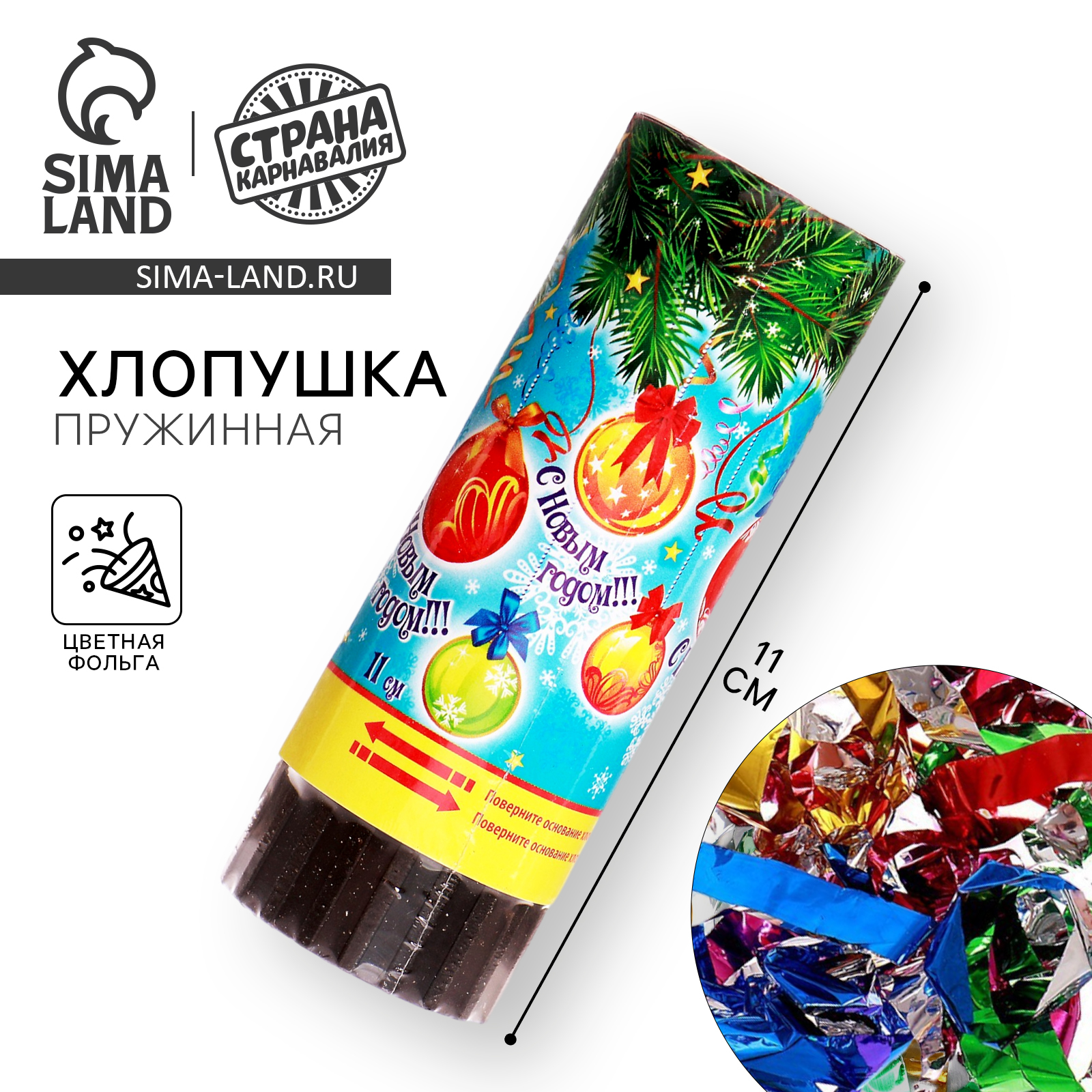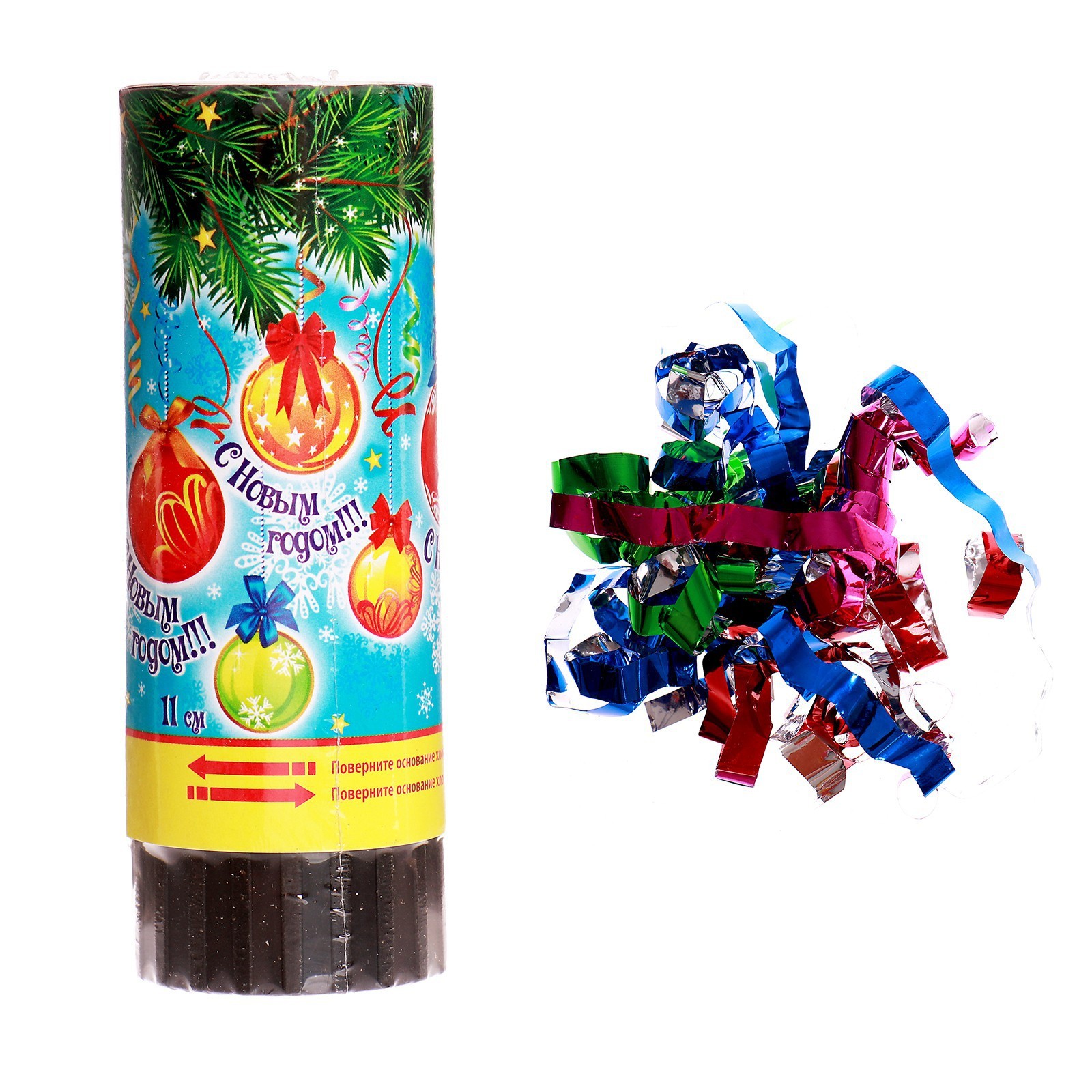 Хлопушка пружинная «с новым годом!», 11 см конфетти, фольга-серпантин. Новый год – это время масштабных празднеств, шумных гуляний с песнями, фейерверками и, конечно же, хлопушками! Время, когда крики «ура» в 12 ночи не только не осуждаются обществом, но и горячо поддерживаются. Так давайте нарушим тишину! Хлопушка пружинная «С Новым годом!», 11 см конфетти, фольга-серпантин создана специально для тех, кто привык ярко встречать этот веселый праздник, или для тех, кто хочет разнообразить новогодний вечер. Хлопушка приводится в действие при повороте специально обозначенной части за счет сжатого воздуха и абсолютно безопасна в эксплуатации. Подходит для применения в помещении и на улице. Яркая упаковка с душевными пожеланиями и праздничное наполнение хлопушки сделают ваш праздник незабываемым! Длина, см:11|Символ года:Нет|Тематика праздника:Новый год|Тематика хлопушки:Новый год|Вид хлопушки:Пружинная|Наполнение:Фольга|Цвет наполнения:Разноцветный|Страна:Китай  развернуть описание ▼