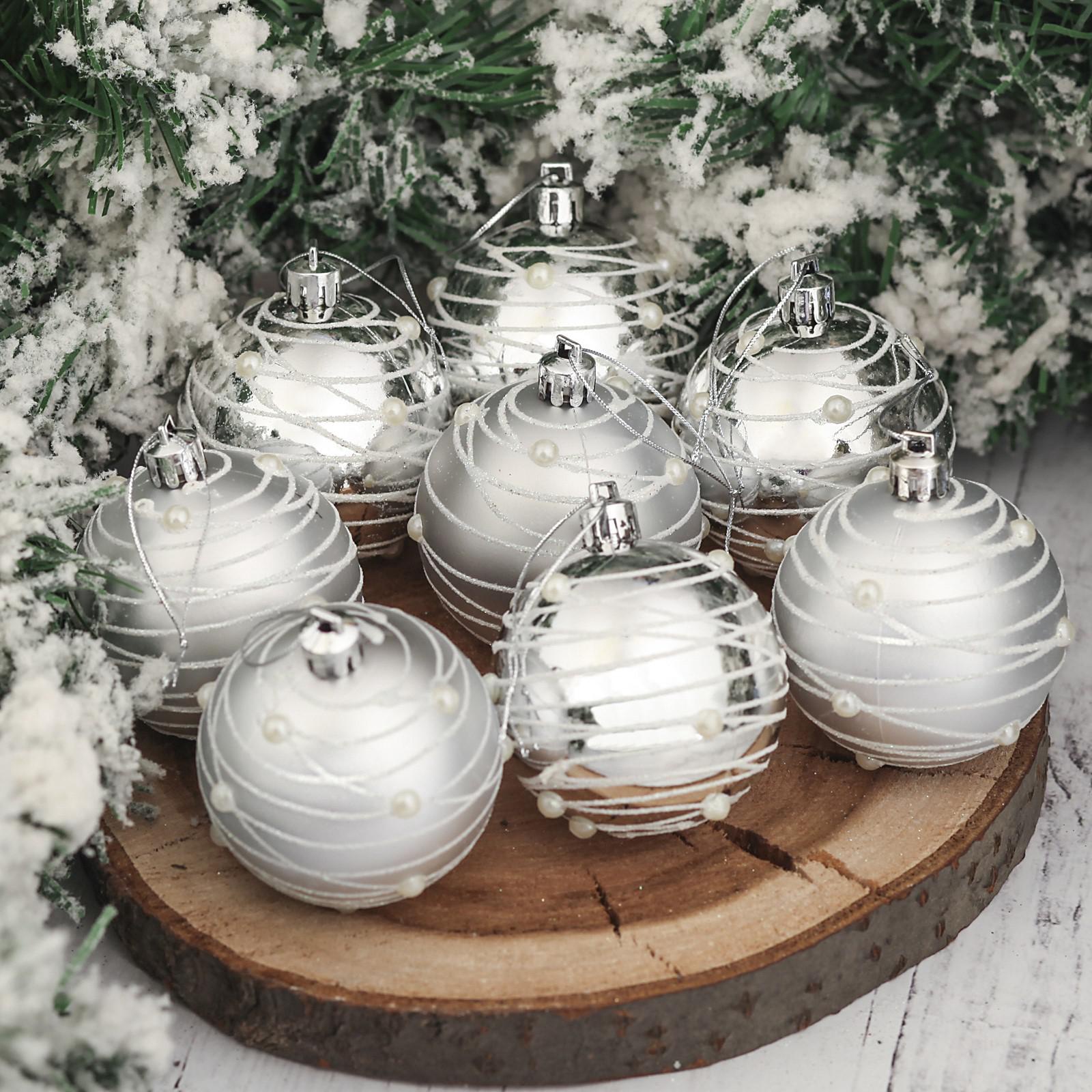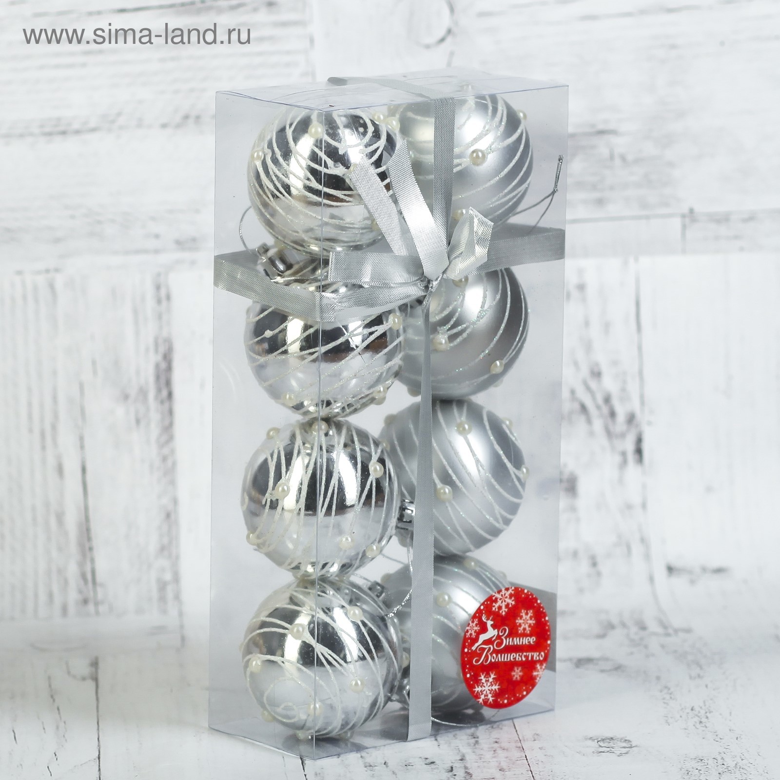 Ёлочные игрушки «жемчужный орион», шары новогодние, D=6 см, набор 8 шт., серебро