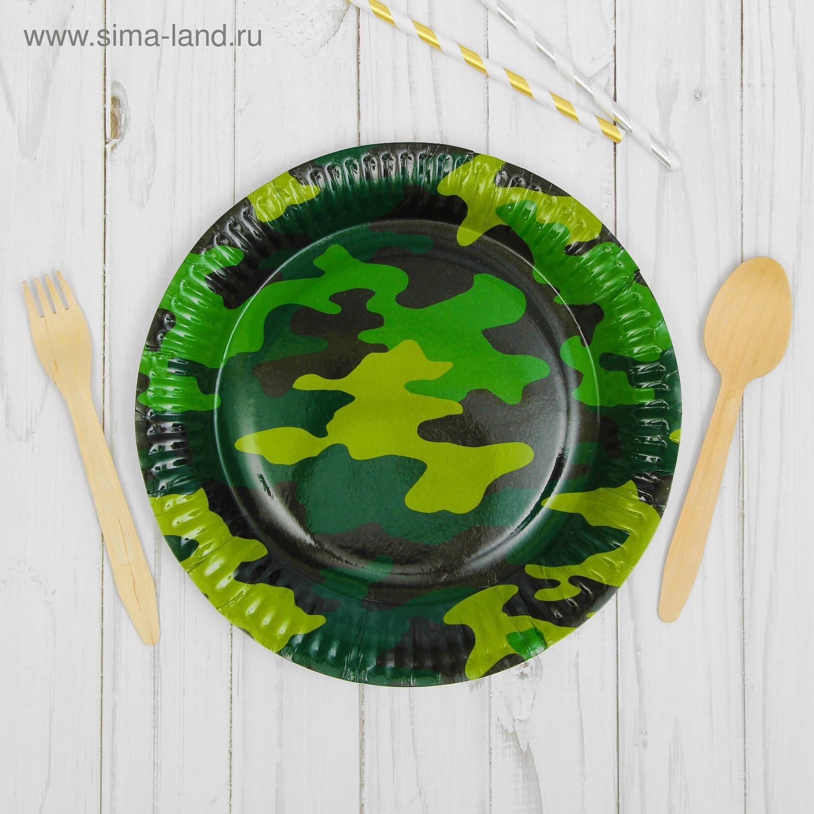 Тарелка бумажная «камуфляж», 23 см, 6 шт.
