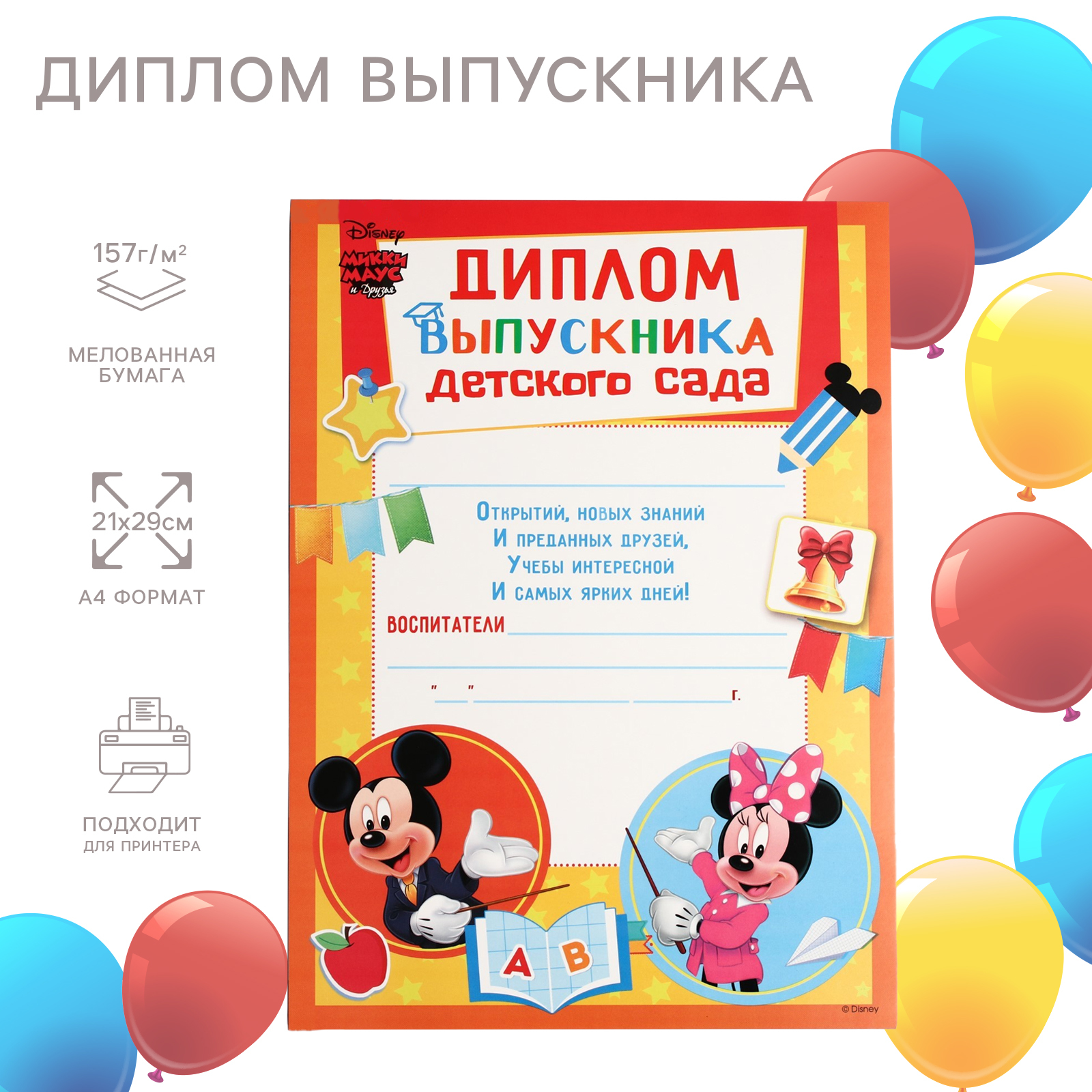 Диплом на выпускной «выпускник детского сада» а4, микки маус