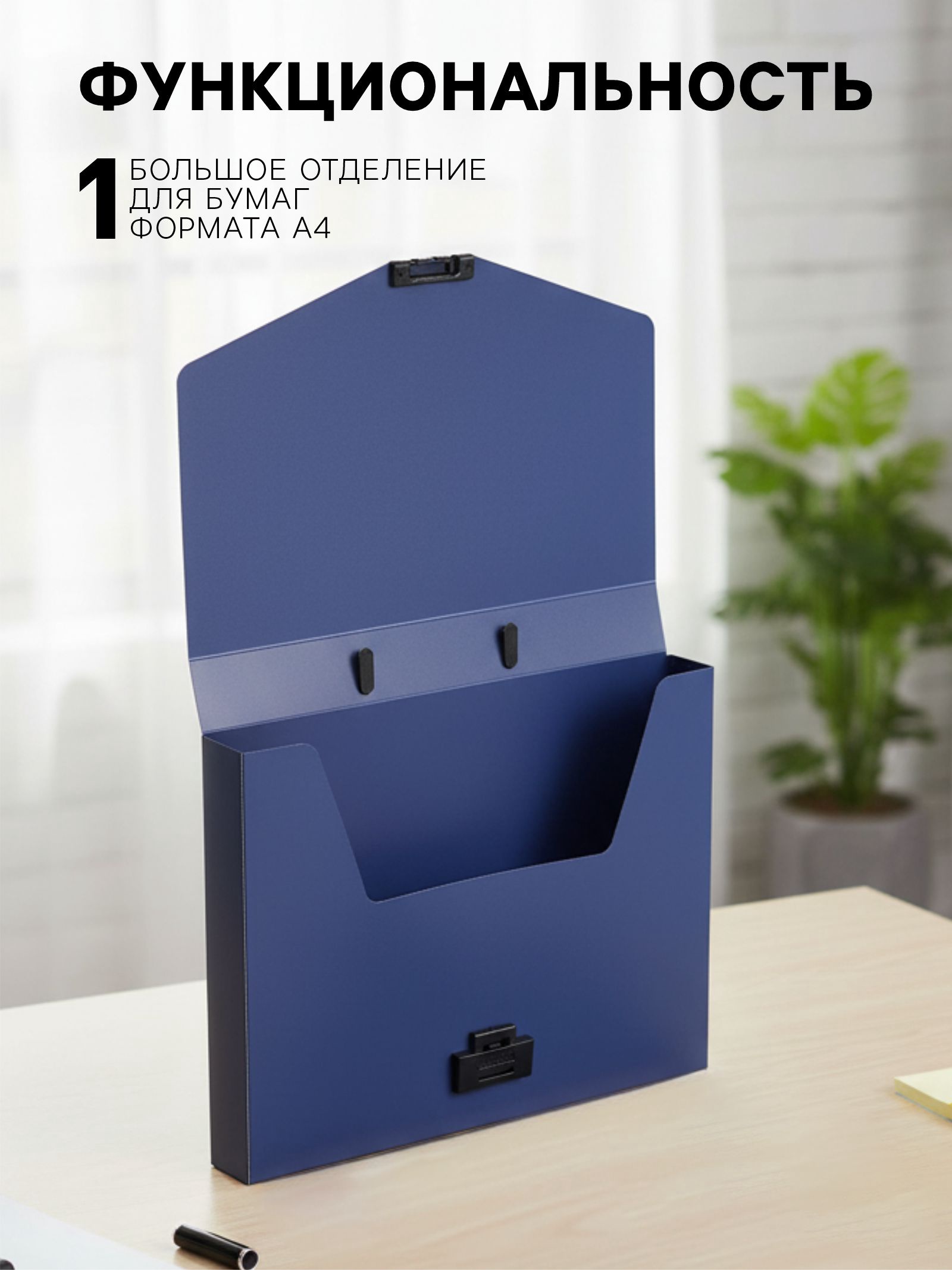 Папка-портфель а4, 1 отделение, 700 мкм, Calligrata, до 300 листов, синяя