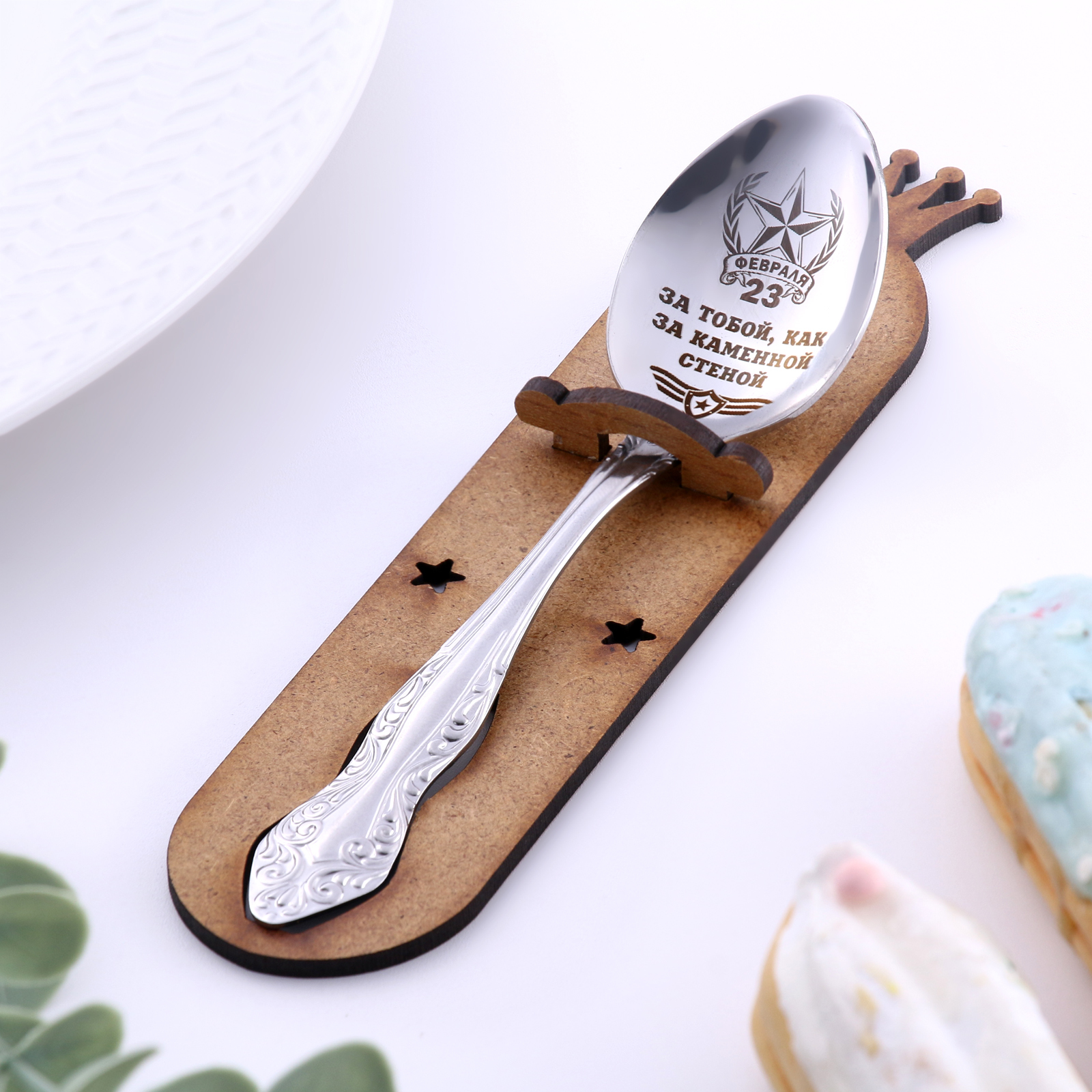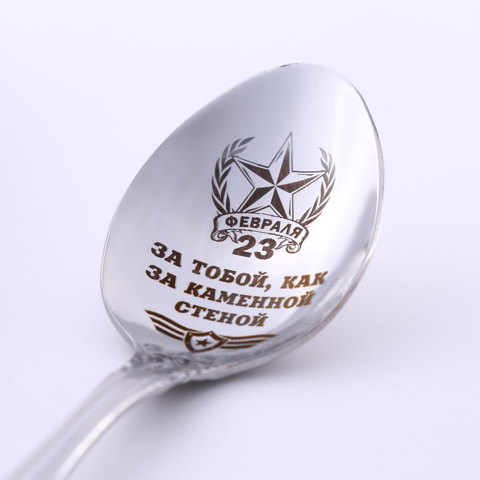 Ложка чайная с гравировкой «за тобой, как за каменной стеной», H=14см.