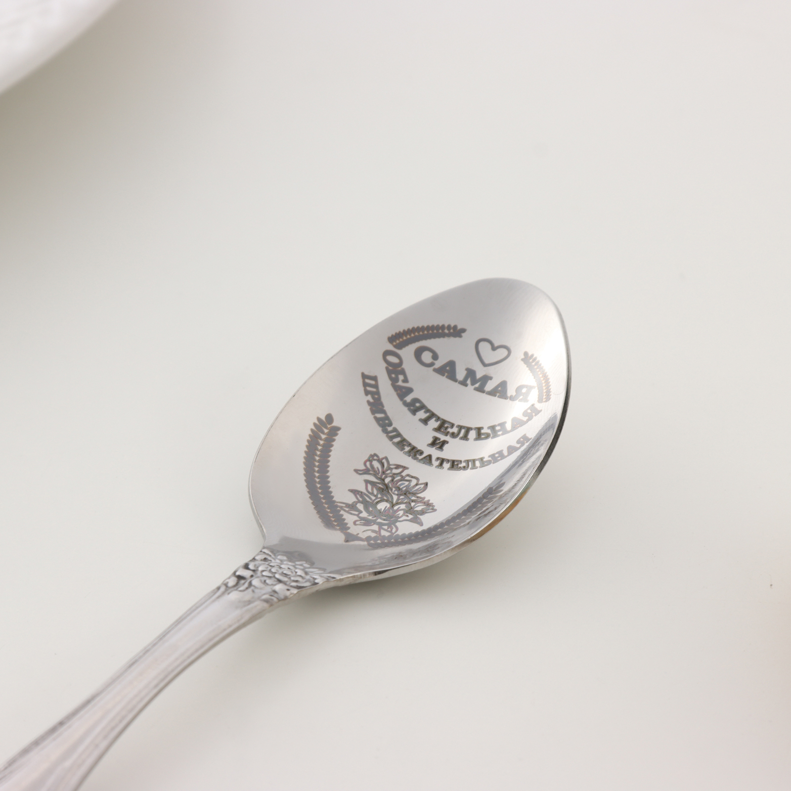 Ложка чайная с гравировкой «самая обаятельная и привлекательная», H=14см.