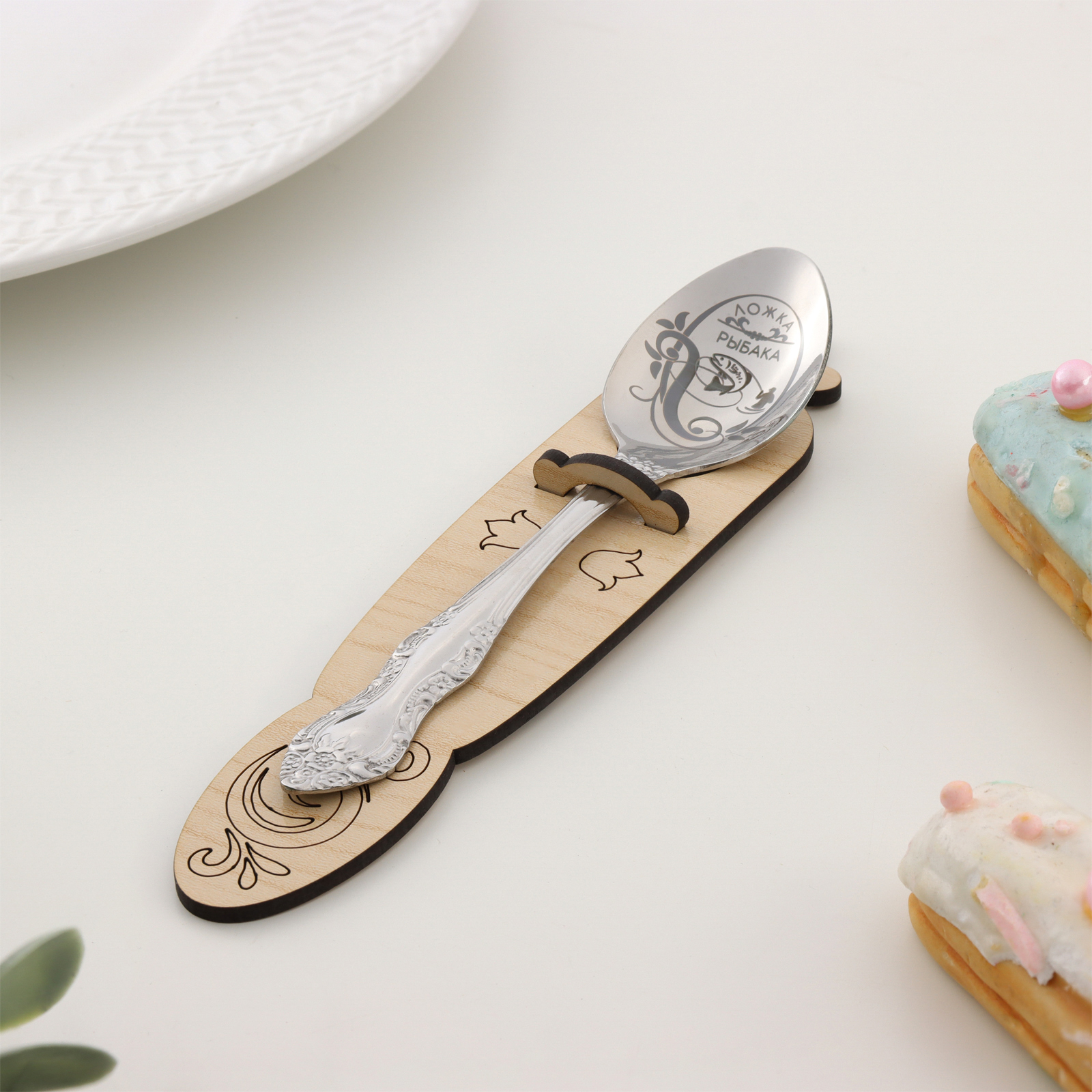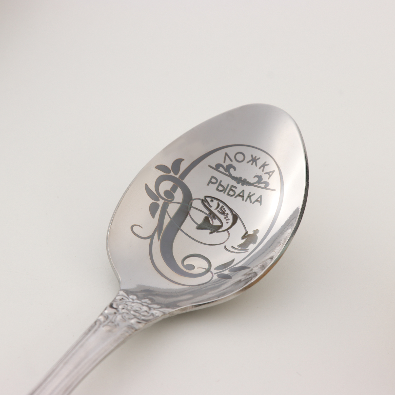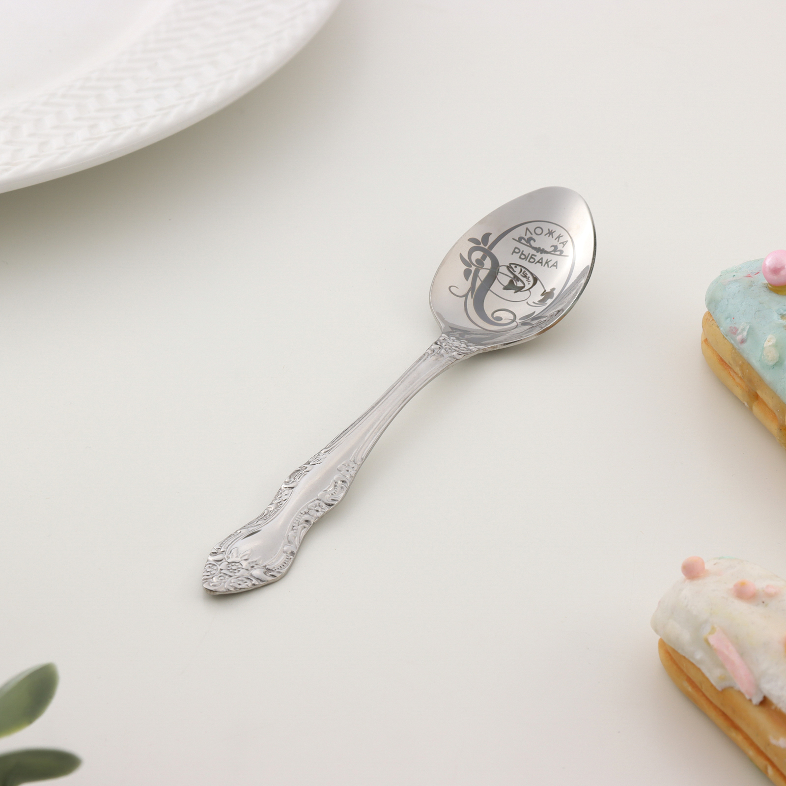 Ложка чайная с гравировкой "рыбака", H=14см.