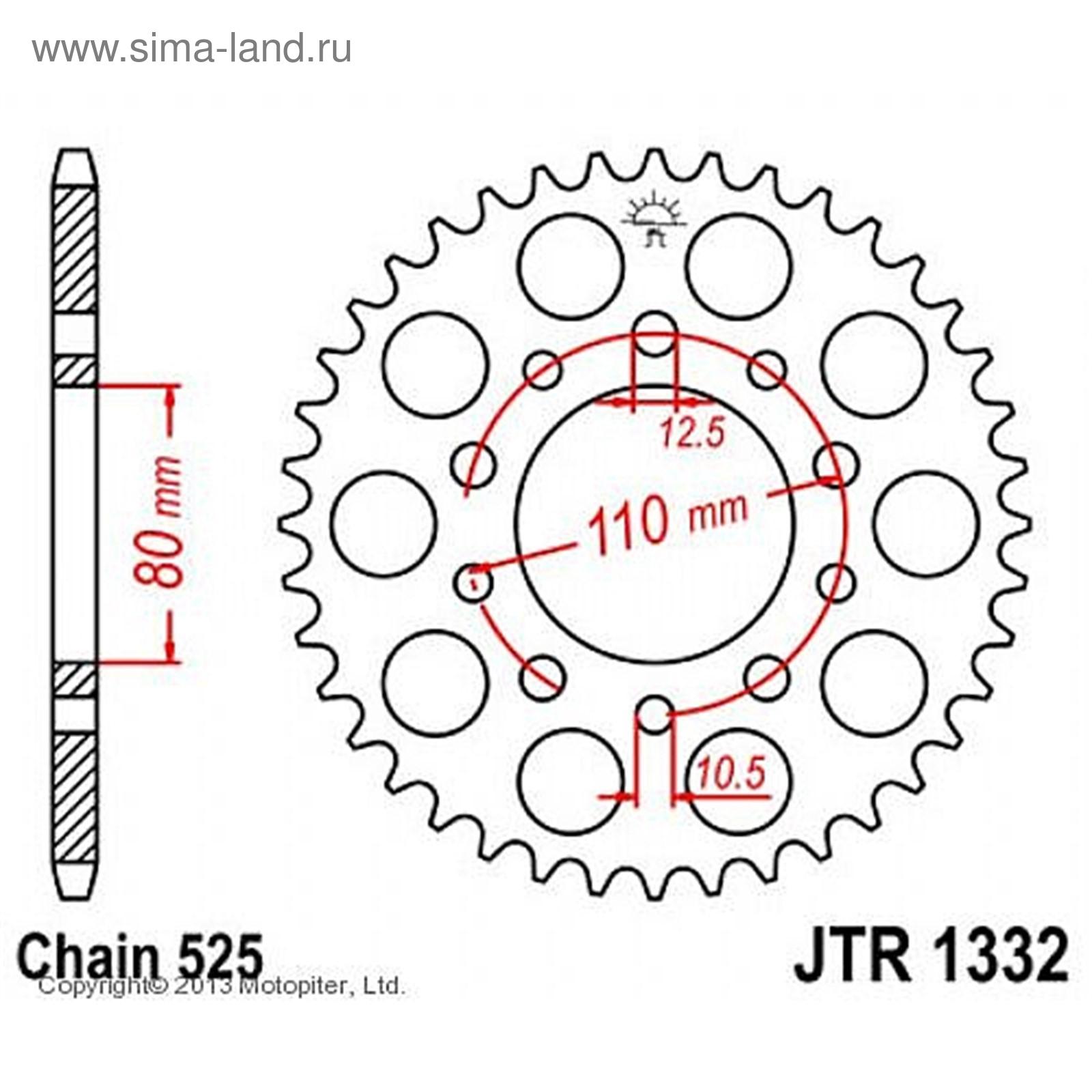 Звезда ведомая Jt Sprockets Jtr1332-38, цепь 525, 38 зубьев