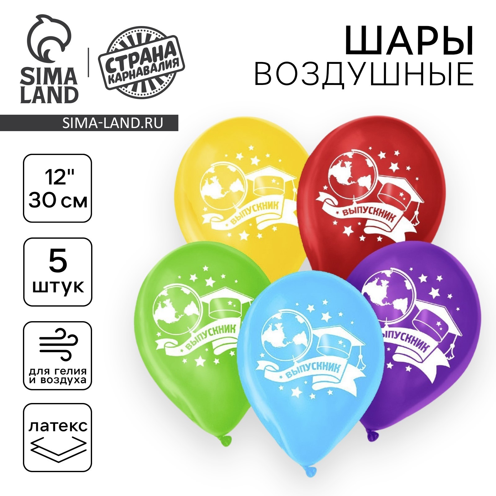 Воздушные шары латексные 12 «выпускник», 5 шт., микс