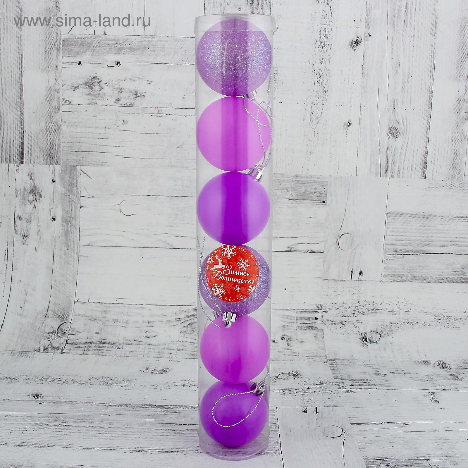 Ёлочные игрушки «неон», шары новогодние, набор 6 шт., D=6 см, фиолетовый