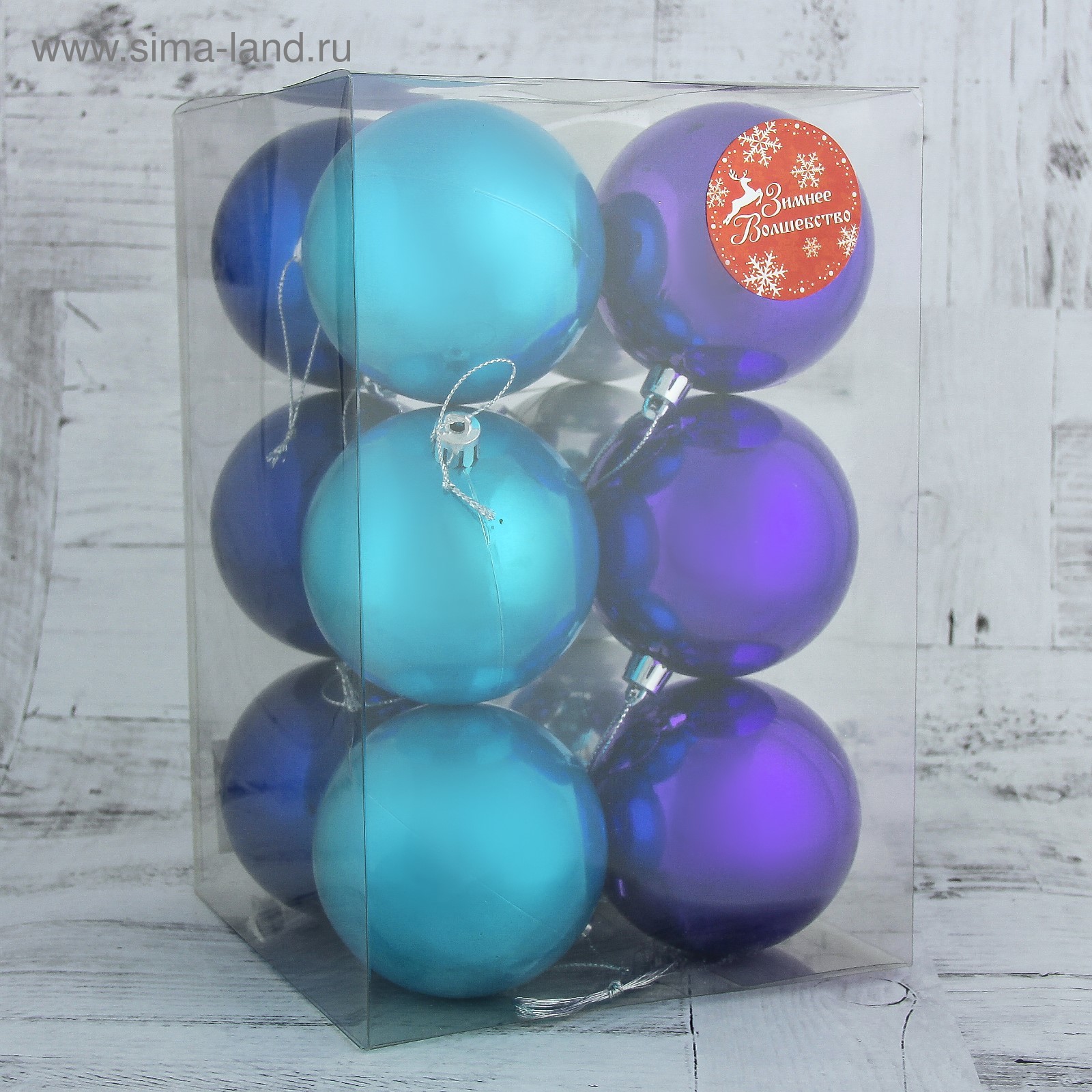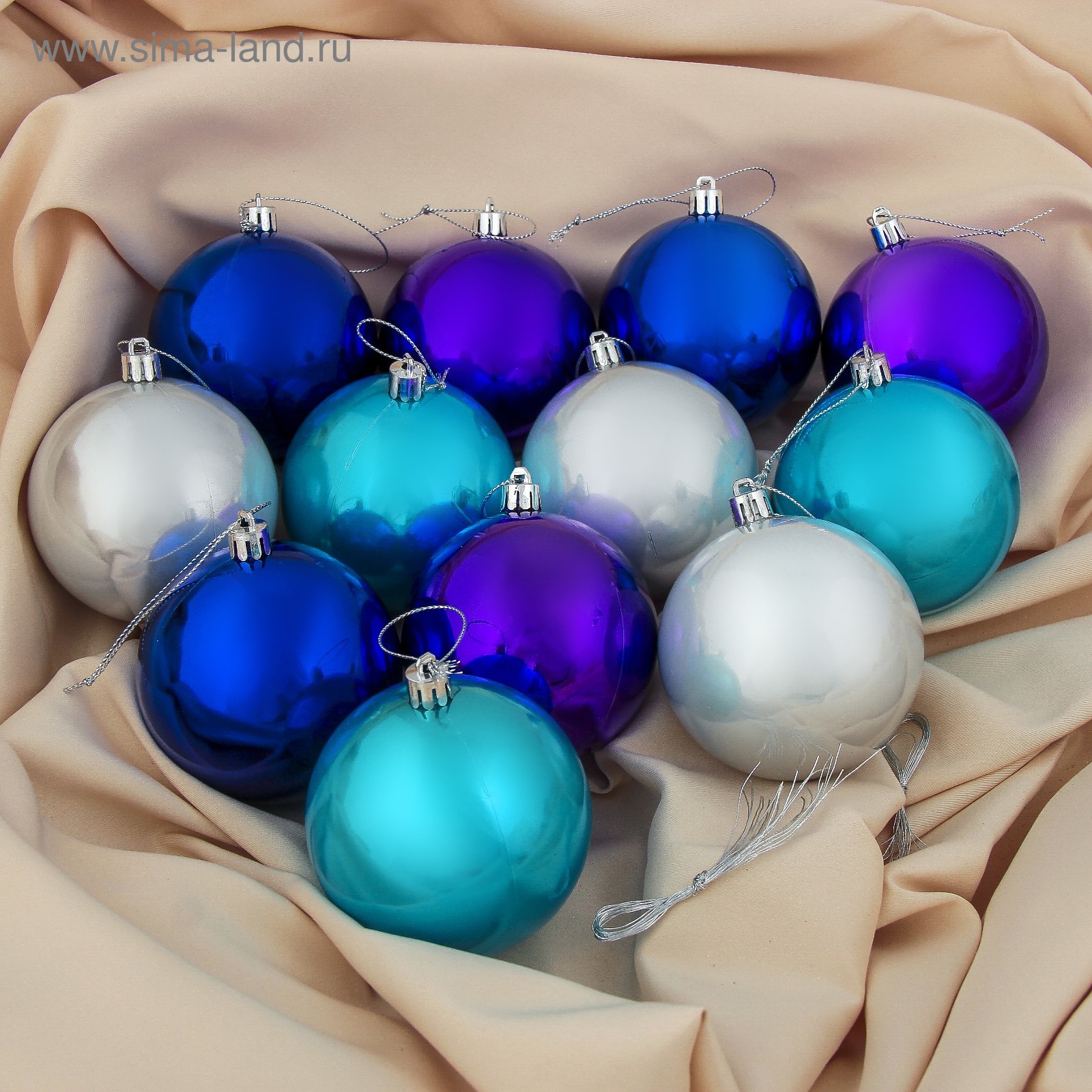 Ёлочные игрушки «глянец», шары новогодние, D=8 см, набор 12 шт., микс