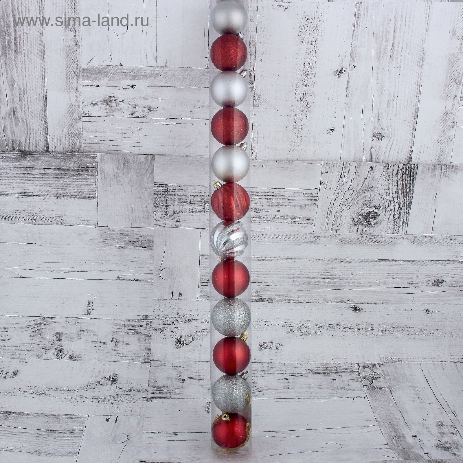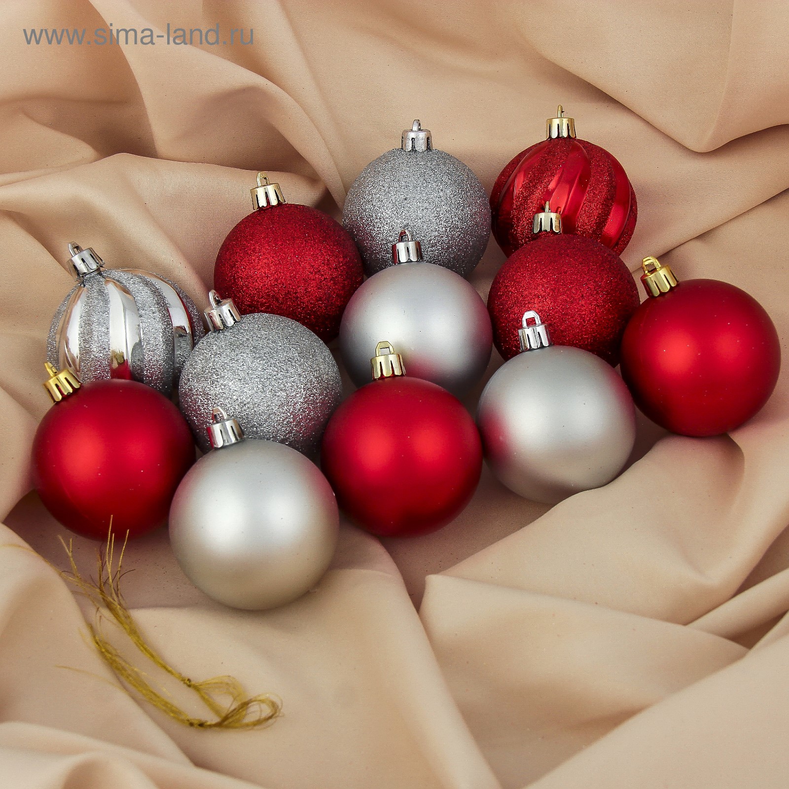 Набор:Да|Цвет:МИКС|Цвет:Красный|Цвет:Серебристый|Диаметр шара, см:6|В наборе, шт.:12|Рисунок:Да|Символ года:Нет|Тематика праздника:Новый год|Материал:Пластик|Стиль:Скандинавский|Страна:Китай