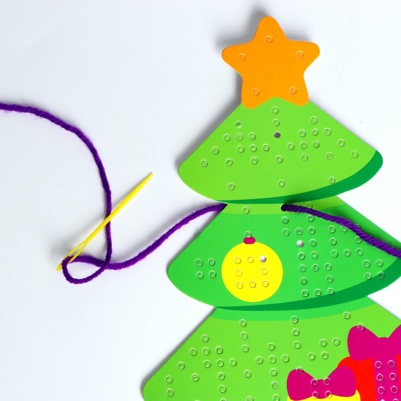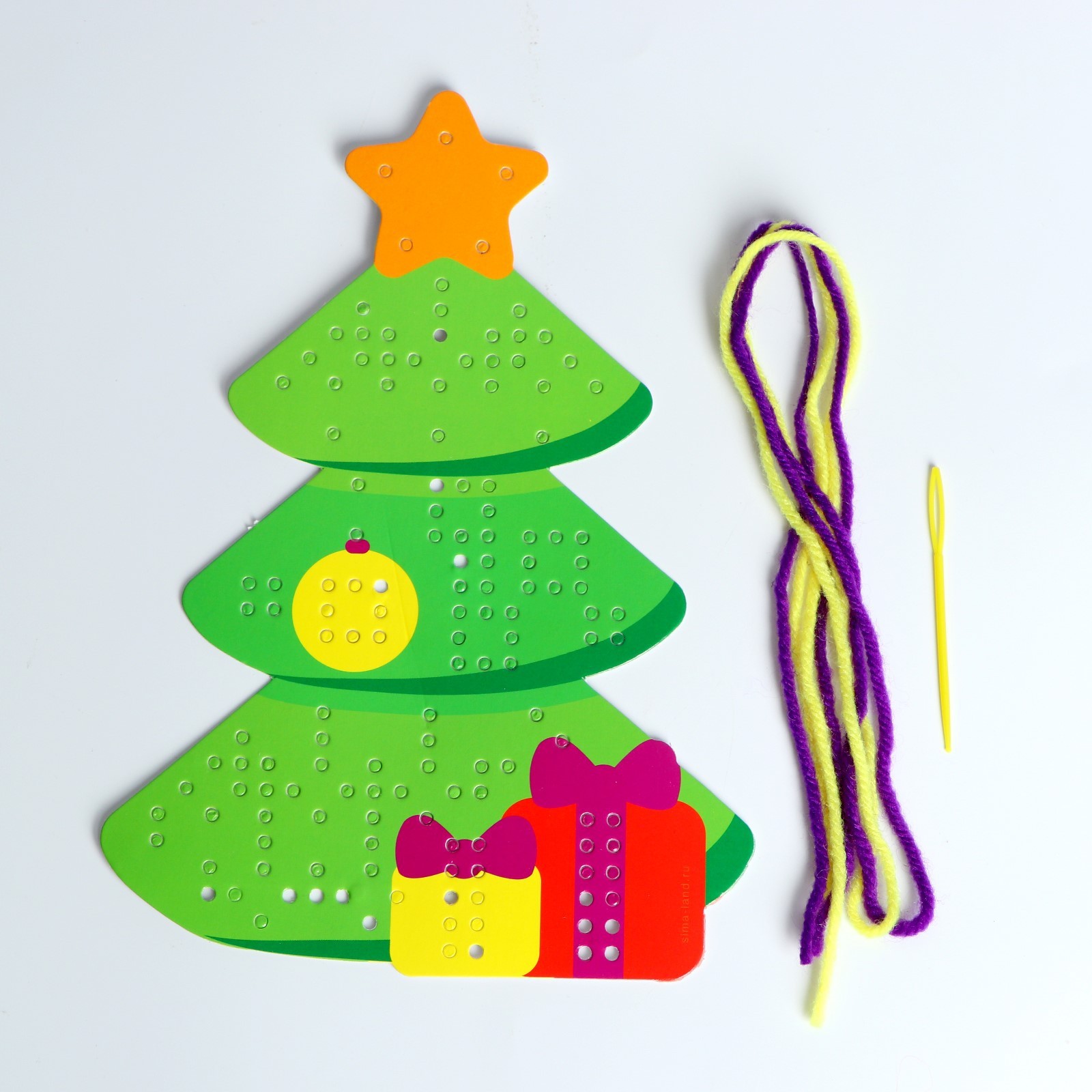 Вышивка пряжей «новый год! ёлка» на картоне с пластиковой иглой, набор для творчества