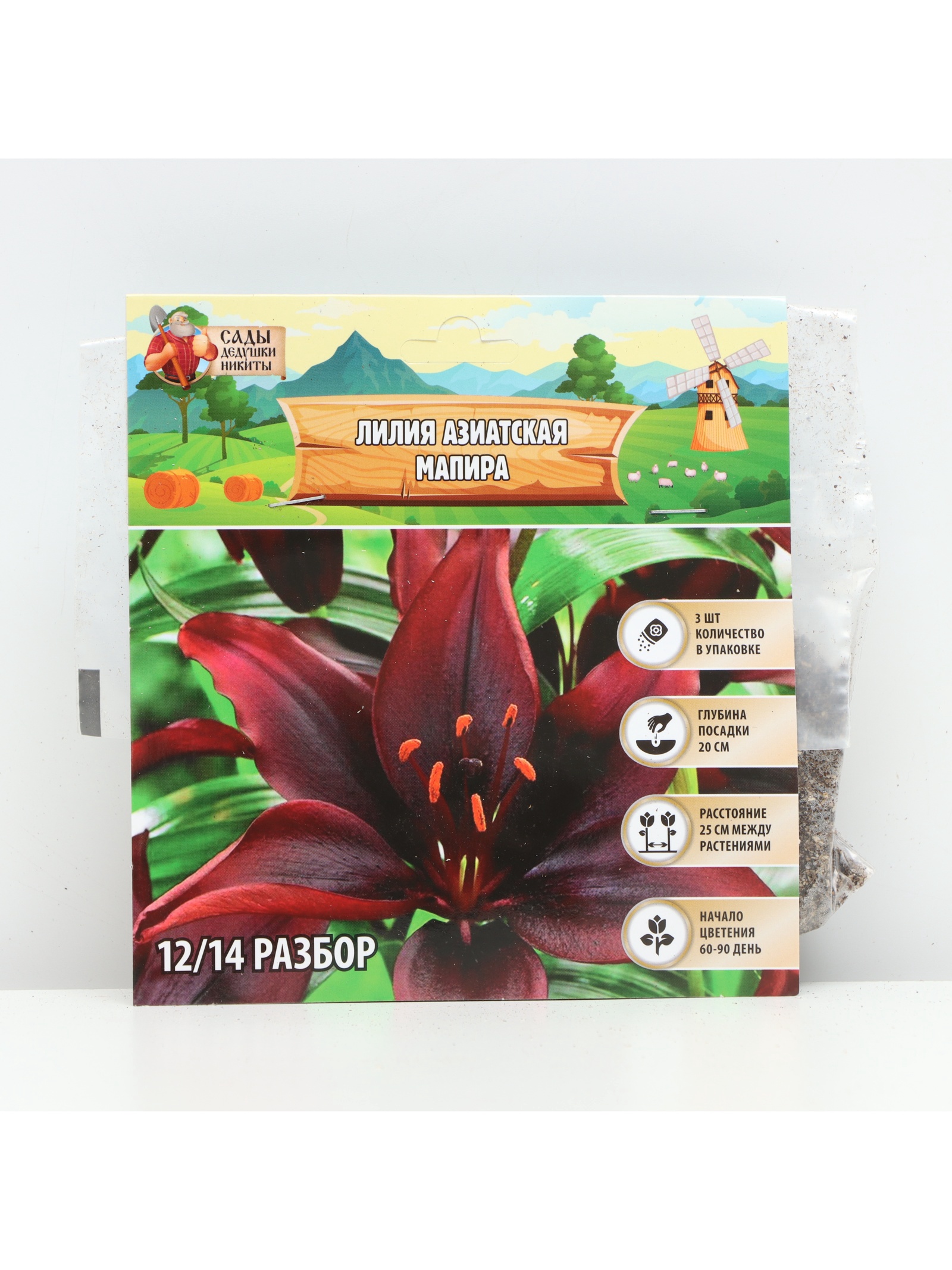 Лилия азиатская «мапира», луковица в пакете с перфорацией, р-р 12/14, 3 шт.. Лилии — травянистое растение, с прямостоячими стеблями высотой от 60 до 180 см. Луковицы голые или чешуйчатые, яйцевидной или округлой формы, состоят из небольших долек, плотно прилегающих друг к другу. Корни у лилий отходят от донца мощным пучком. Цветки лилий одиночные или собраны по нескольку штук в зонтичных соцветиях. Количество цветков в соцветиях достигает 35 40 шт. Требуется опора, чтобы поддержать тяжелые шапки цветов. Сажать нужно в полутени, в питательную и рыхлую водопроницаемую почву. Луковицы высаживаются в землю на глубину, превышающую их диаметр втрое. Подготовьте защитные подушки в каждой ямке из смеси промытого речного песка с золой. На песчаные подушки высадите луковицы, аккуратно расправляя их корни и немного вдавливая в песок. Сверху засыпьте почвой, полейте и замульчируйте торфом. Цвет:Бордовый|Темпер. ограничение НЕ НИЖЕ :0|Сезон доставки:Лето|Вид упаковки:Пакет|Корневая система:ОКС (открытая корневая система)|Морозостойкость:От -29.1 до -35 °С|Место посадки:Солнце|Место посадки:Полутень|Сложность ухода:Не требовательное|Диаметр цветка (соцветия):12-15 см|Цветение:Однократное, длительное (1 раз за сезон)|Ширина куста:До 70 см|Высота растений:60-100 см|Период цветения:Лето|Вид :Азиатские|Страна:Россия  развернуть описание ▼