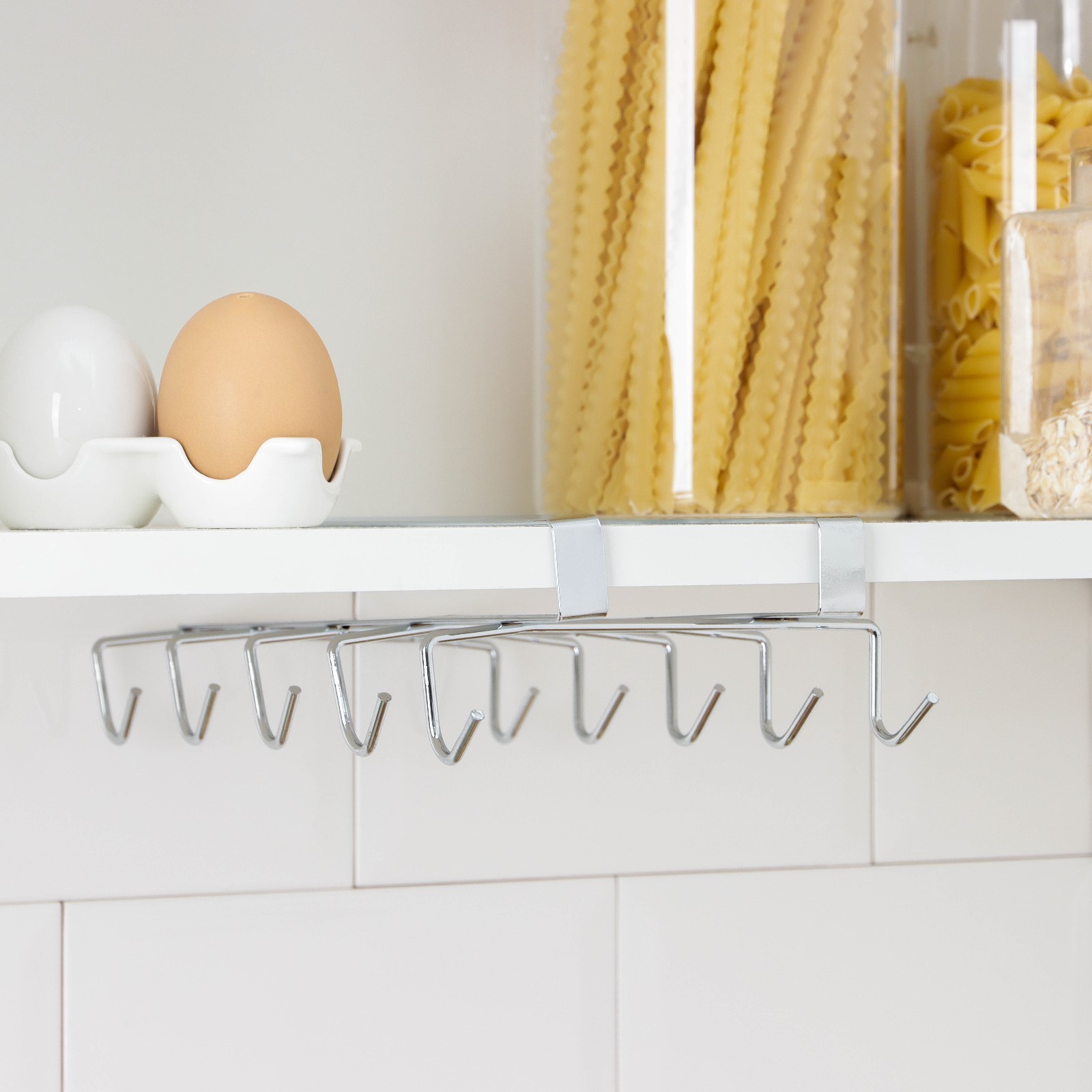 Держатель для кружек подвесной на 10 предметов доляна, 27.5 14 6.5 см, серебристый. Удобный держатель предназначен для экономии места на кухне, а именно компактного хранения полотенец в одном месте. Преимущества: Универсальный подвесной держатель помогает решить проблему с ограниченным количеством мест хранения, эффективно использовать пространство в доме.Держатель можно использовать для хранения кружек, а также для полотенец, благодаря удобным крючкам.Изделие прочное, не гнётся, не окисляется.Цвет:Хромированный|Количество предметов:10|Материал:Металл|Вид установки:Подвесной|Страна:Китай  развернуть описание ▼