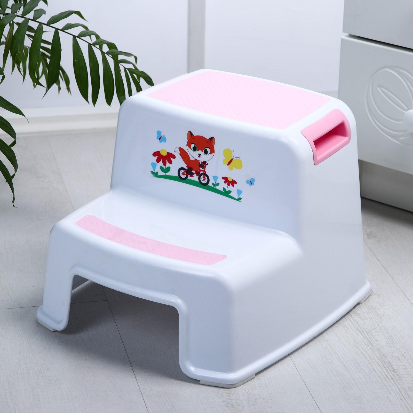 Подставка детская для ног «лисичка», ступенька. Детская подставка со ступенькой - незаменимый предмет в жизни малыша, начавшего самостоятельное освоение пространства вокруг. С помощью подставки ребенок сможет дотянуться до необходимых ему предметов. Наличие двух ступенек значительно облегчает возможность подъема. Табурет-подставка легкий и его удобно перемещать по комнате. Противоскользящие вставки и специальная фактура поверхности обеспечивают малышу безопасность. Цвет: Белый Для кого: Для девочки Ширина, см: 33.5 Высота, см: 25 Глубина, см: 36 Maксимальная нагрузка, кг: 15 Вес, г: 850 Материал корпуса: Пластик Возраст: Детский Материал: Пластик Антискользящие ножки: Да Особенность: Стульчик-лесенка Температурное ограничение: Нет Эксклюзивный дизайн: Да  развернуть описание ▼