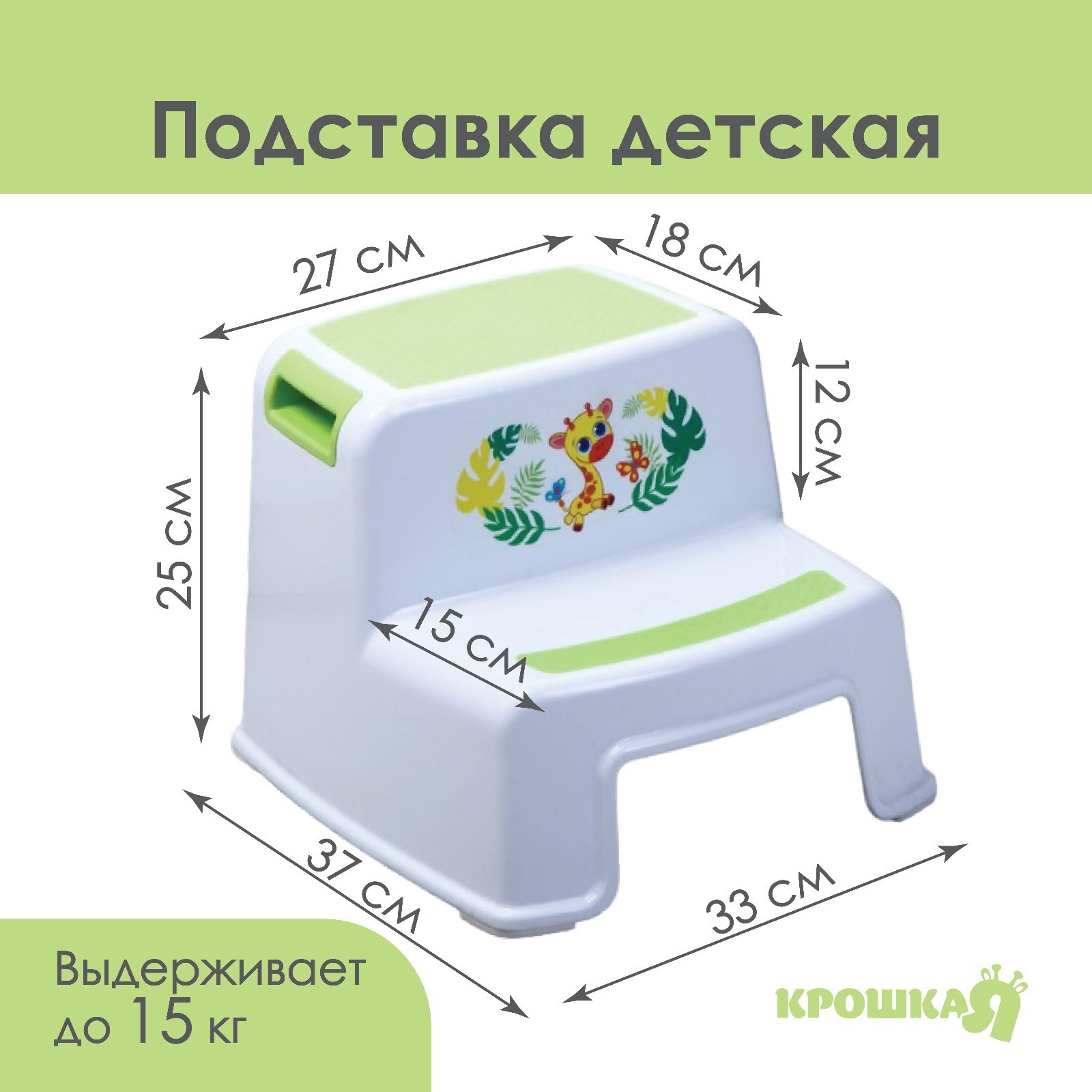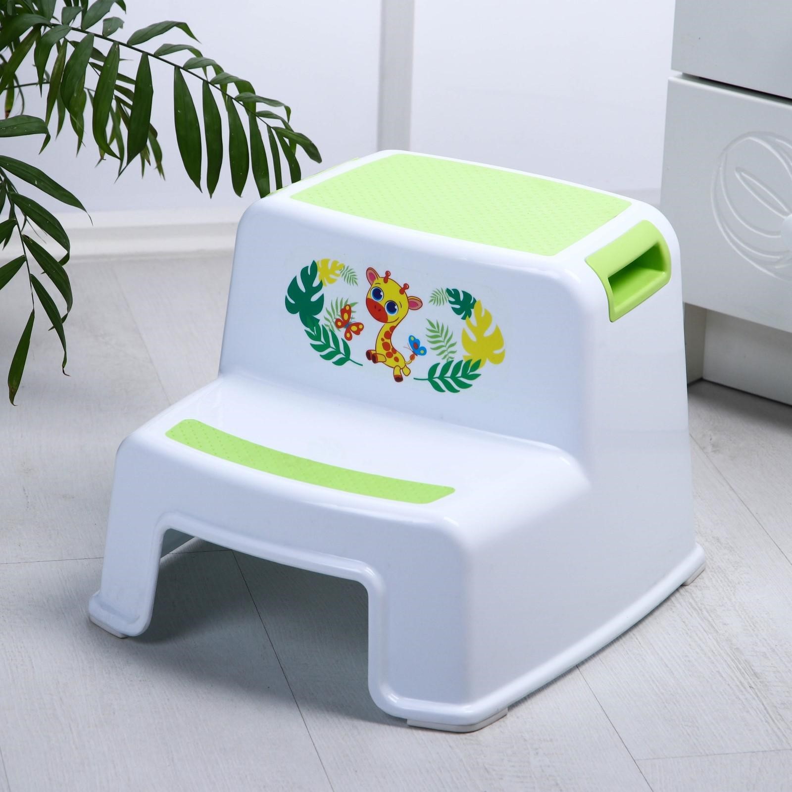 Подставка детская для ног «жирафик», ступенька.   Детская подставка со ступенькой - незаменимый предмет в жизни малыша, начавшего самостоятельное освоение пространства вокруг. С помощью подставки ребенок сможет дотянуться до необходимых ему предметов. Наличие двух ступенек значительно облегчает возможность подъема. Табурет-подставка легкий и его удобно перемещать по комнате. Противоскользящие вставки и специальная фактура поверхности обеспечивают малышу безопасность.  Цвет: Белый Для кого: Унисекс Ширина, см: 33.5 Высота, см: 25 Глубина, см: 36 Maксимальная нагрузка, кг: 15 Вес, г: 850 Материал корпуса: Пластик Возраст: Детский Материал: Пластик Антискользящие ножки: Да Особенность: Стульчик-лесенка Температурное ограничение: Нет Эксклюзивный дизайн: Да  развернуть описание ▼