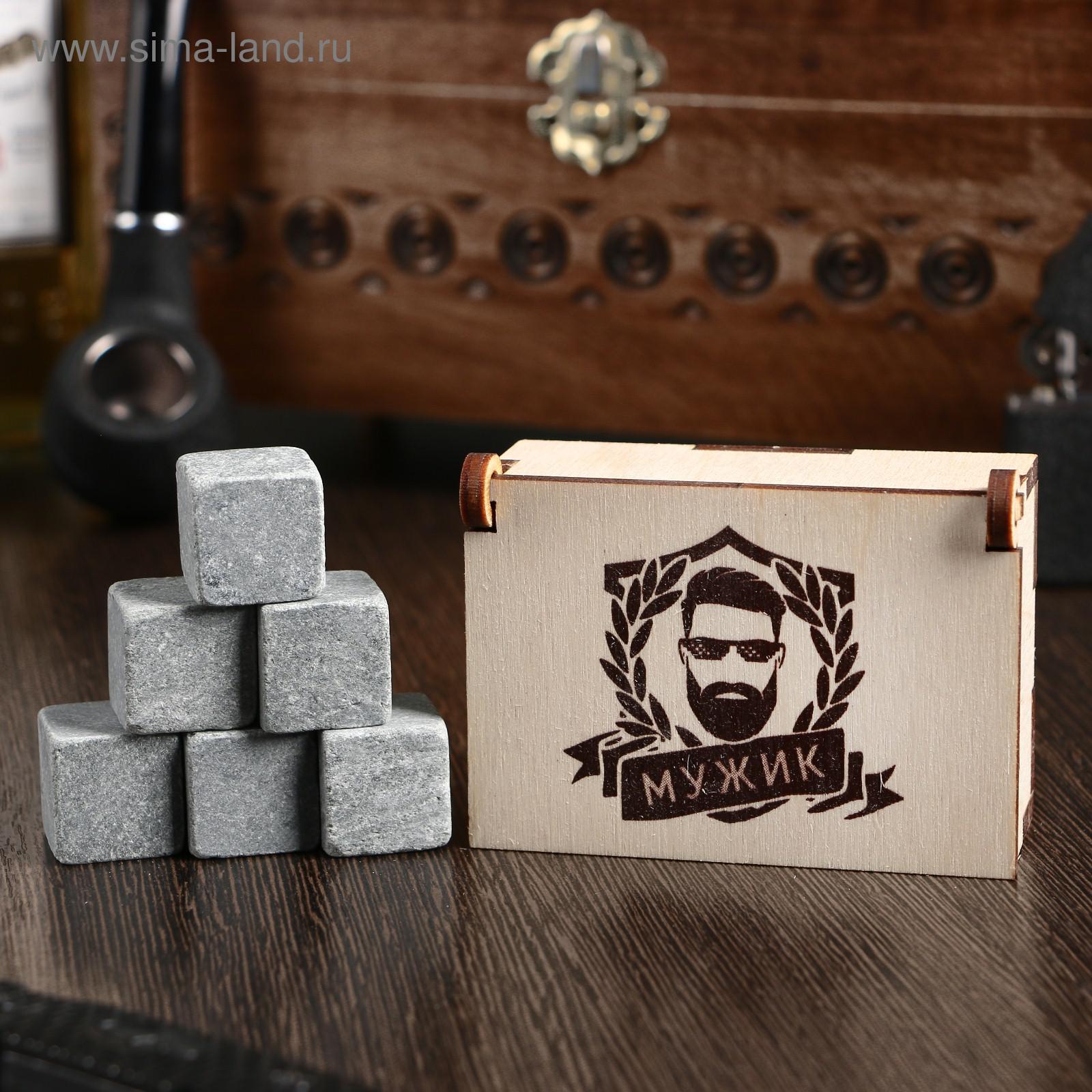 Камни для виски "мужик.борода", в шкатулке, натуральный стеатит, 6 шт