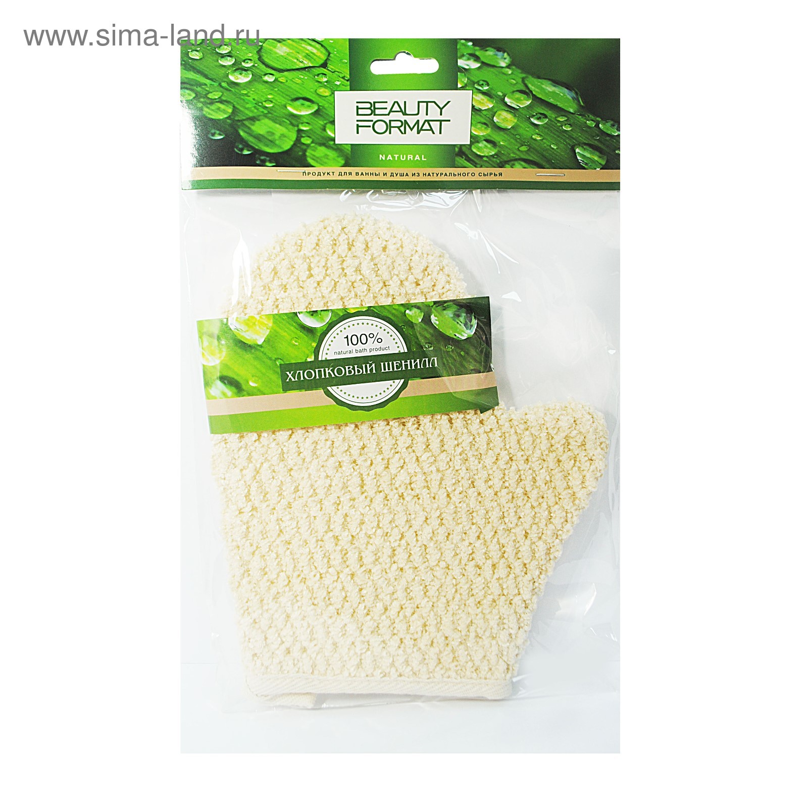 Мочалка Beauty Format натуральная рукавица, хлопковый шенилл