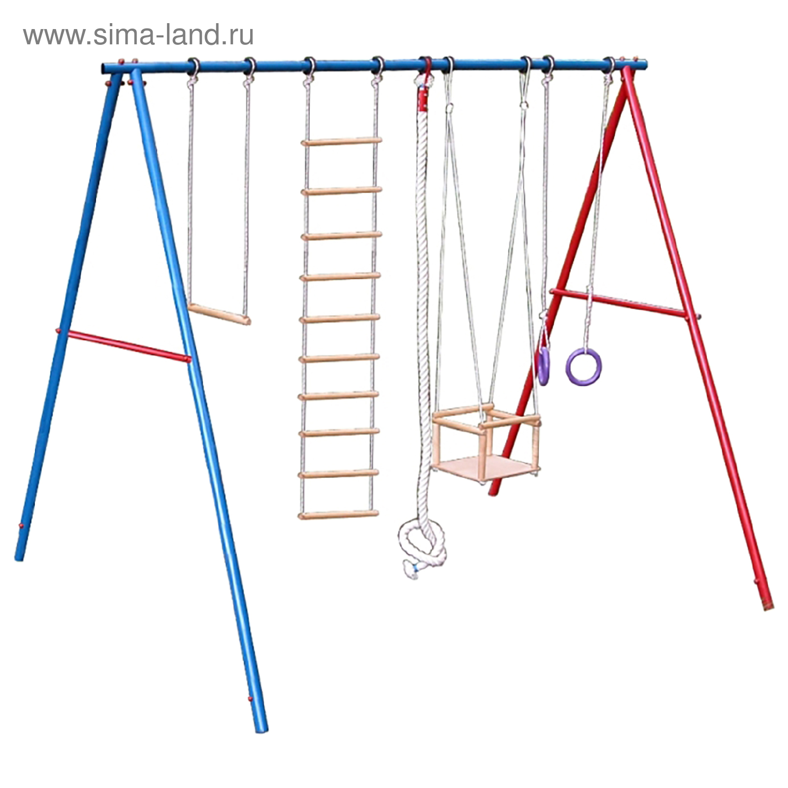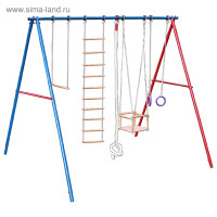 Детский спортивный комплекс уличный «вертикаль» а мини. Особенности: высота 2, 05 мплощадь 2, 3х2 мнагрузка на верхнюю опору до 70 кгстальные трубы диаметром 40 мм, стенка 1, 5 ммверхняя опора толщина стенки 2, 0 мм25 мм, стенка 1, 5 ммкомплектация: пластмассовые качели, канат цветной синтетический, кольца гимнастические пластмассовые, лестница веревочная, трапециявес 25 кг Возраст: От 3 лет Maксимальная нагрузка, кг: 70 Комплектация: Канат Комплектация: Лестница Комплектация: Трапеция Комплектация: Качели Комплектация: Кольца  развернуть описание ▼