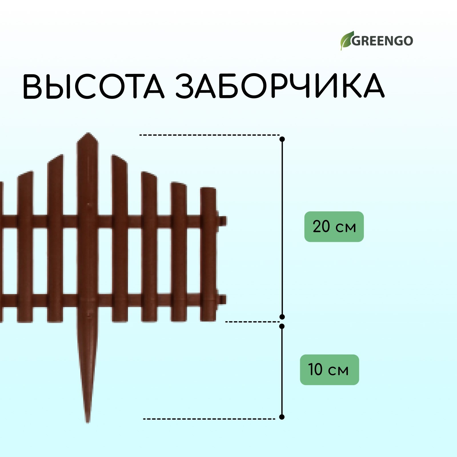 Ограждение декоративное, 30 300 см, 5 секций, пластик, коричневое, Greengo