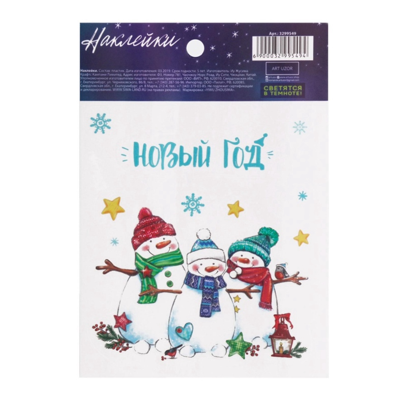 Наклейки новогодние со светящимся слоем «улыбок в новом году», 10.5 х 14.5 см