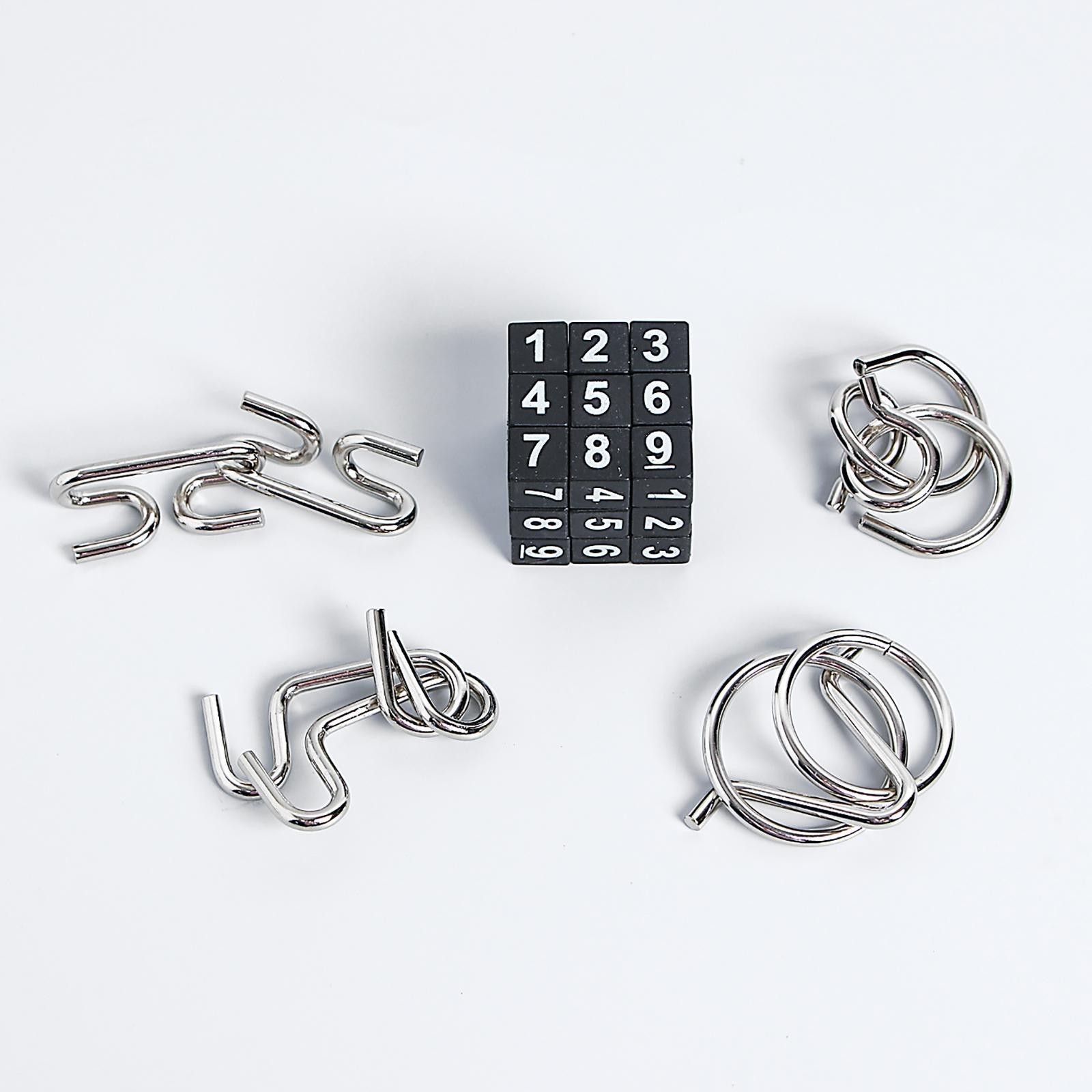 Головоломка металлическая «океан», набор 5 шт.. Металлические головоломки «Океан» — это увлекательный набор для любителей логических задач. В комплекте представлены различные головоломки, которые заставят размышлять, анализировать и находить нестандартные решения. Такой формат отлично подходит как для детей, так и для взрослых, ведь тренировка ума полезна в любом возрасте. Особенности набора 5 головоломок разного типа и сложности.Металлические детали обеспечивают долговечность и надёжность.Компактный формат позволяет играть в любом месте — дома, на отдыхе, в дороге.Развитие через игру Разгадывание головоломок помогает улучшить логическое мышление, концентрацию и мелкую моторику. Каждая задача требует внимательности и терпения, что делает процесс решения особенно увлекательным. Набор головоломок — это не просто игрушка, а отличный инструмент для развития мышления и навыков решения задач. Для кого:Унисекс|Возраст:От 7 лет|Материал:Пластик|Материал:Металл|Жанр игры:Головоломки и логические|Дополнительные функции:Развивающая|Сложность головоломки:7|Страна:Китай  развернуть описание ▼