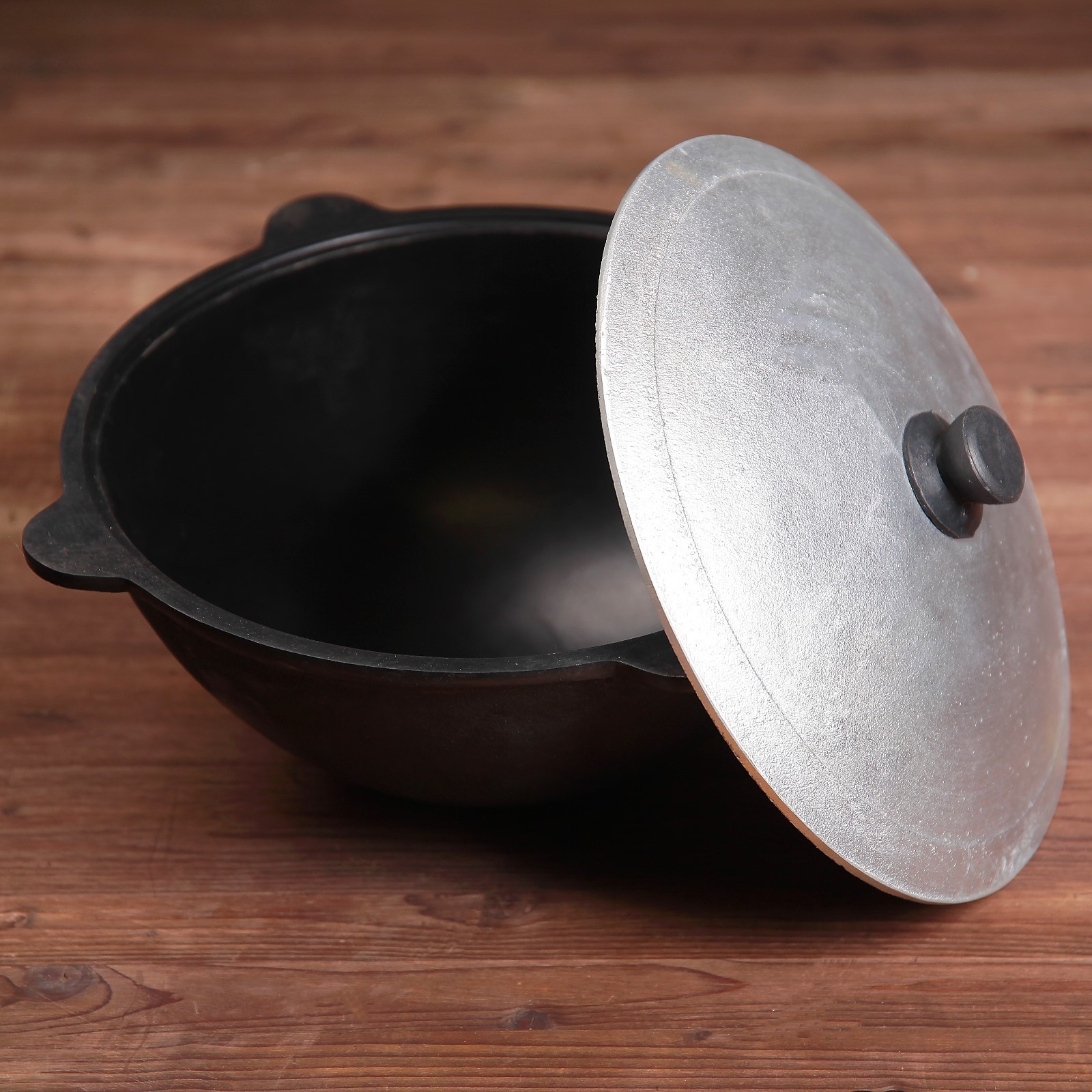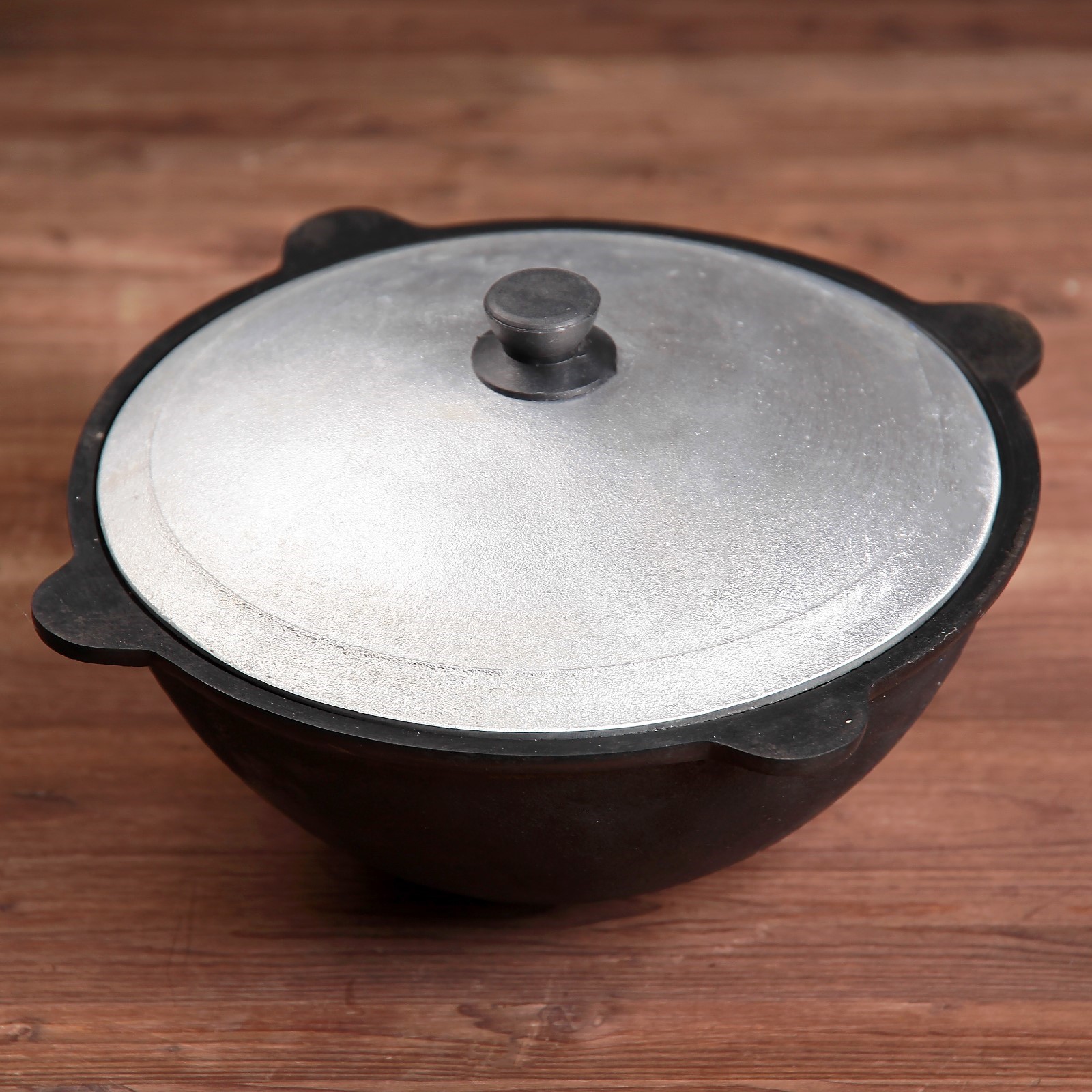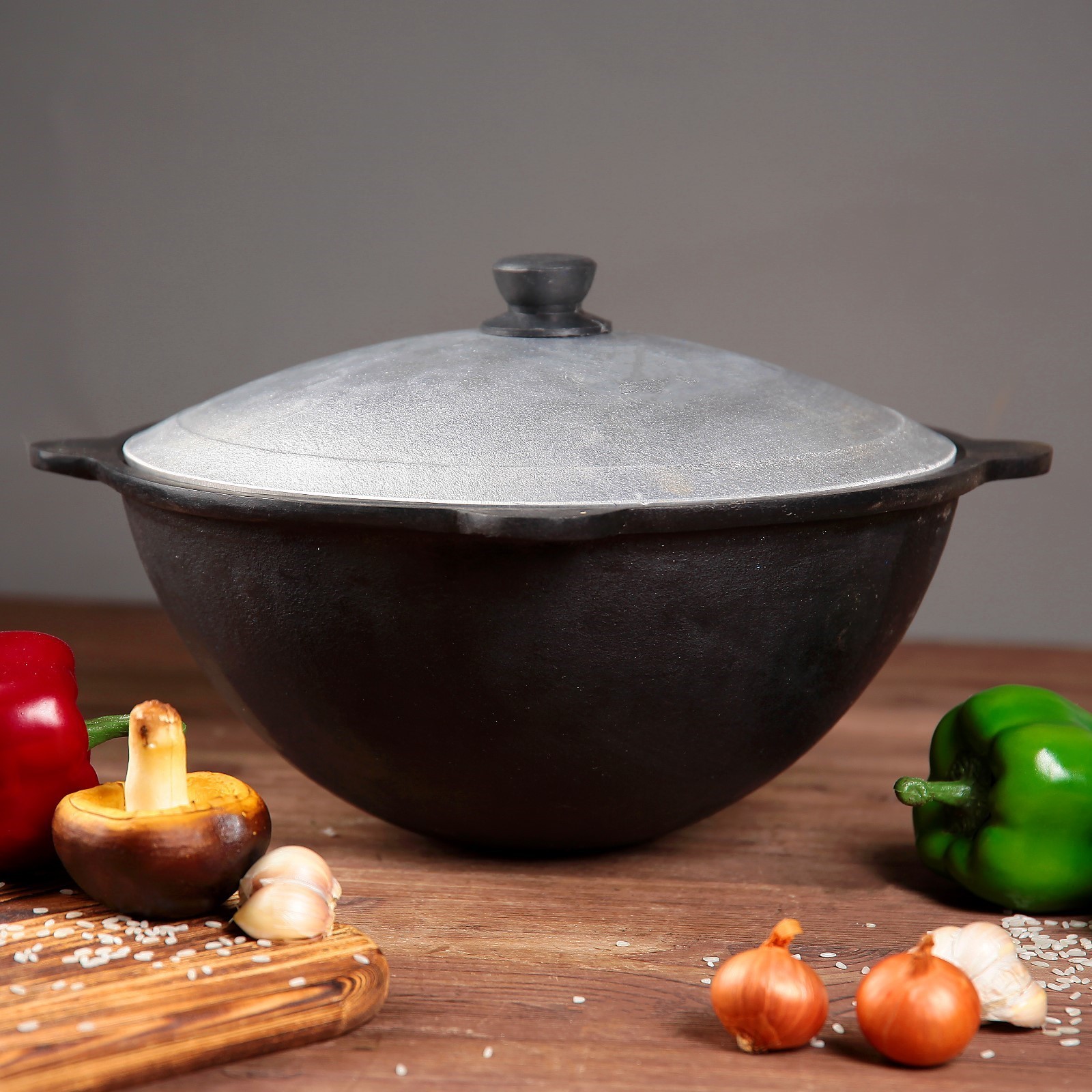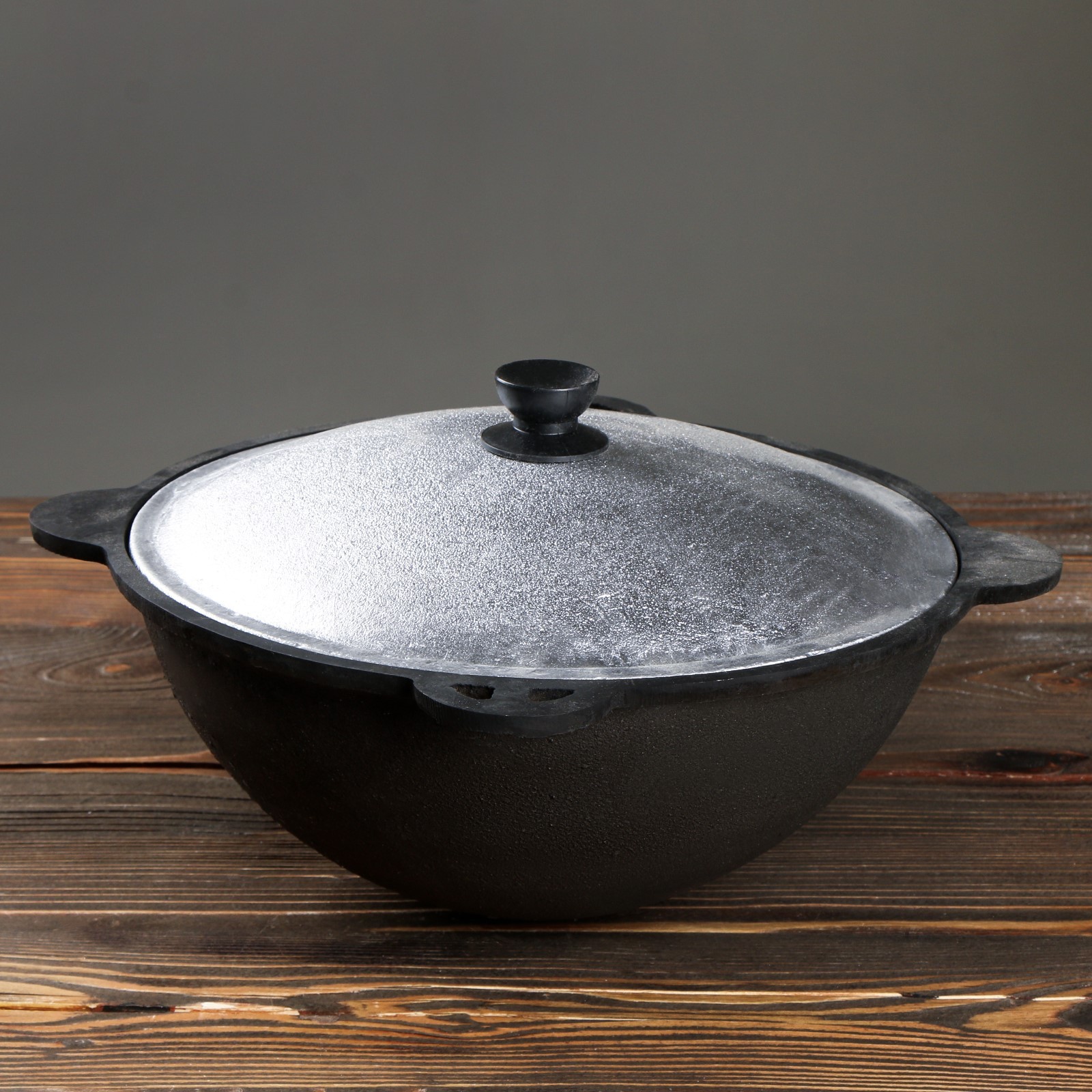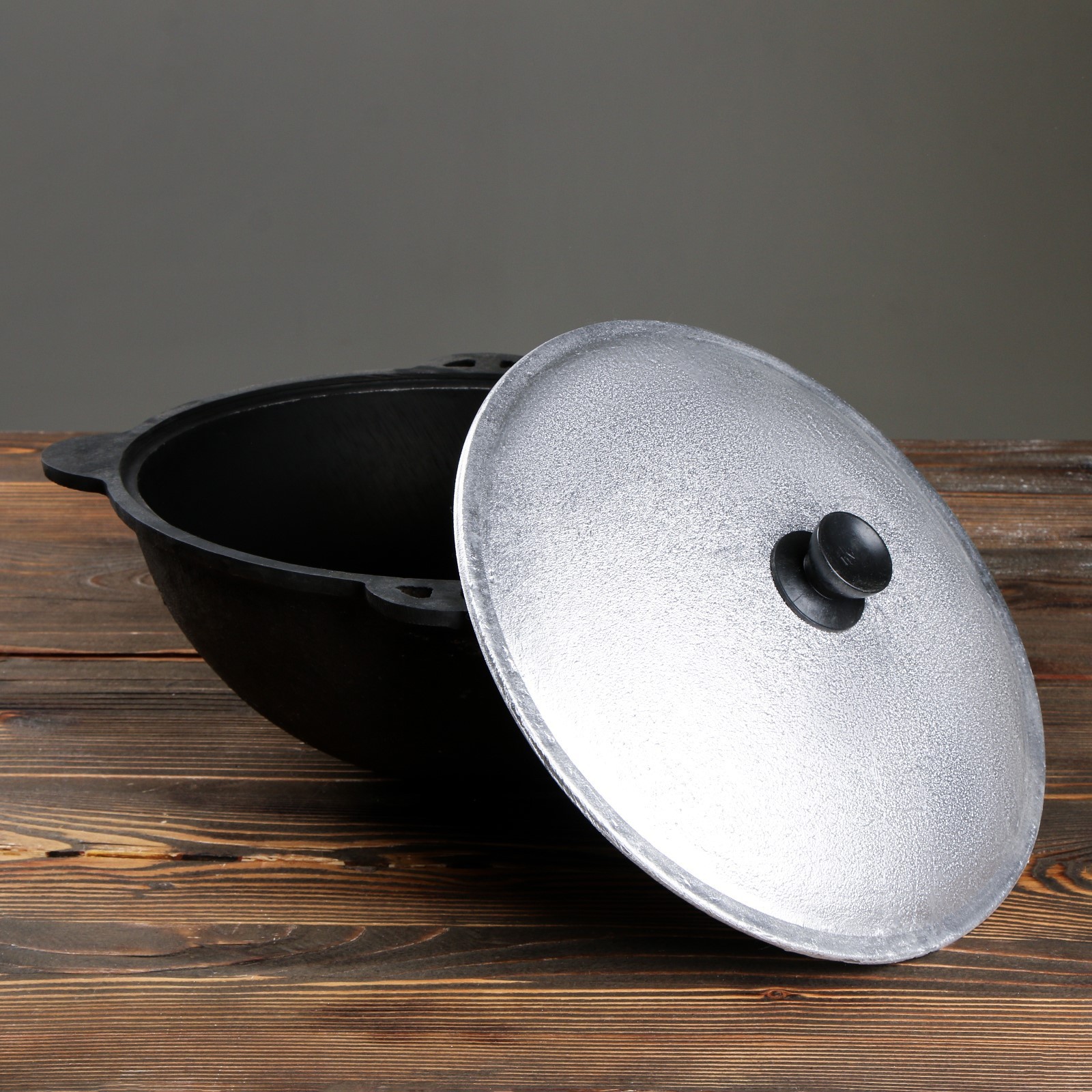 Казан чугунный, 6 л, круглое дно, алюминиевая крышка