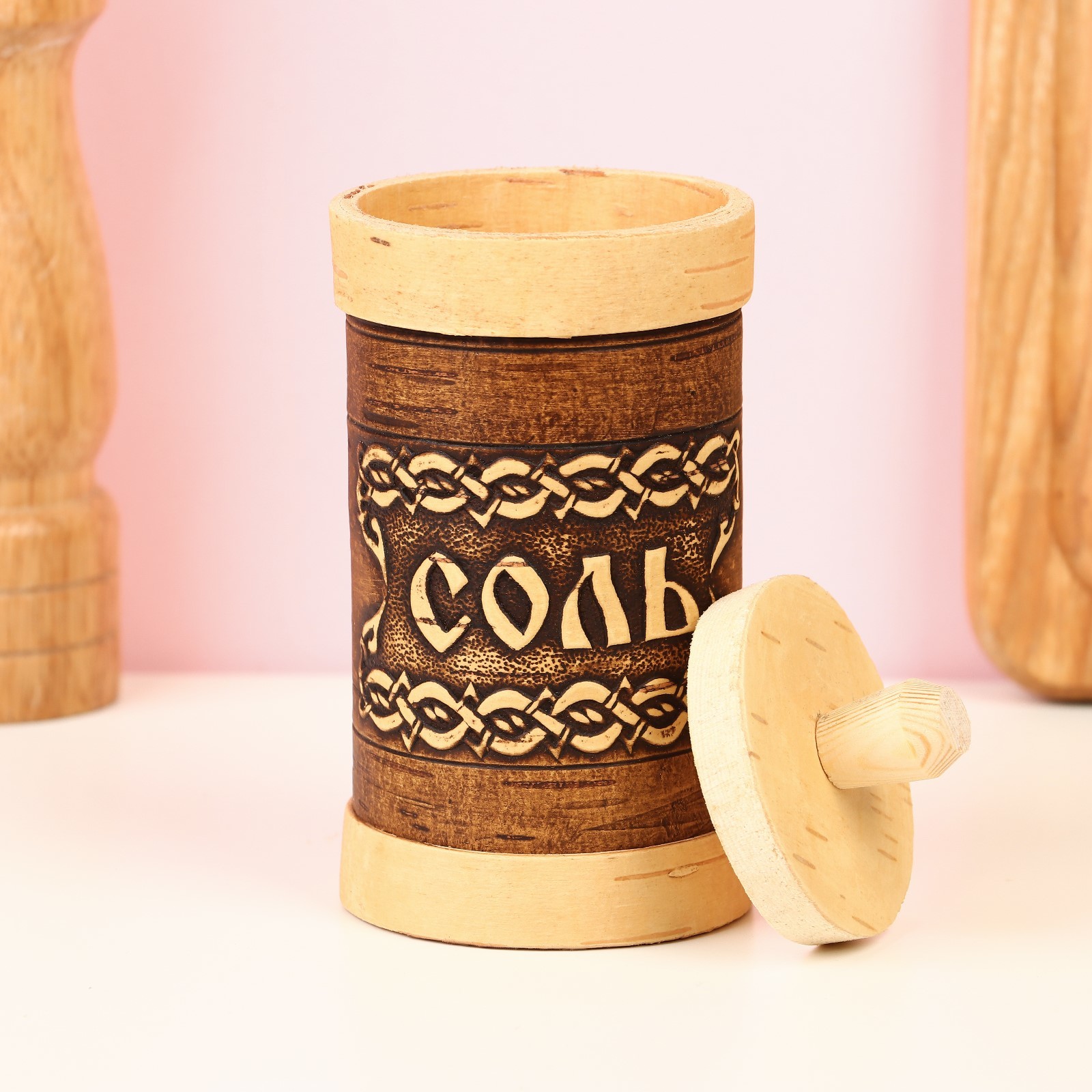 Туес для специй «соль», высокий, 6х6х12 см, береста