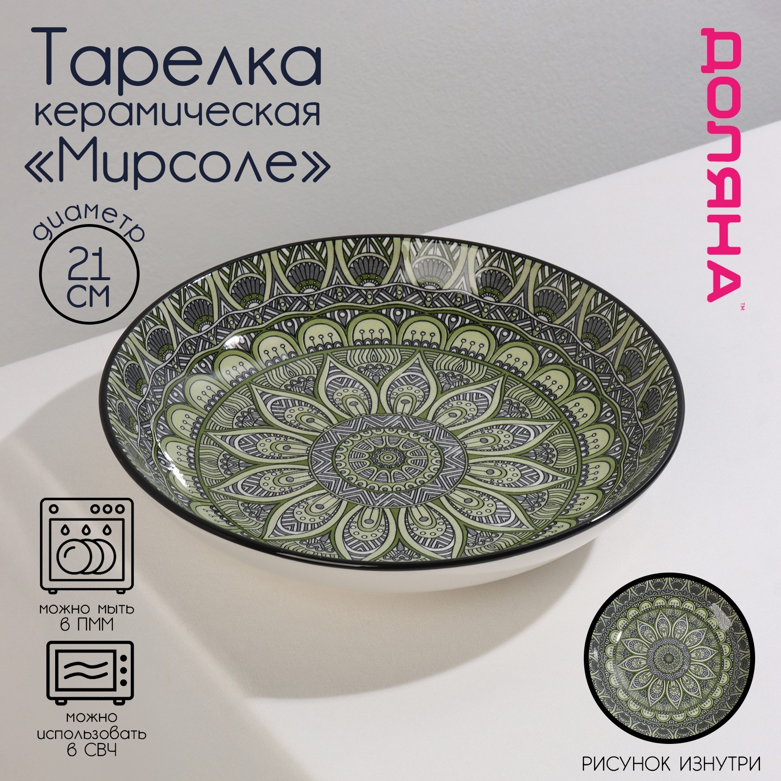 Тарелка керамическая глубокая доляна «мирсоле», D=21 см, цвет зелёный