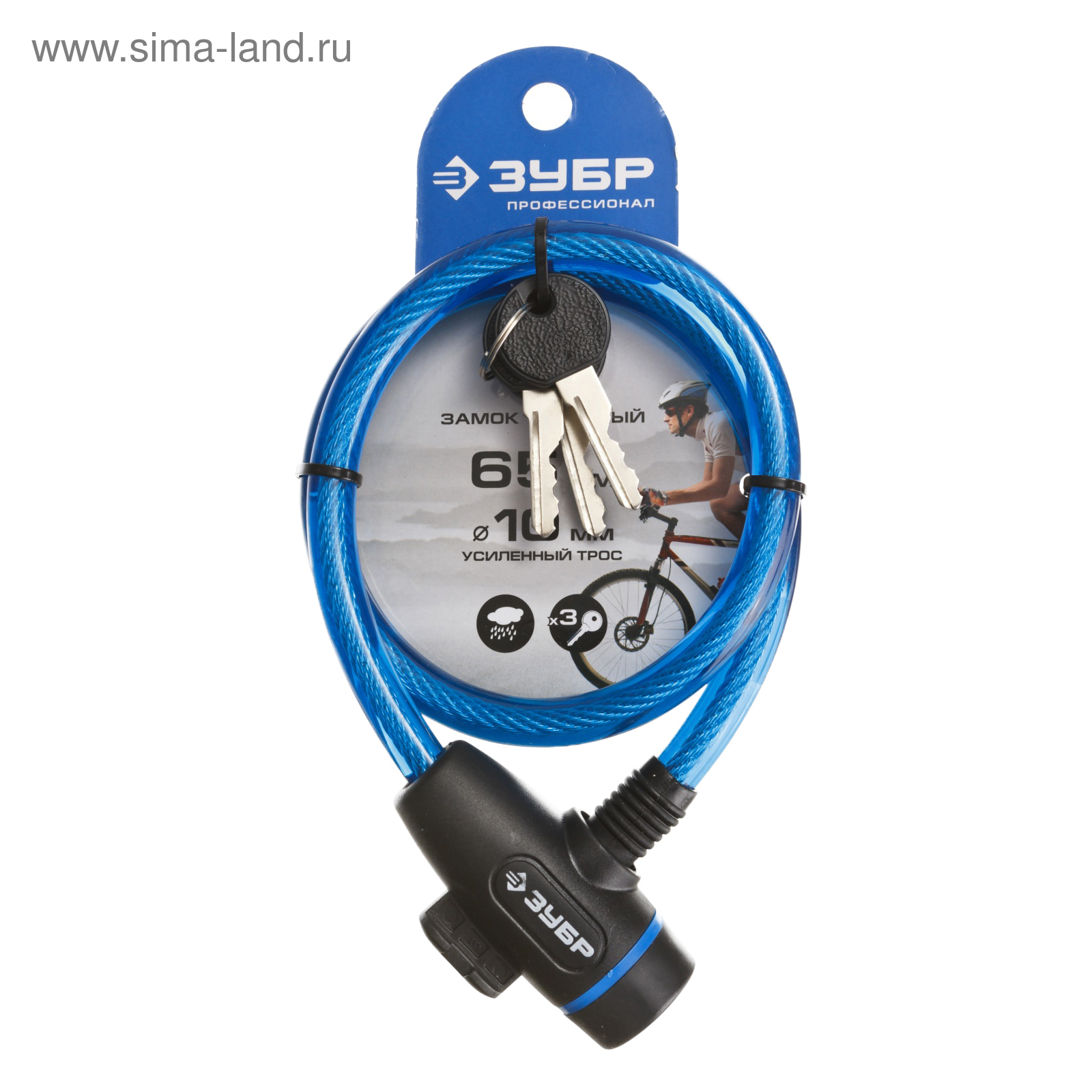 Замок тросовый "зубр" профессионал, 10х650 мм, 3 ключа