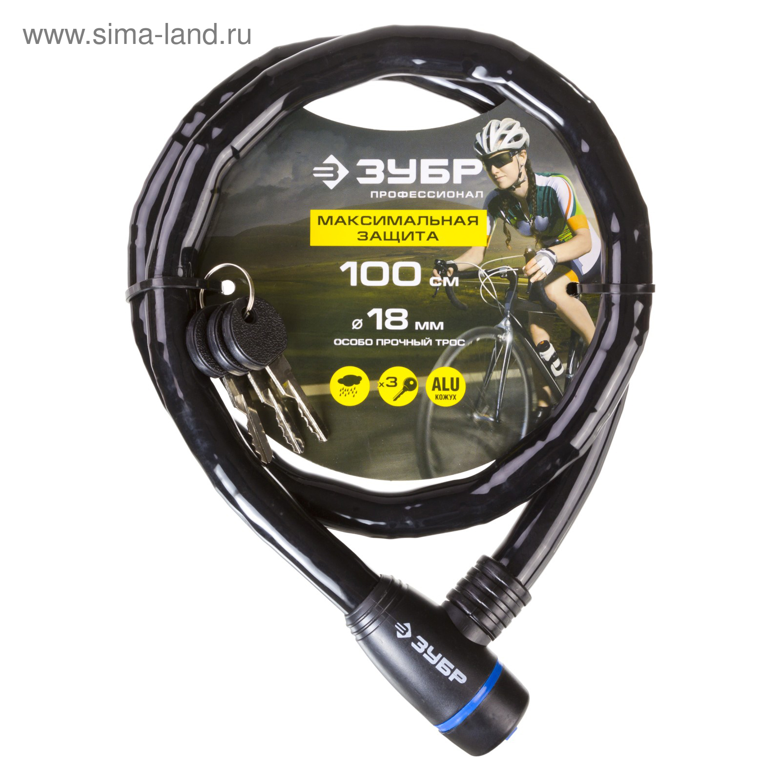 Замок тросовый "зубр" профессионал, 18х1000 мм, усиленный, 3 ключа