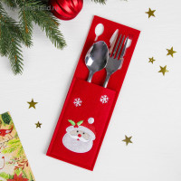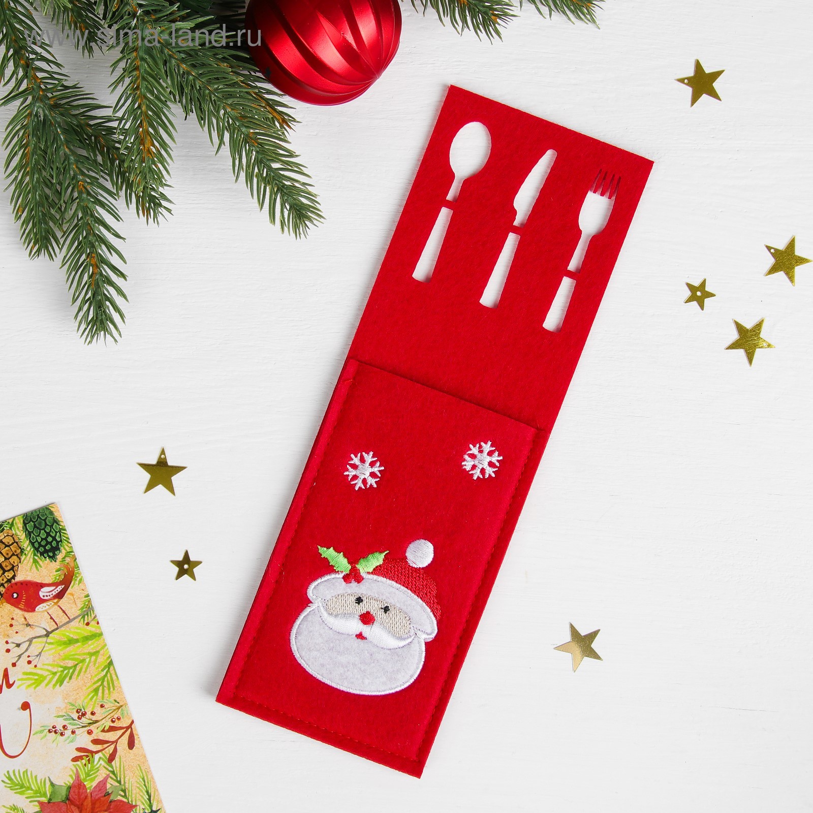 Конверт для столовых приборов «дед мороз».   Сервировка — очень важный этап создания праздничной атмосферы в доме, будь это день рождения, Новый год или же вечеринка друзей.  Украсить стол вам поможет конверт для приборов. С его помощью вы расставите яркие акценты.  Конверт сделан из фетра и имеет праздничный дизайн.  Цвет: Красный Форма: Прямоугольная Ткань: Фетр : 195 Размер, см: 25 х 8 Количество персон: 1 Материал: Текстиль Состав ткани: Полиэстер Состав ткани: Акрил Назначение: Для столовых приборов Форма: Прямоугольник  развернуть описание ▼