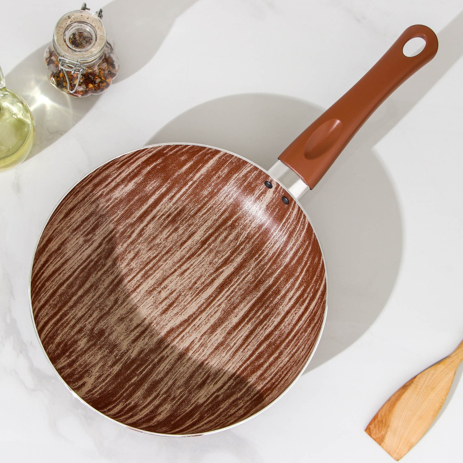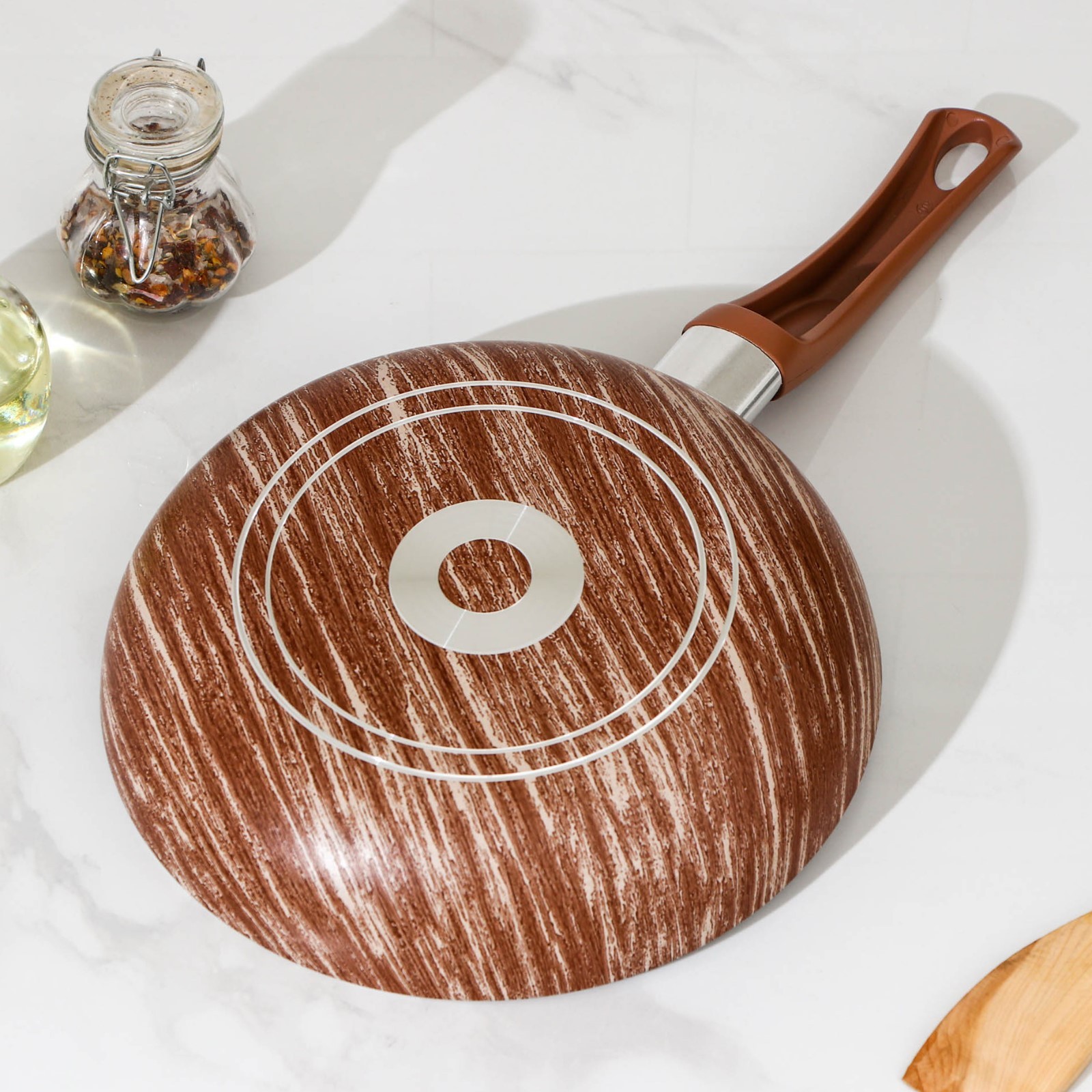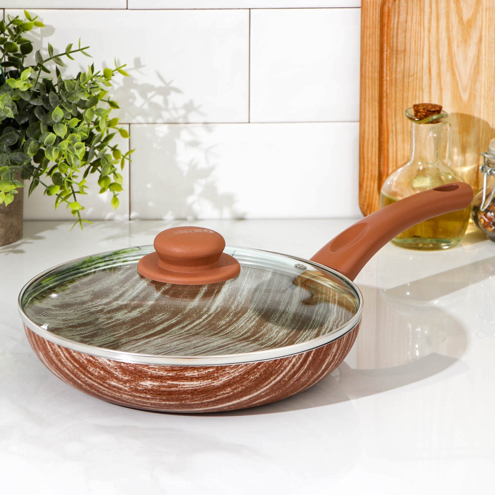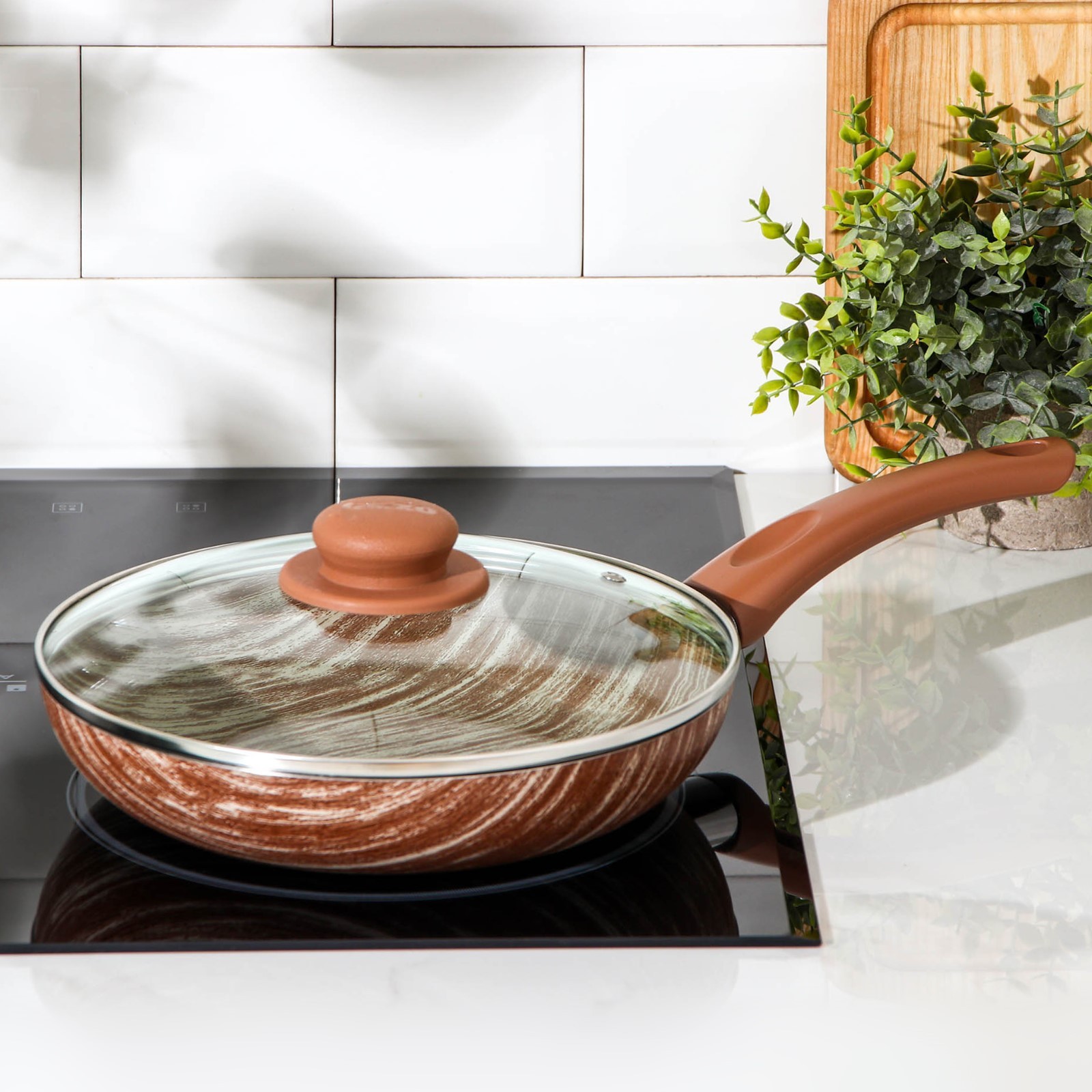 Сковорода глубокая Kantry, D=24 см, стеклянная крышка, пластиковая ручка, антипригарное покрытие, цвет коричневый