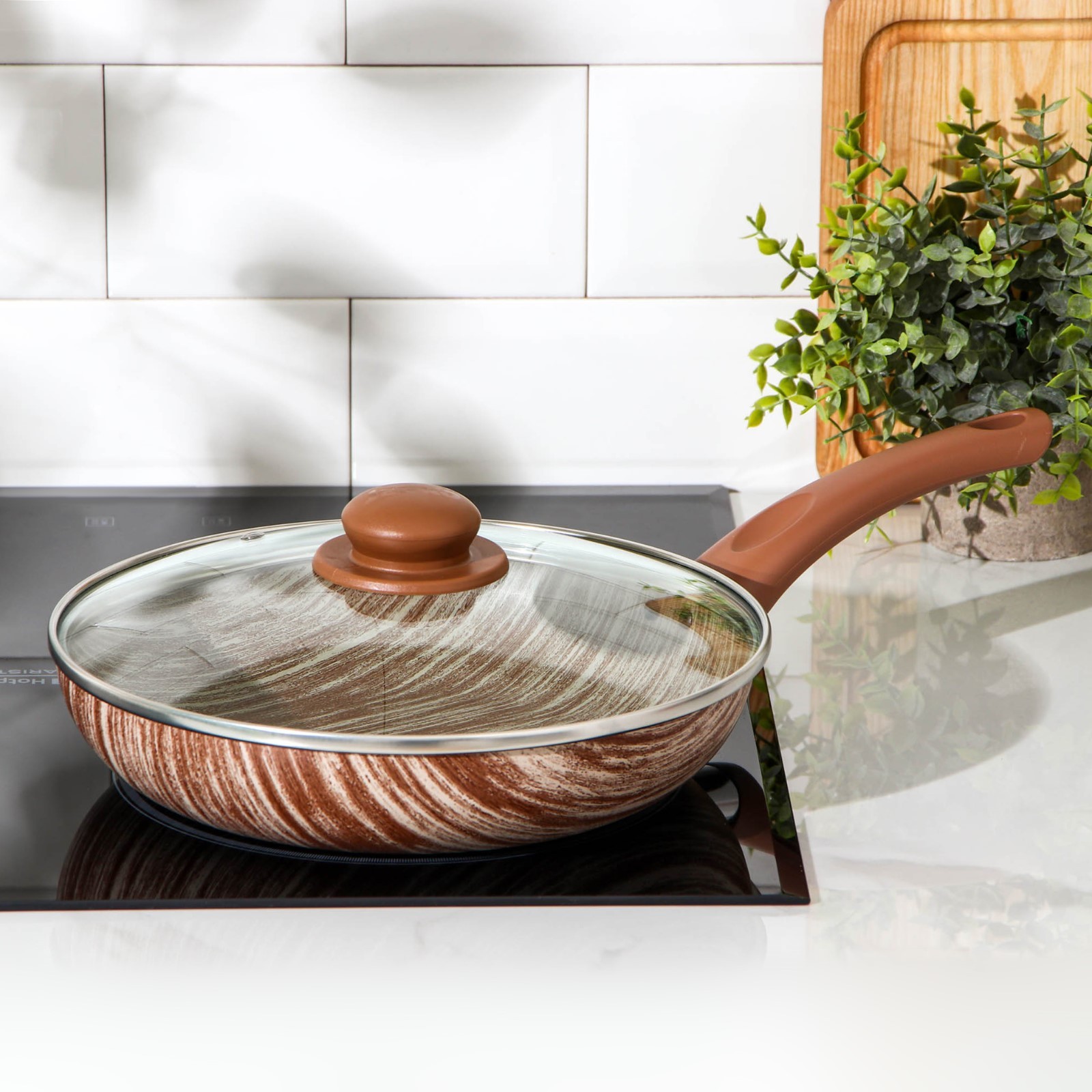Сковорода глубокая Kantry, D=26 см, пластиковая ручка, стеклянная крышка, антипригарное покрытие, цвет бордовый