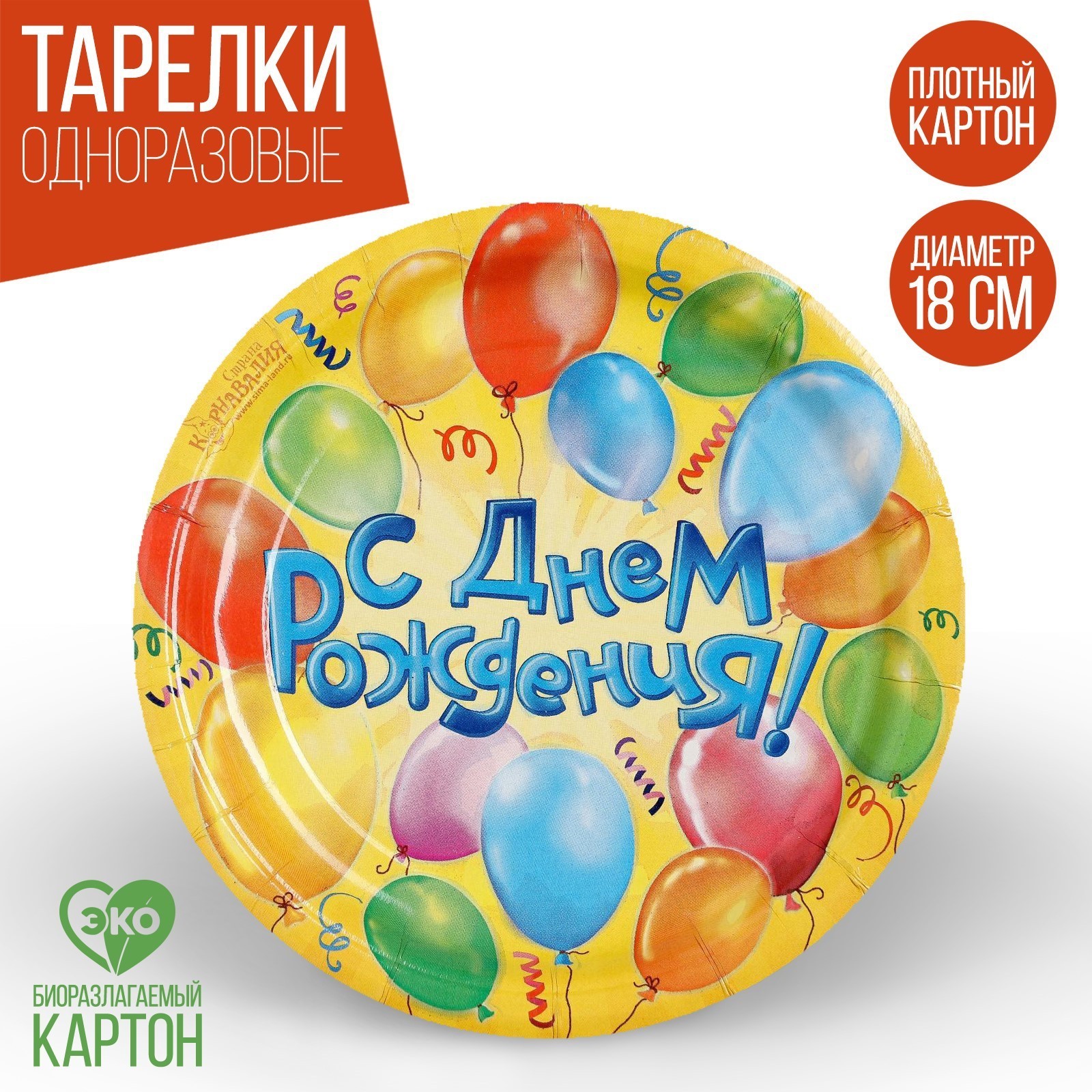 Тарелка одноразовая бумажная "с днем рождения" воздушные шары (набор 6 шт). Любой праздник, а особенно День рождения – это долгожданное событие для каждого из нас. Это веселье, танцы, задорный смех, подарки и много-много счастья, а также повод встретиться с самыми близкими. Для украшения праздничного стола зачастую уходит очень много времени. Не омрачить праздник, а только прибавить хорошего настроения поможет красочная бумажная посуда с оригинальным дизайном, созданная специально для Вас. Одноразовые тарелки прочно вошли в современную жизнь, и теперь многие люди просто не представляют праздник или пикник на природе без них. Тарелки сделаны из бумаги, поэтому почти невесомы, останутся целыми при падении, по окончании мероприятия их можно просто выкинуть. Благодаря глянцевому ламинированию они абсолютно безопасны, отлично удерживают еду, не промокают и не протекают. Поэтому набор бумажных тарелок – это настоящая находка для вас! В набор входит 6 тарелок диметром 18 см, упакованных в пакет с фирменным клапаном. Цвет: Разноцветный Диаметр, см: 18 В наборе, шт.: 6 Материал: Бумага  развернуть описание ▼