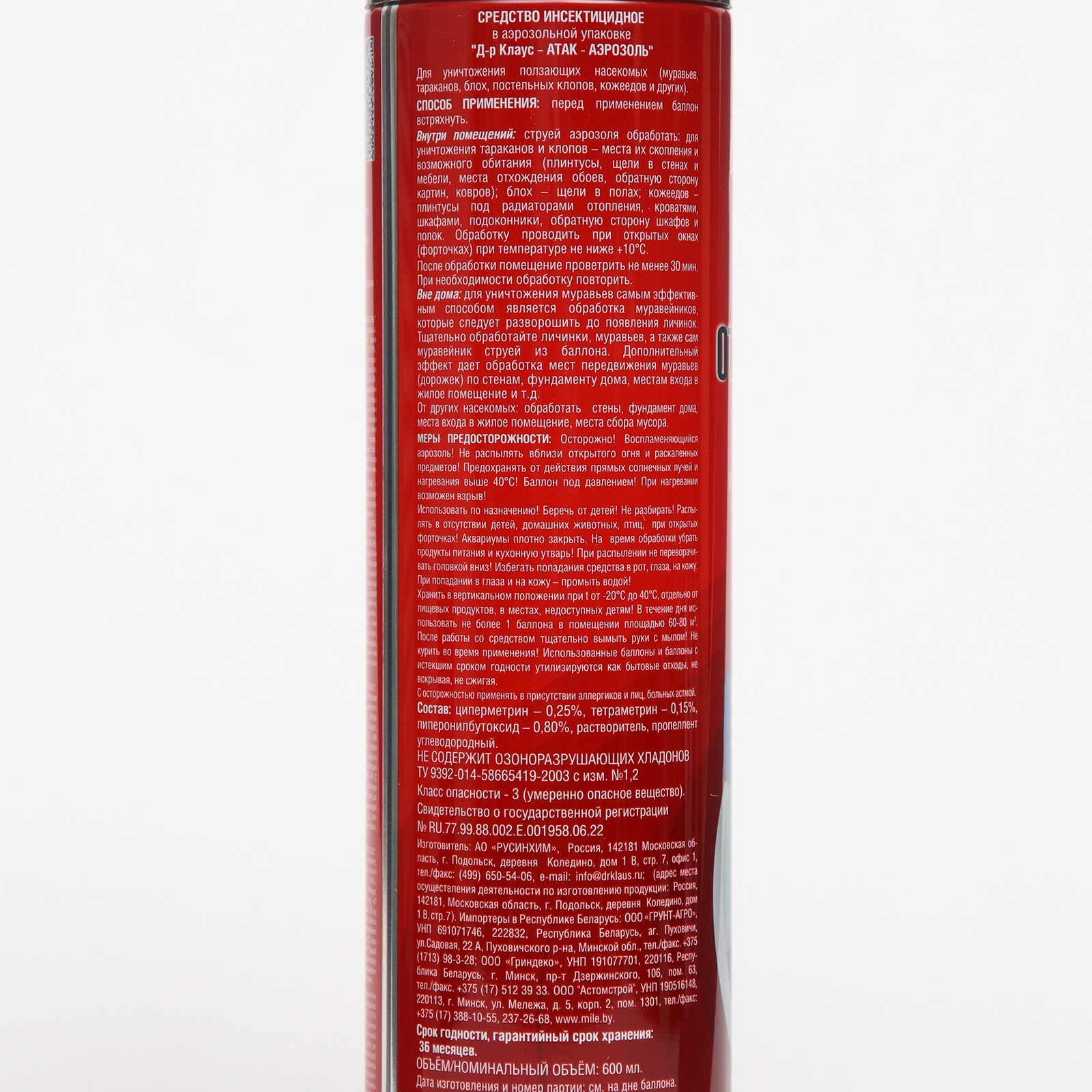 Аэрозоль доктор клаус от муравьев, тараканов и других ползучих насекомых, 600 мл