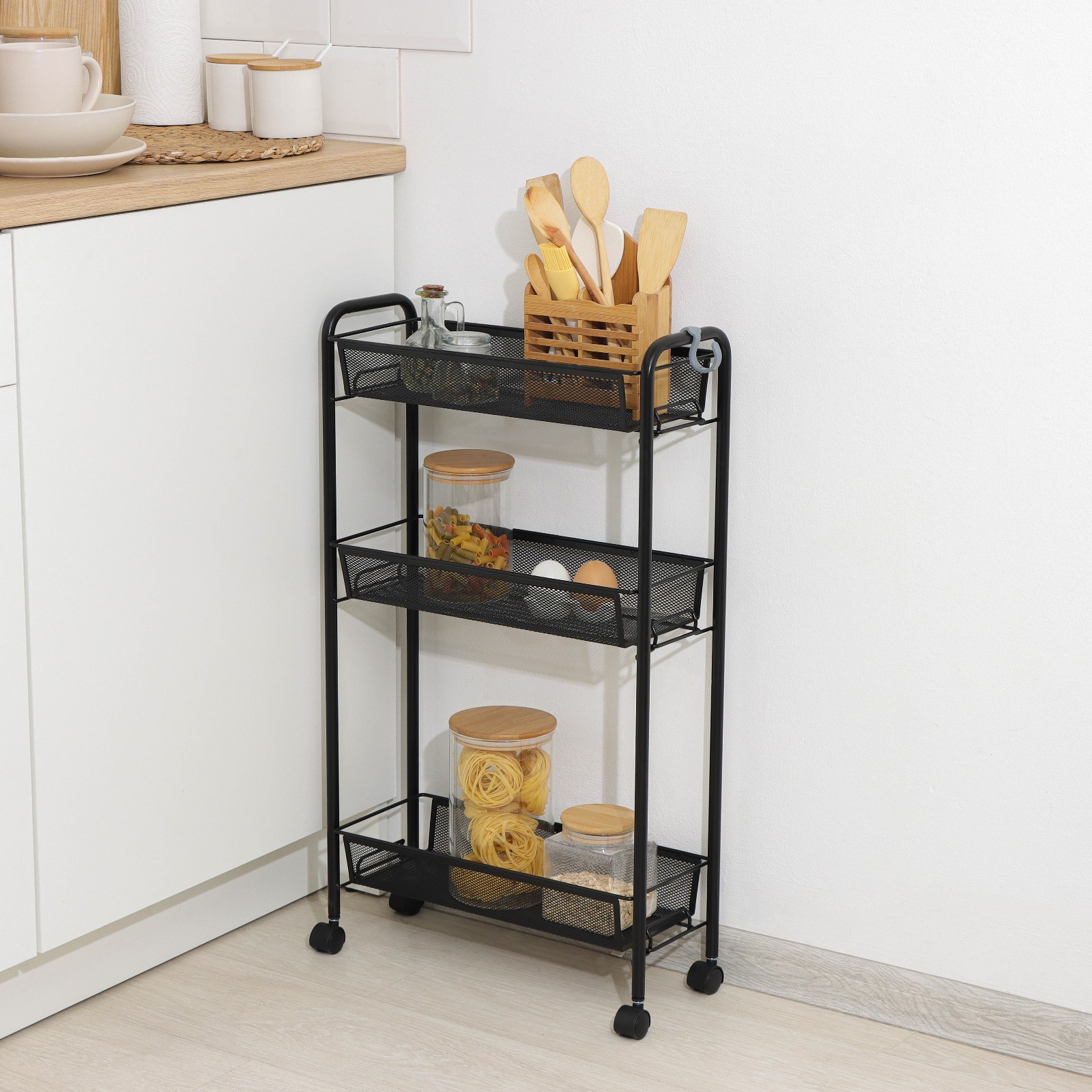 Этажерка на колёсиках «ладья 1к», 3 яруса, 44x17x75,5 см, цвет чёрный.