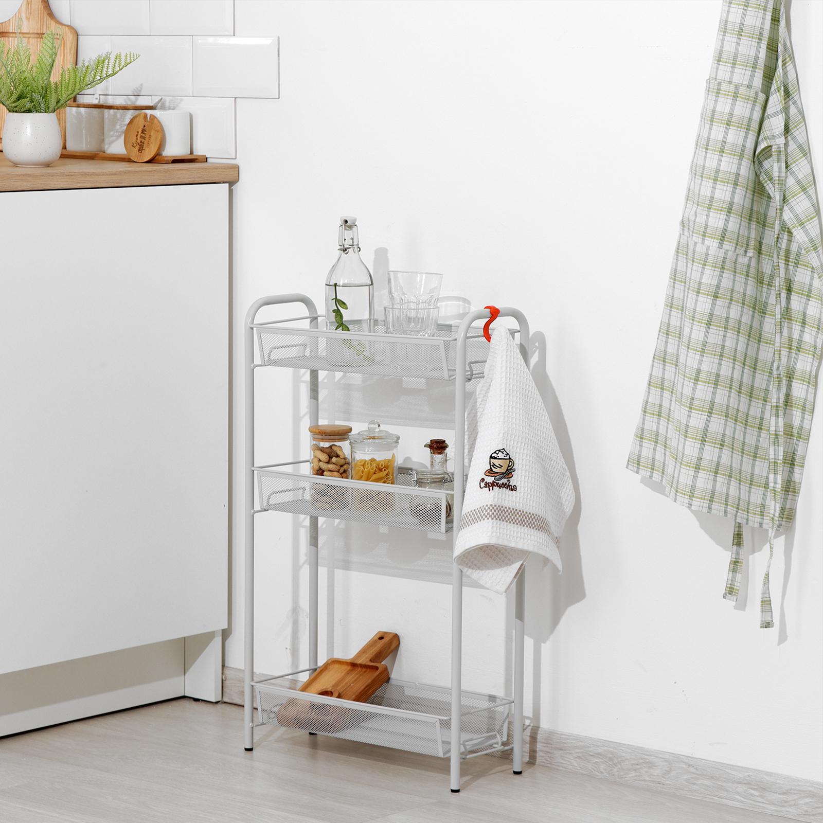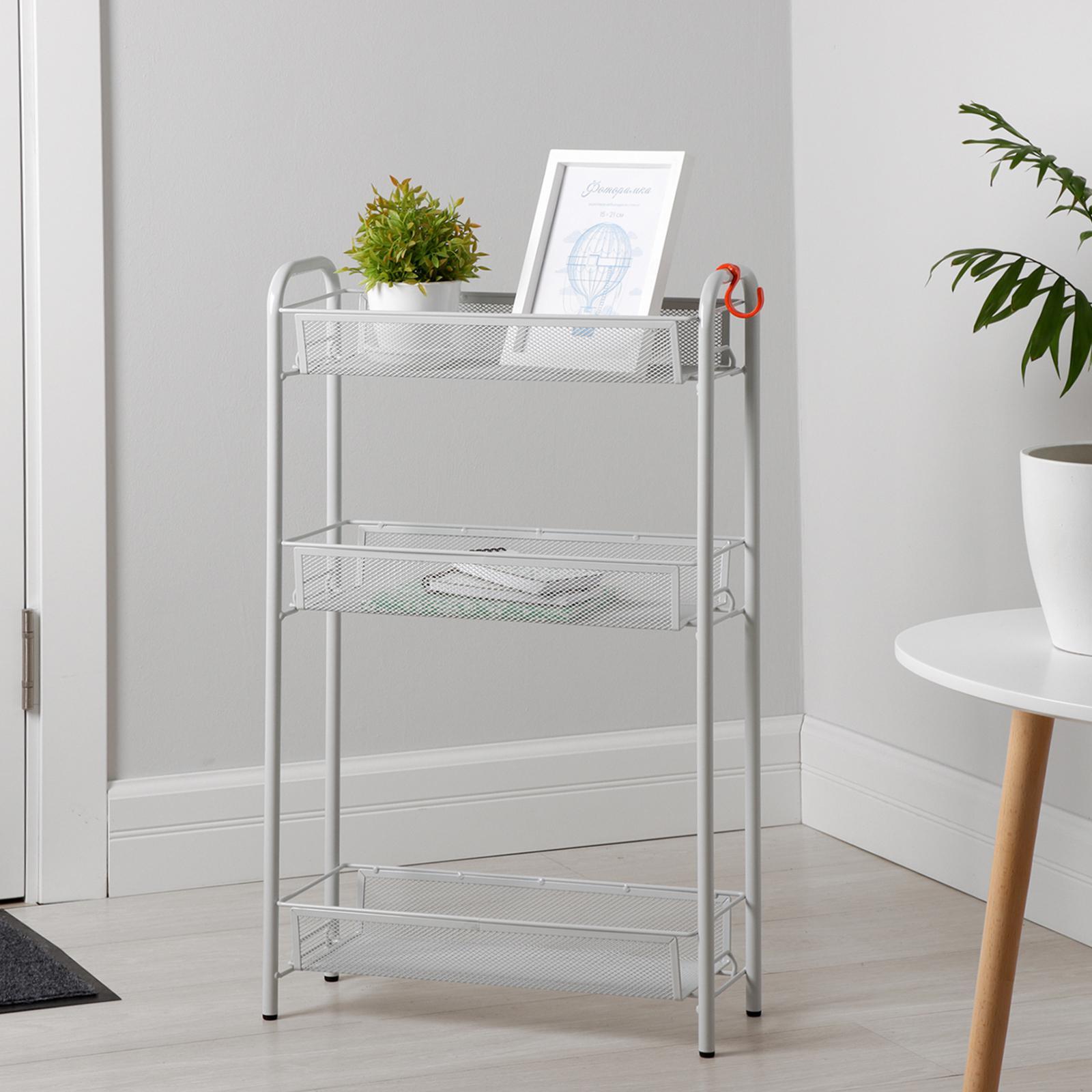 Этажерка зми «ладья 1», 3 яруса, 44x17x69,5 см, цвет серый. Этажерка с 3-мя корзинами предназначена для хранения вещей в любом помещении дома или офиса. Преимущества:Материал не боится воды, влаги, ультрафиолета (такая полка – идеальное решение для хранения на балконе или возле окна );Можно использовать как косметологическую тележку для мастера маникюра, косметолога;Выдерживает высокую нагрузку, полки можно использовать для рассады, книг, овощей, документов, игрушек, посуды, любых других вещей. Цвет: Серый Ширина, мм: 440 Высота, см: 71.5 Глубина, мм: 170 Высота, мм: 695 parts count: 0 Количество секций: 3 На колёсиках: Нет Материал: Сталь Вид установки: Напольный Температурное ограничение: Нет Поставляется в разобранном виде: Да  развернуть описание ▼