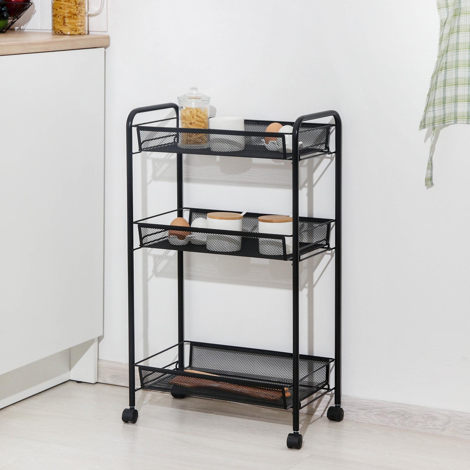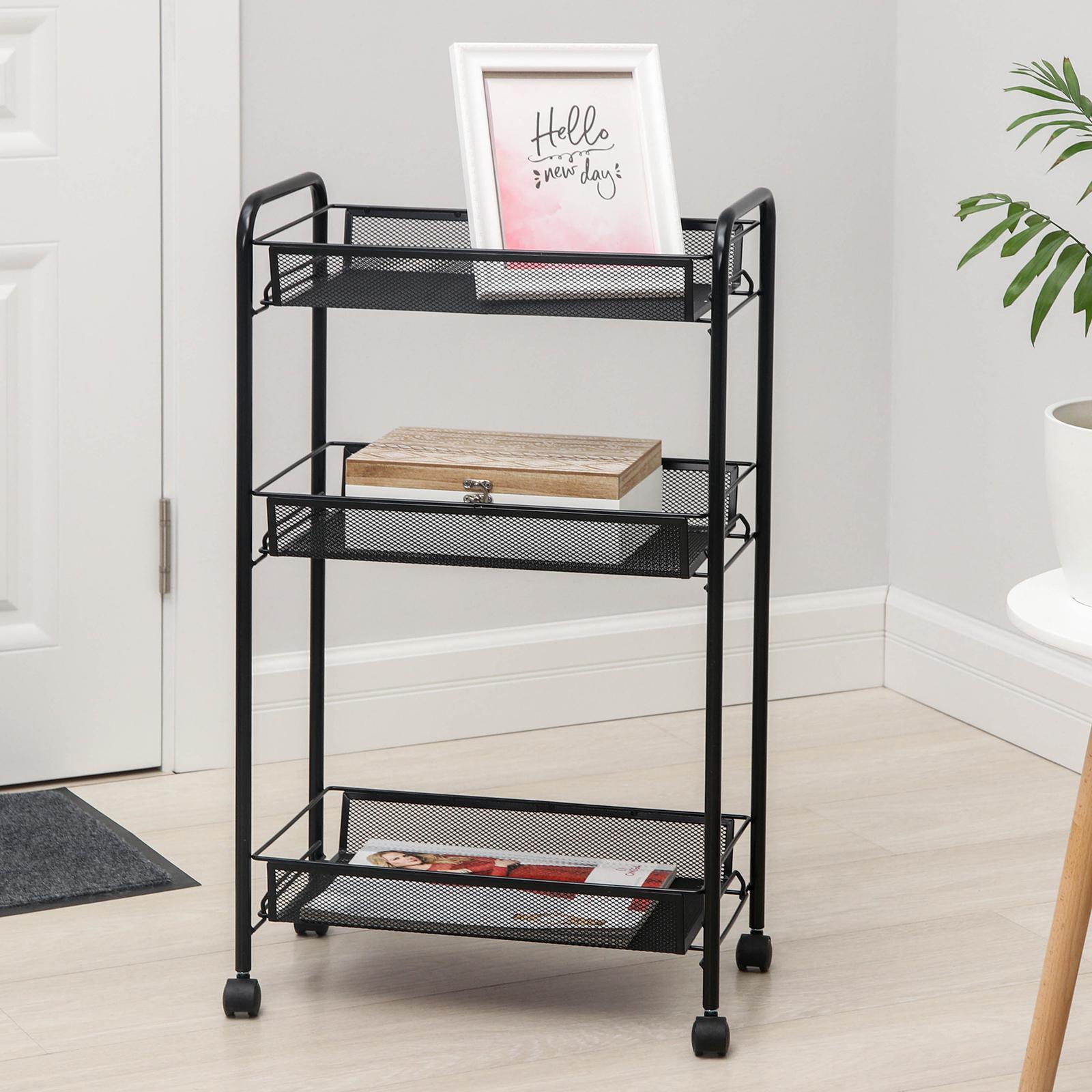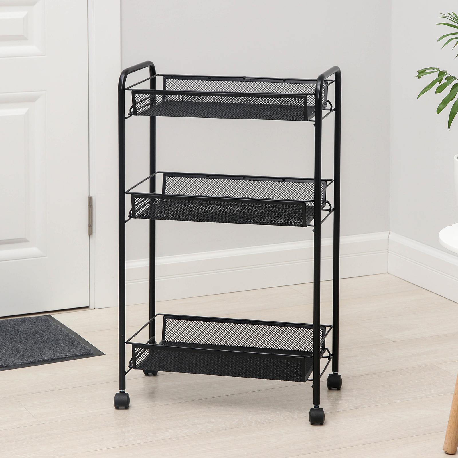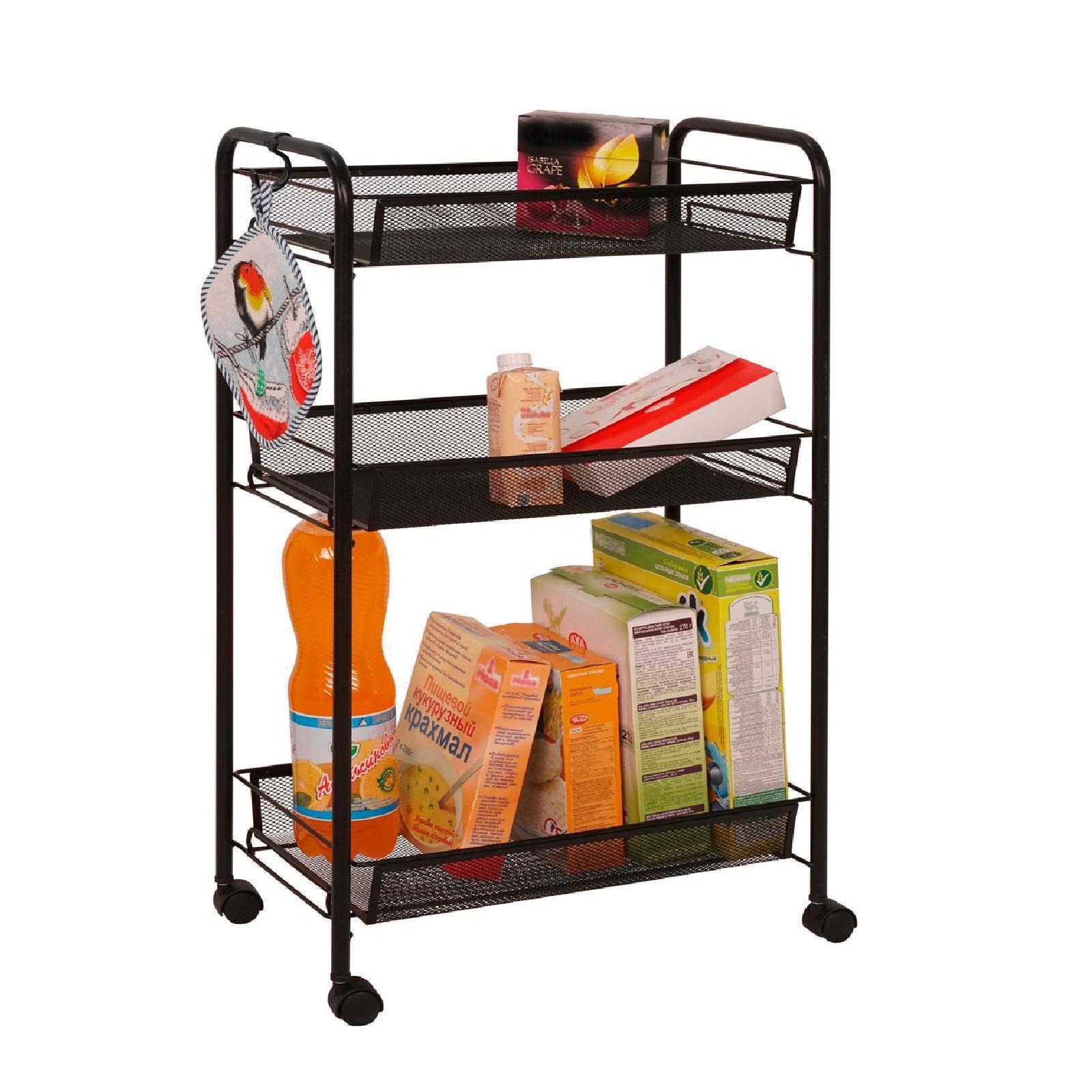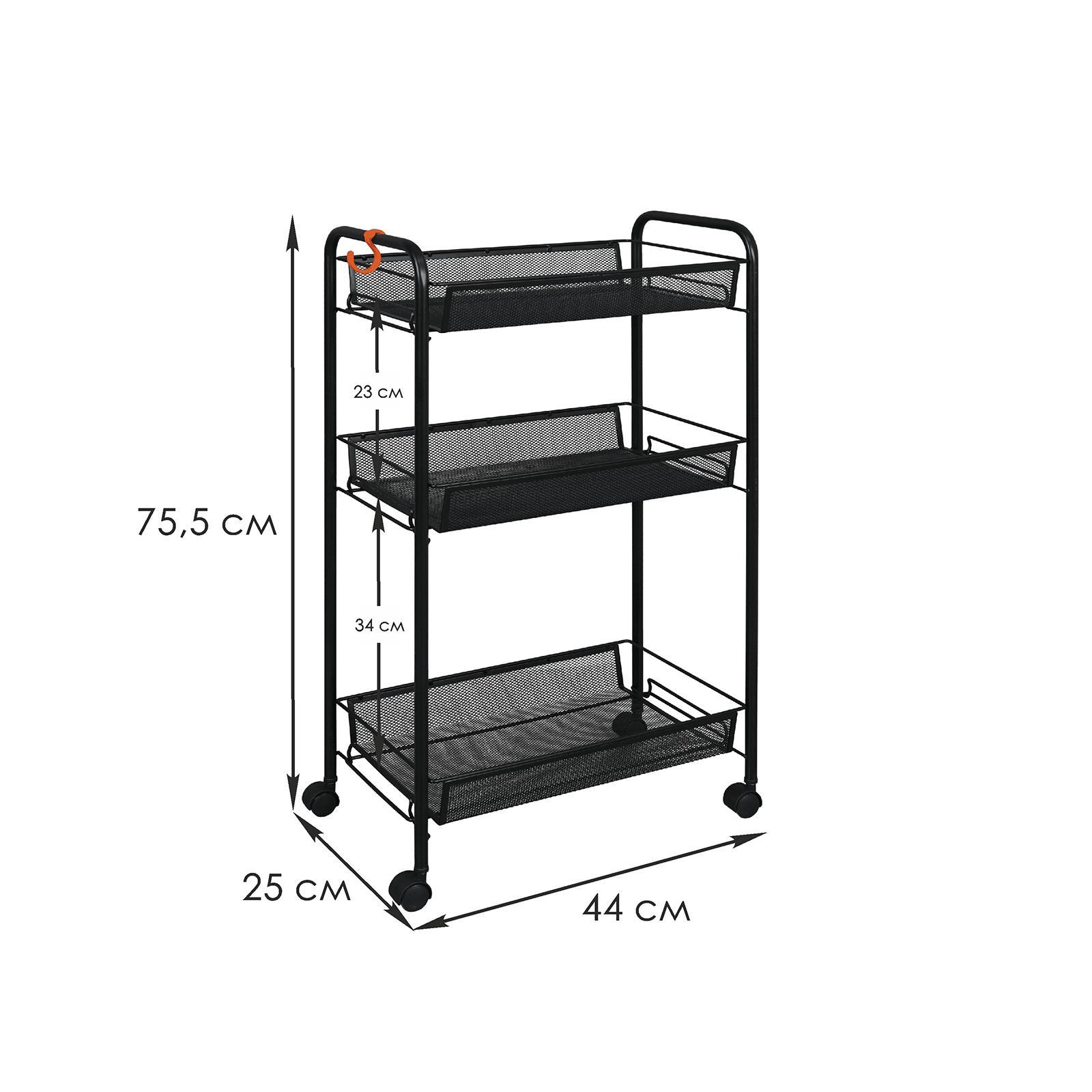 Этажерка «ладья 2к», 3 яруса, 44x25x75,5 см, на колёсиках, цвет чёрный