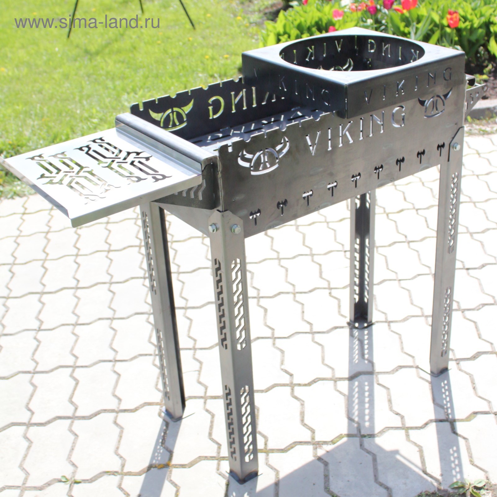 Мангал viking, с подвесной полкой, кронштейном для кочерги и крышкой, 74 х 34 х 21 см. К данной модели подойдут: Очиститель для шампуров, решеток, стекол каминов, 0, 25 л. ;Очиститель для шампуров, решеток, стекол каминов, 0, 5 л. ;Щетка для чистки гриля со скребком;Щетка для чистки гриля;Щетка для чистки гриля универсальная. Чистящий спрей Cif для дачи, мангала и гриля, 500 мл. . Толщина металла, мм: 3 Высота жаровни, см: 18.5 Ширина жаровни, см: 34 Высота от пола до дна жаровни, см: 58.4 Длина жаровни, см: 74 Материал: Сталь Вид: Мангал Особенности: С полкой/столиком  развернуть описание ▼
