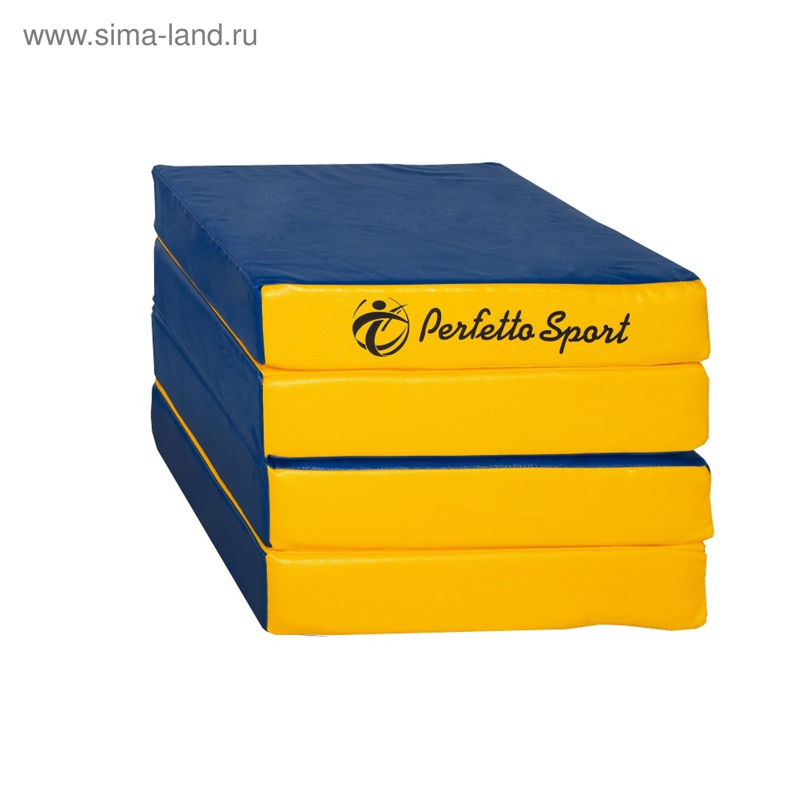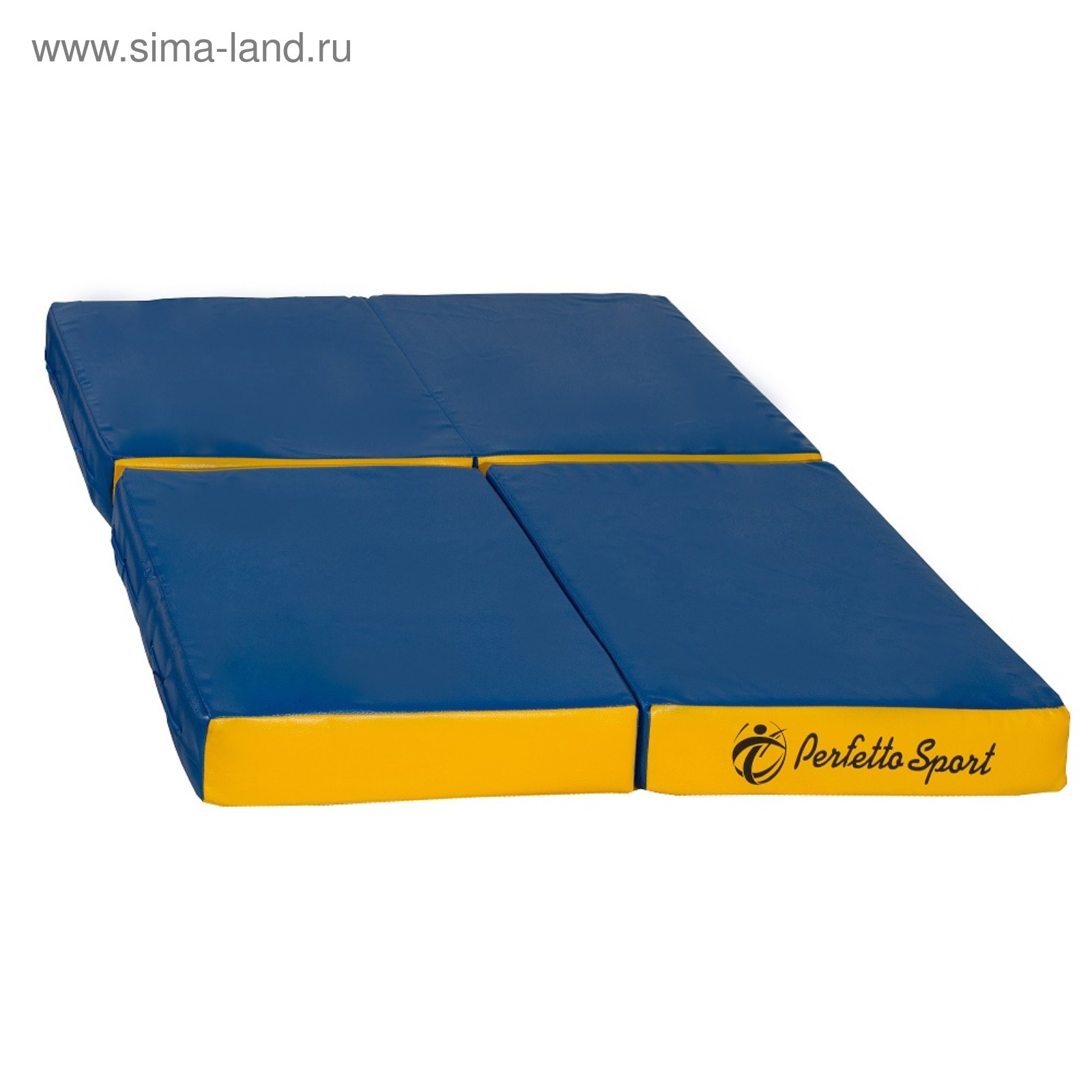 Мат perfetto sport, 100 х 100 х 10 см, складной, 4 сложения, синий/жёлтый. Мат предназначен для предохранения от травм и ушибов во время выполнения упражнений. Изделие идеально подойдёт для использования дома, в детской игровой комнате и спортзале. Мягкий поролоновый наполнитель защитит вас от травм и ушибов при падении. Прочный износостойкий материал внешнего слоя не рвётся от нагрузок и прослужит вам долгое время. Длина, см: 100 Ширина, см: 100 Высота, см: 10 Количество элементов: 4 : 22 Материал: Экокожа Наполнитель: Поролон Особенности: Съемный чехол Особенности: Складной  развернуть описание ▼