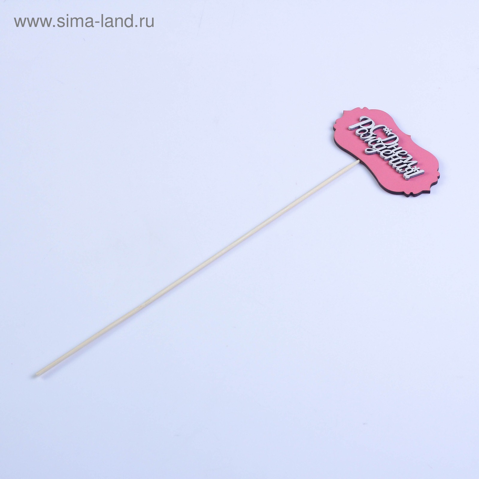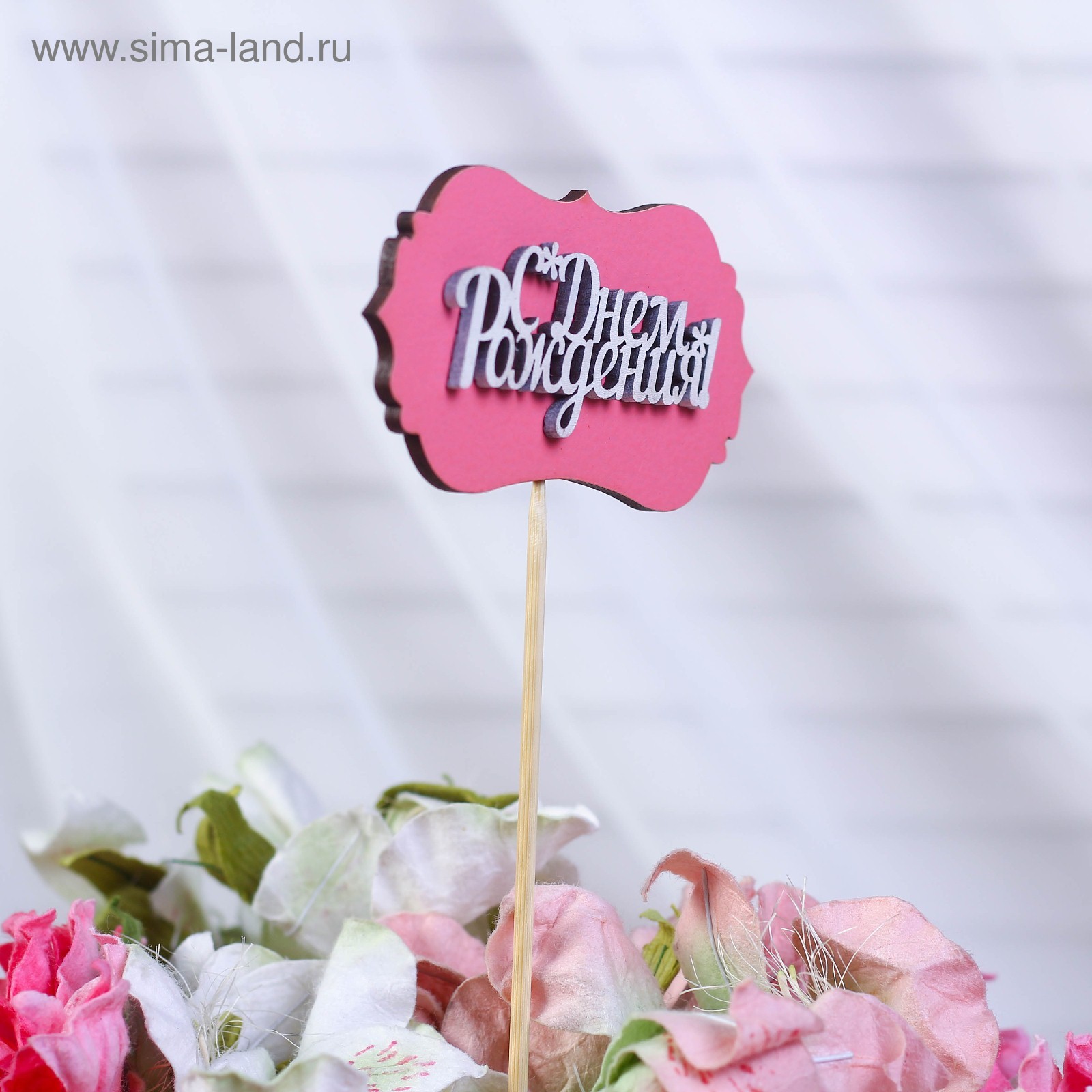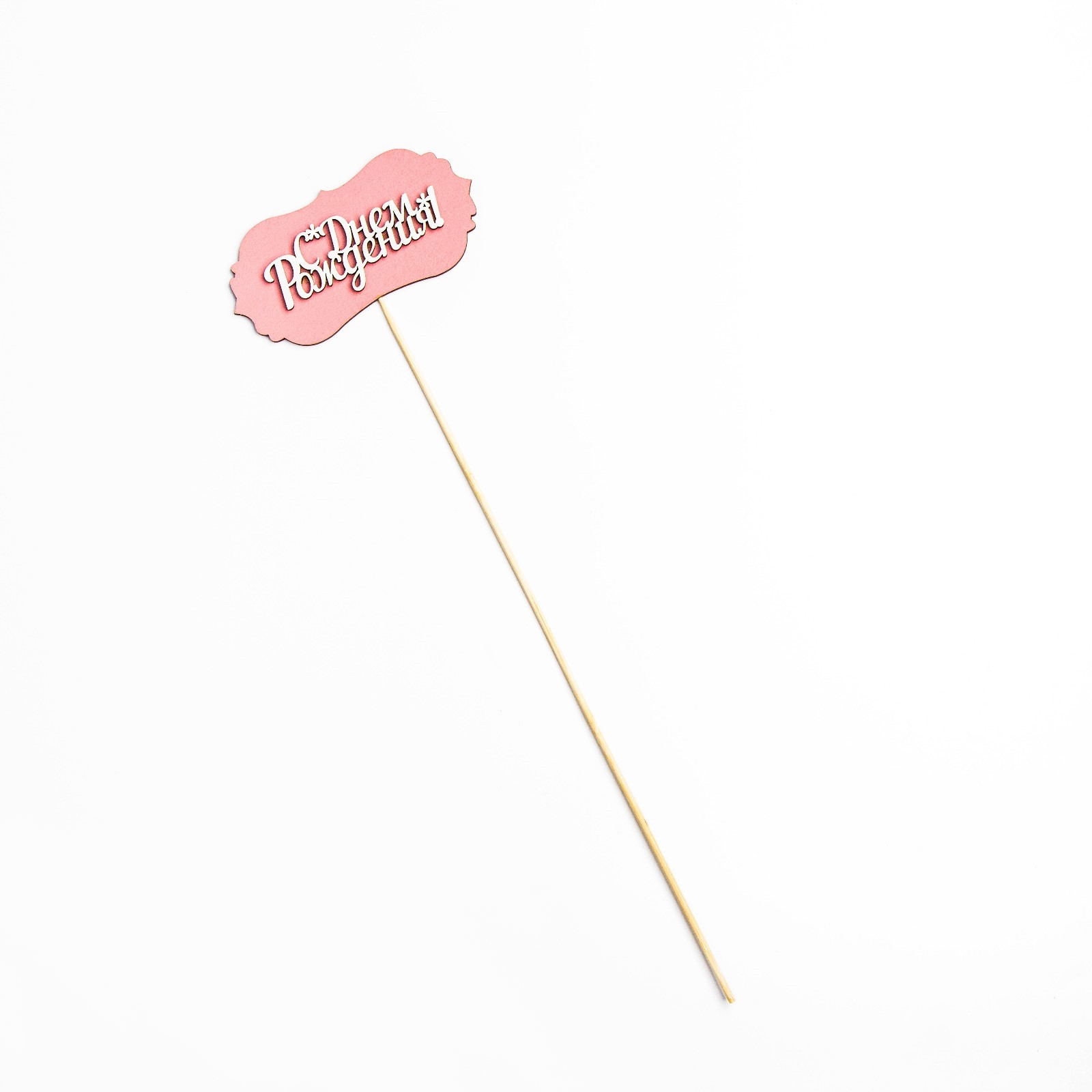 Топпер-шильд "с днем рождения", розовый 10х5 см