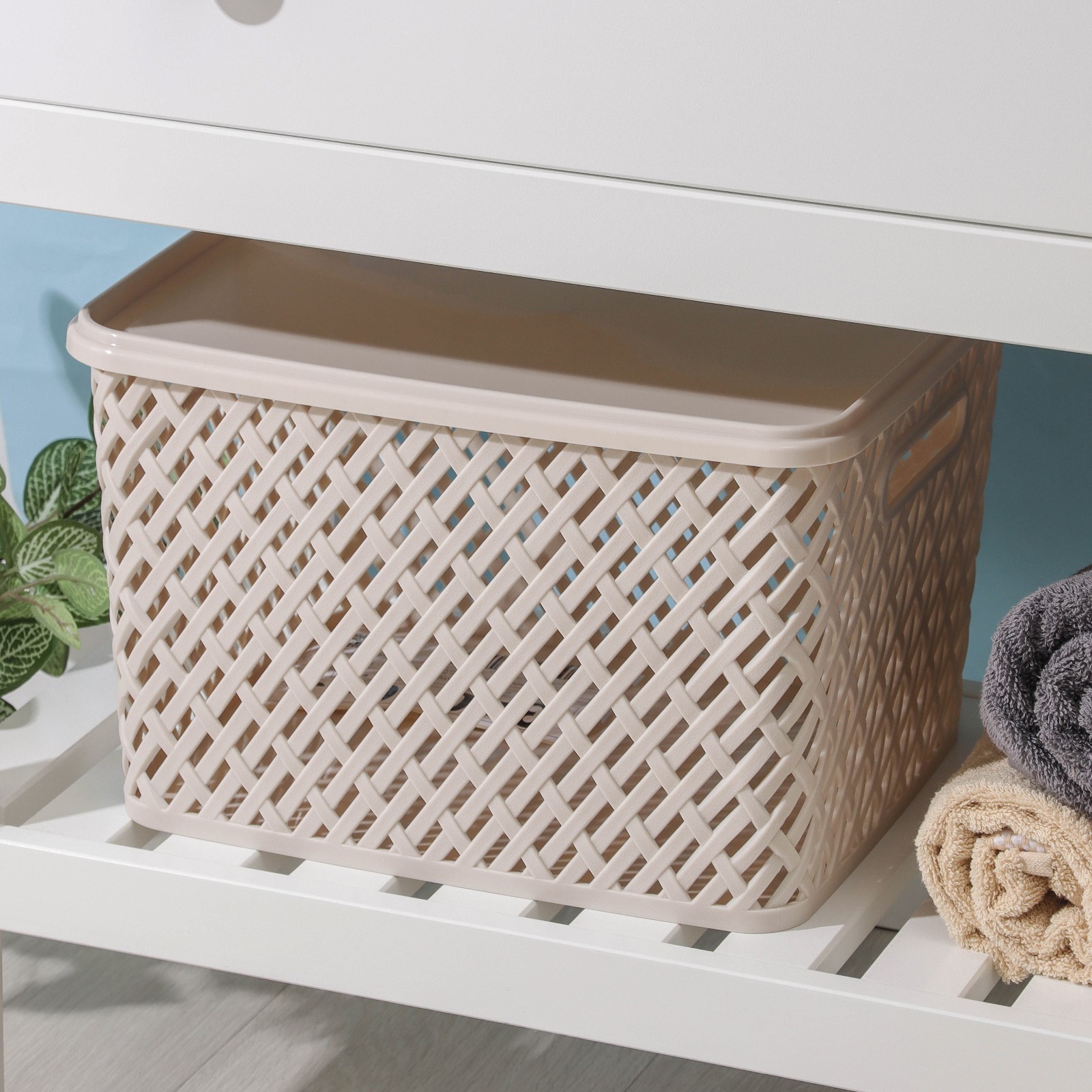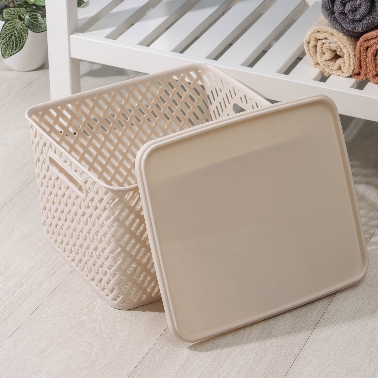 Корзина для хранения с крышкой «плетёнка», 35x29x22,5 см, цвет бежевый