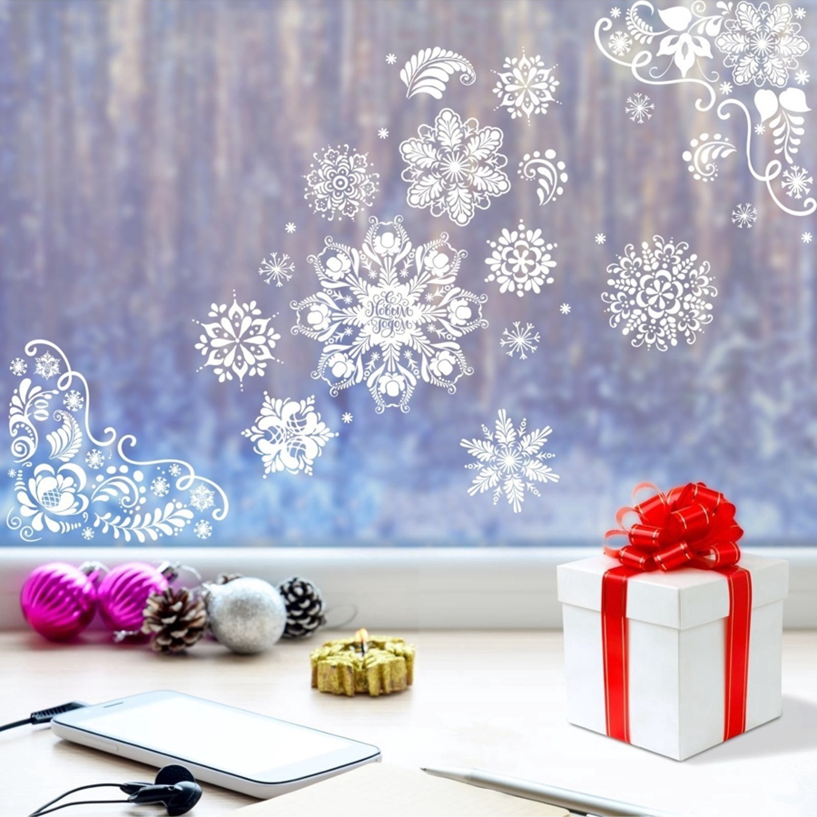 Наклейки на окна многоразовые «новогодние снежинки», 33 х 50 см